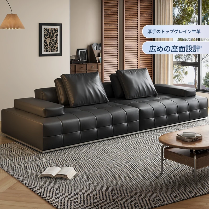 2024年モデル 本革製 モダンシンプル イタリアンミニマリスト ストレートソファ リビングルーム向け 小型住宅に最適 ヴィンテージ風 最高級牛革使用