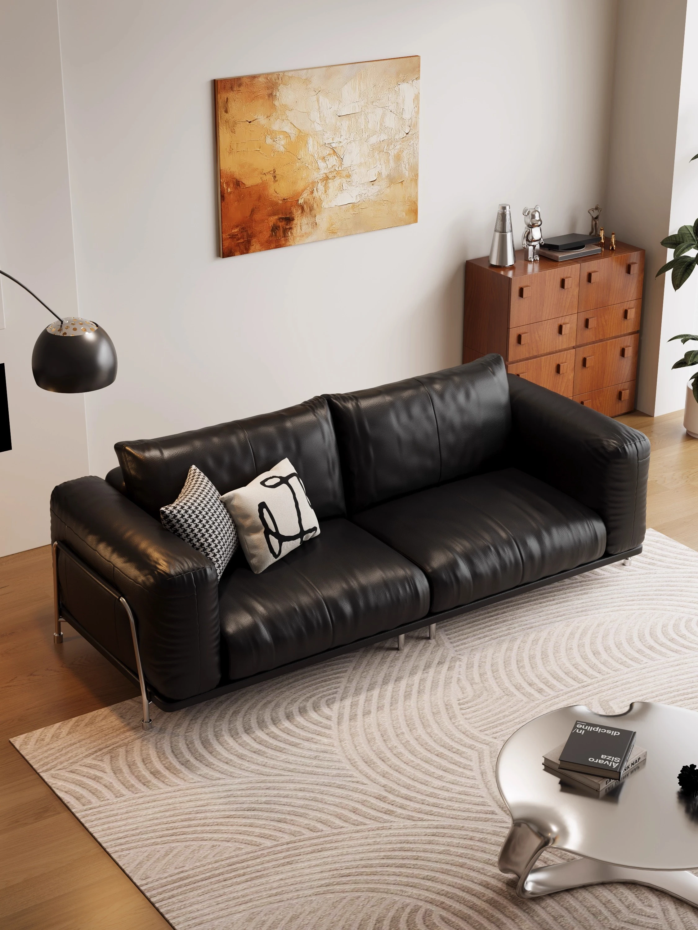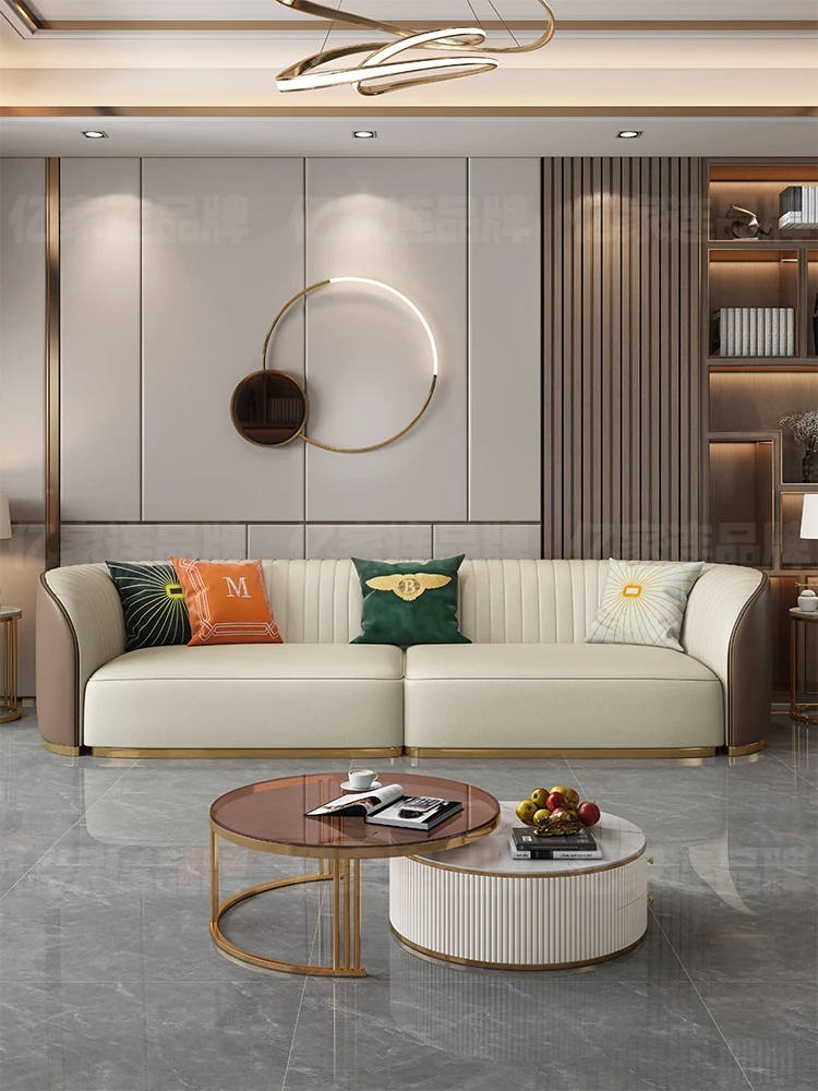 イタリアンミニマリズムの本革ソファ、ラグジュアリーな大邸宅にぴったりのモジュラーソファセット!ネットで話題のローレンススタイルで、リビングをスタイリッシュに演出します。