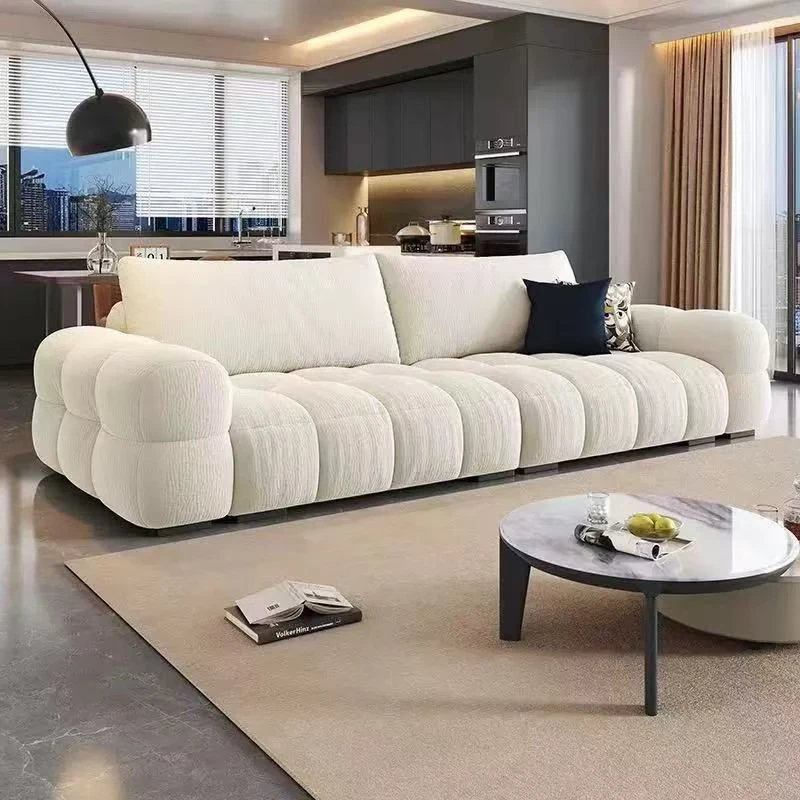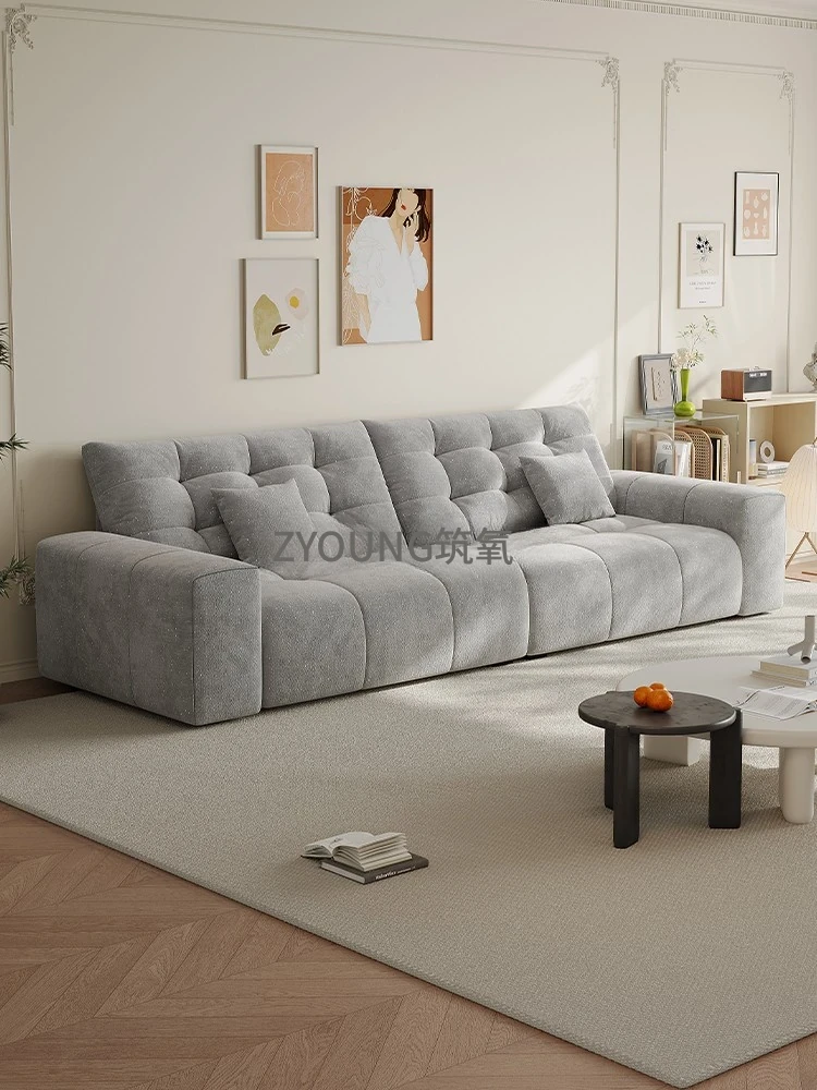 イタリアンミニマルデザインのシェニール生地ソファ|現代的なリビングにぴったりの小型3~4人用豆腐ブロックソファで、スタイリッシュな空間を演出!