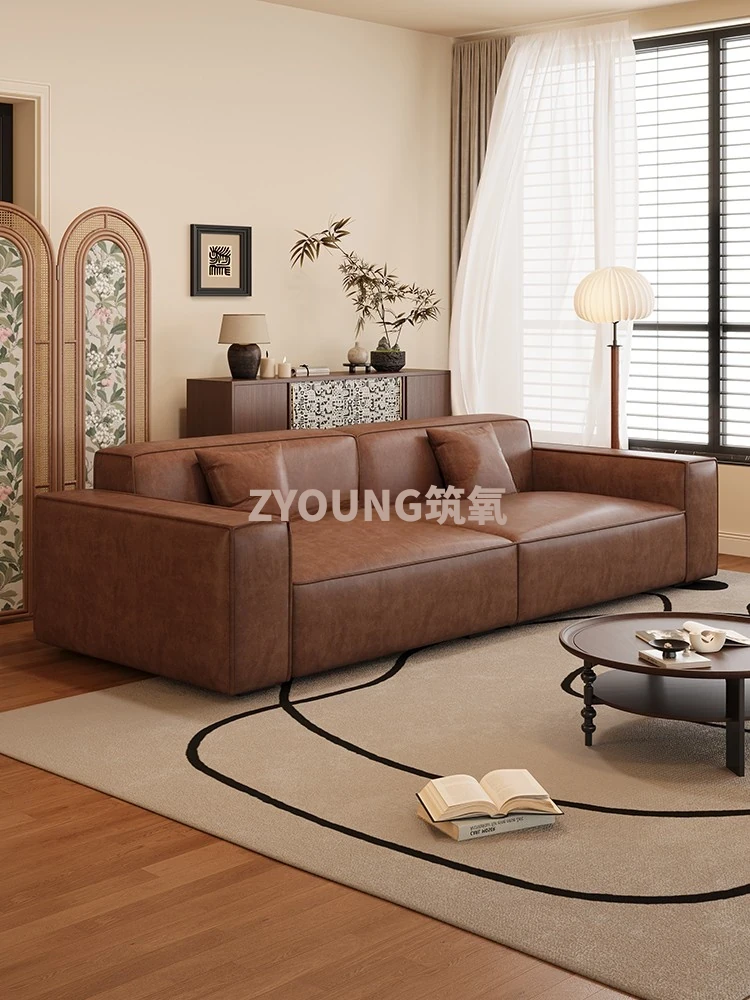 フレンチヴィンテージオイルレザーソファ|リビングにぴったり!コンパクトアパート向けのトーフブロックソファ|2025年新作登場!おしゃれで機能的な空間を演出します。