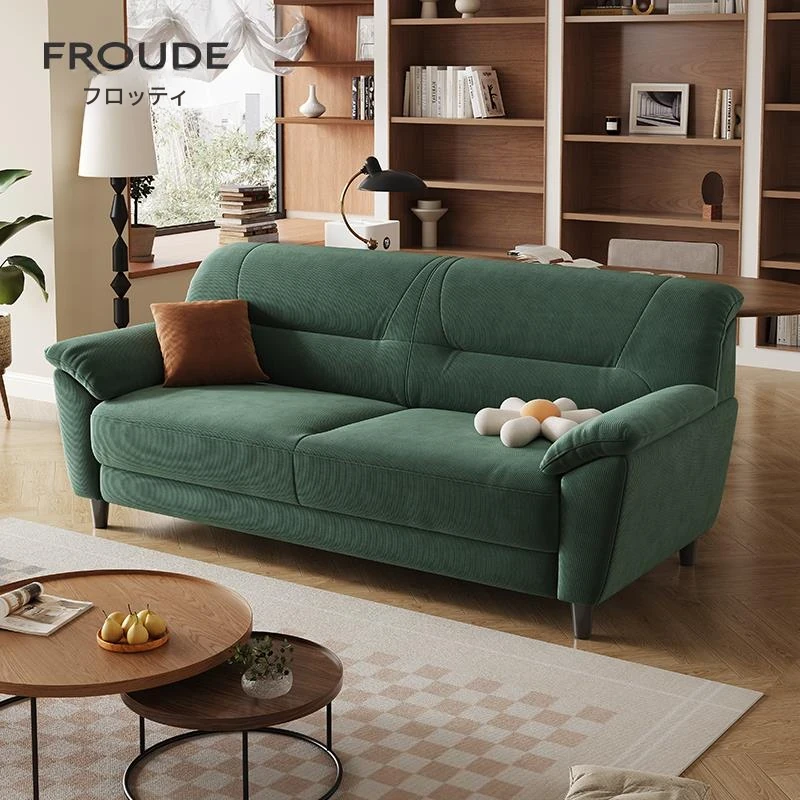 【香港送料無料】北欧風シンプルデザインの小型リビング用ファブリックソファ!人気のコーデュロイ製、直線的なダブルソファ、爽やかなグリーン色でお部屋をおしゃれに彩ります!