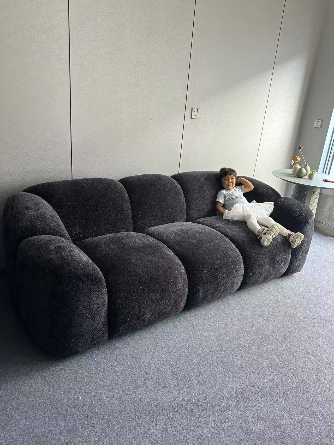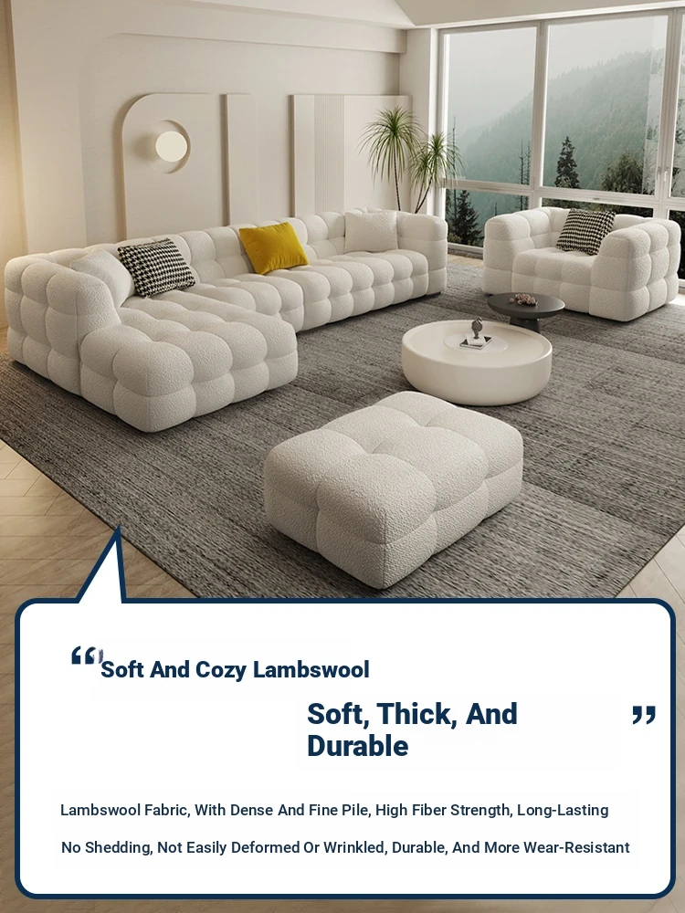 Minimalist French Nordic Cotton Candy Fabric Sofa - Retro Corner Chaise Lounge in Creamy Lambswool BOBA Style, Perfect for Cozy Living Spaces.