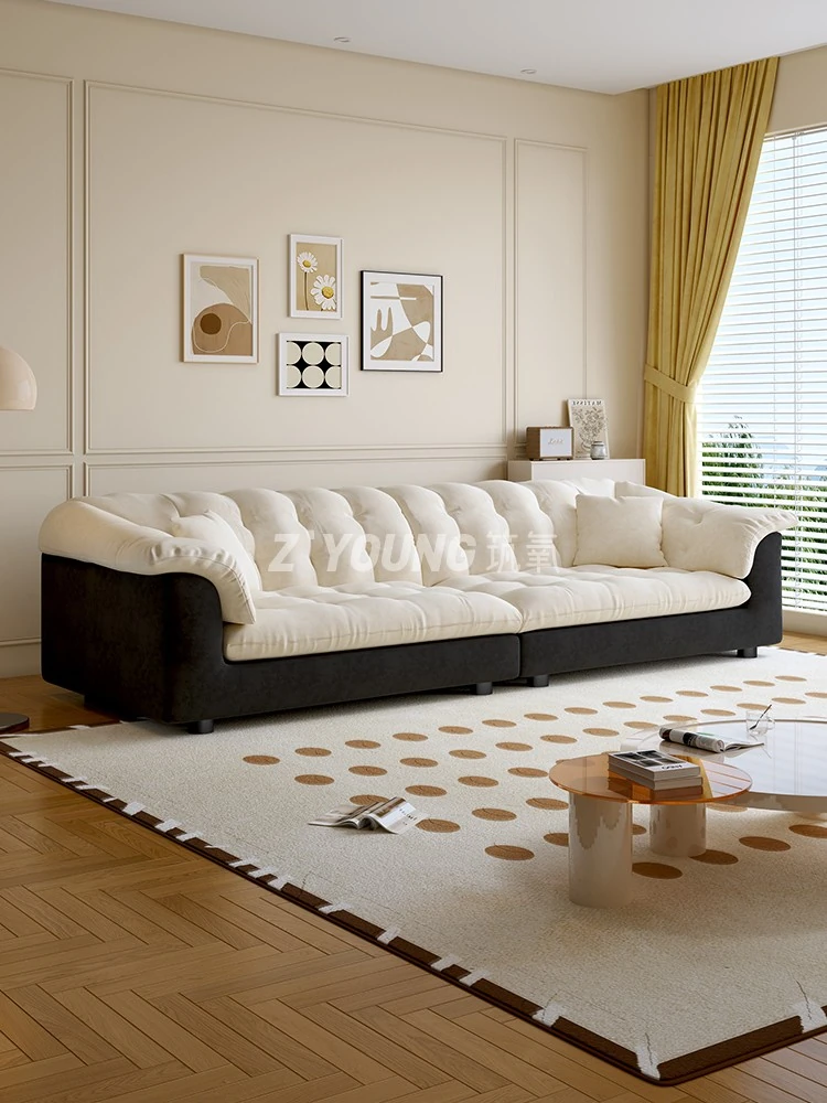 Nordic Minimalist Retro Fabric Sofa for Small Spaces – French Cream Modern Designer Creative Straight Sofa