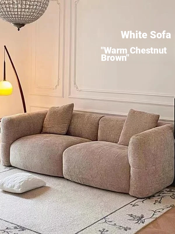 Orewell Creative Square Big White Sofa - French Cream Style, Minimalist Modern Cotton-Linen Chenille for Your Living Room