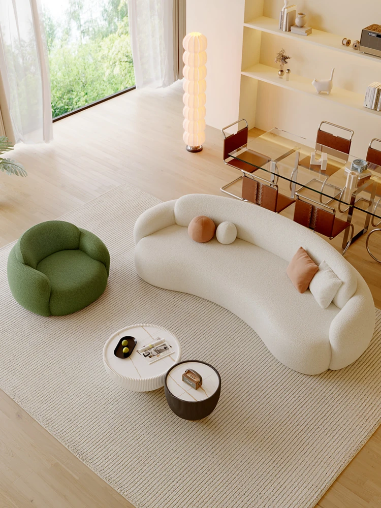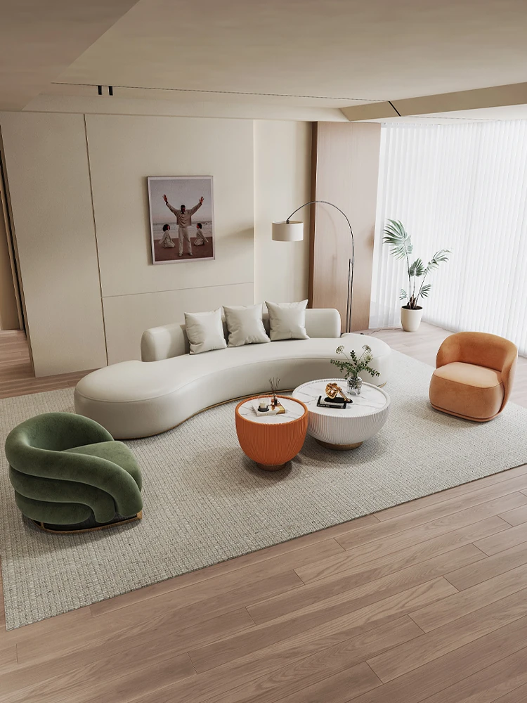 2025 New Curved Cream Sofa for Small Apartments - Perfect for Living Rooms, Wedding Studios, Beauty Salons, and Reception Areas