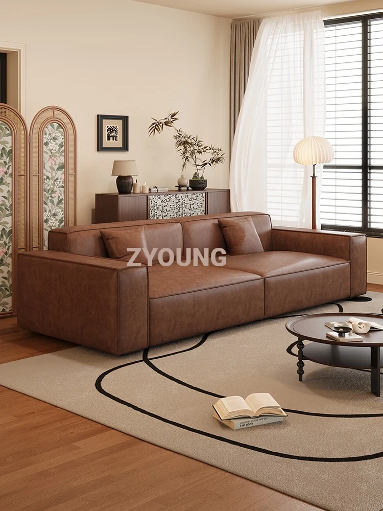 French Vintage Waxed Leather Sofa - Stylish Block Sofa for Small Apartments - Perfect for Modern Living Rooms - New 2025 Collection