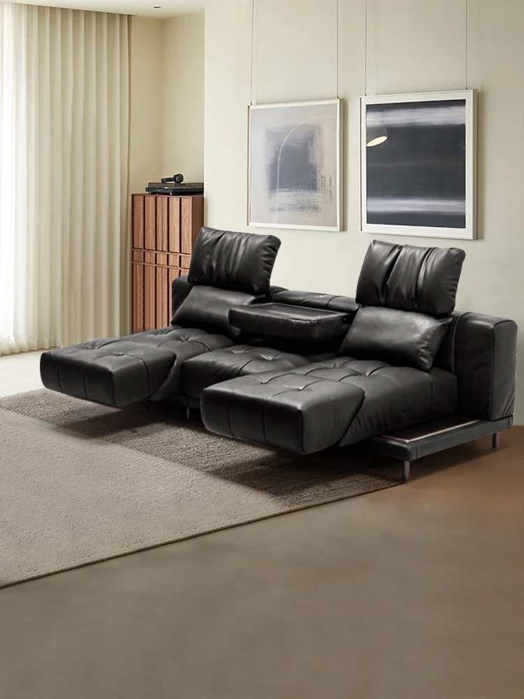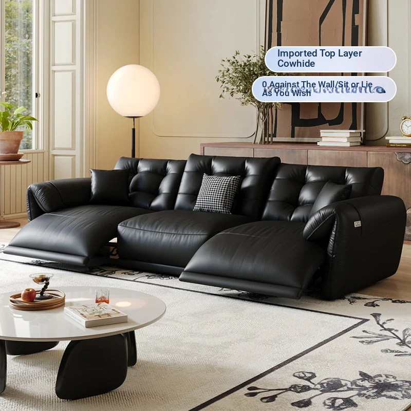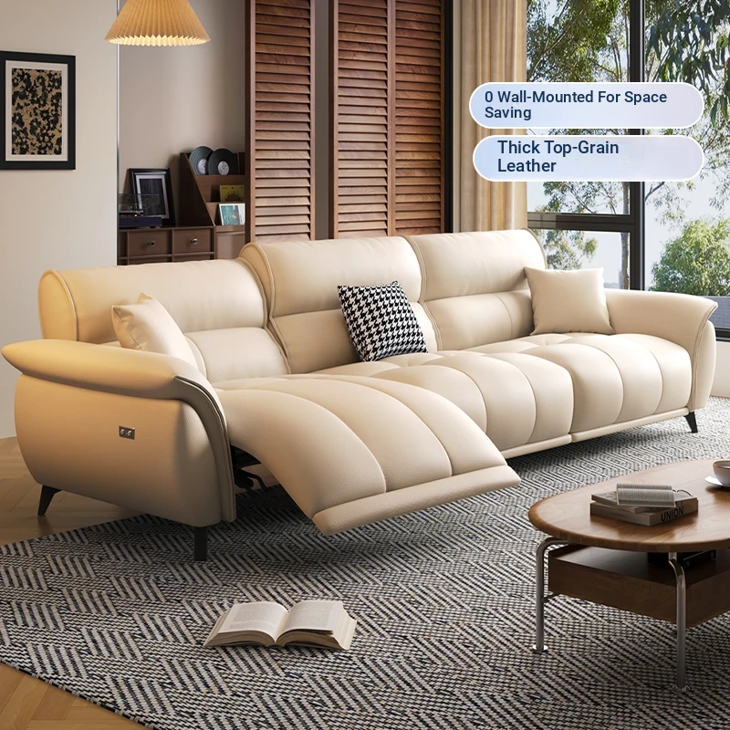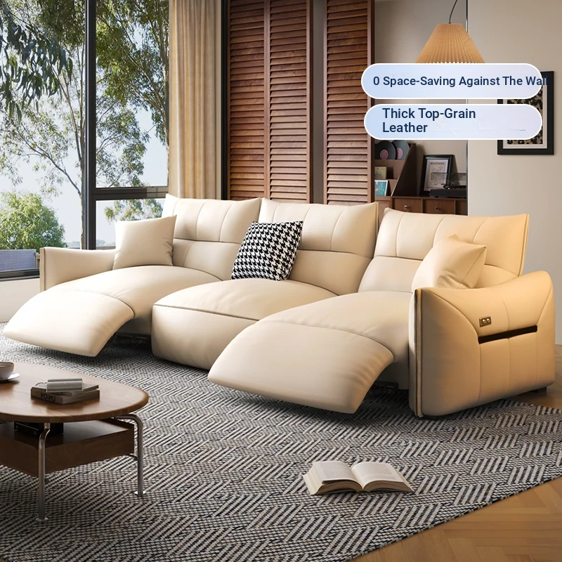 Italian Minimalist Genuine Top-Grain Leather Multifunctional Electric Sofa - Wall-Hugging, Adjustable, Smart Luxury Comfort