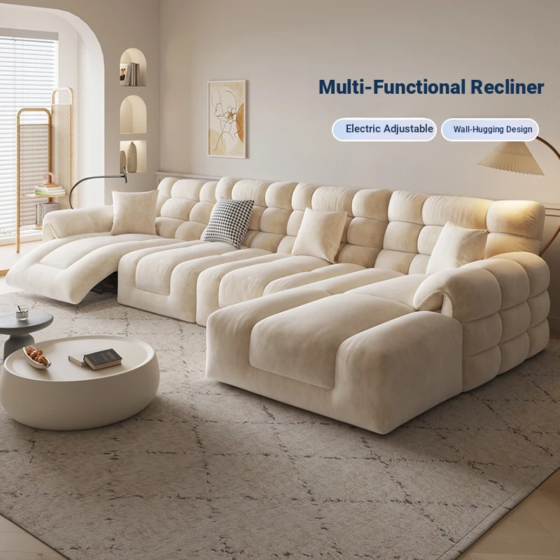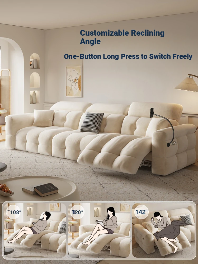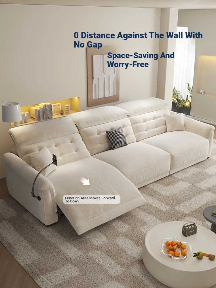 Modern Minimalist Space Electric Recliner Sofa for Small Living Rooms - Cat-Proof Fabric, Creamy Aesthetic, Comfortable Three-Seater Couch