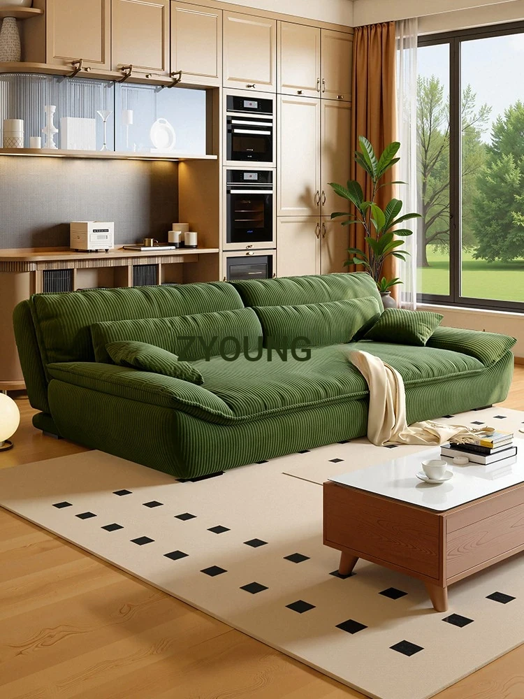 Vintage-Inspired Small Living Room Designer Cotton Candy Cloud Chenille Green Puffed Fabric Sofa - Perfect for Cozy Spaces!