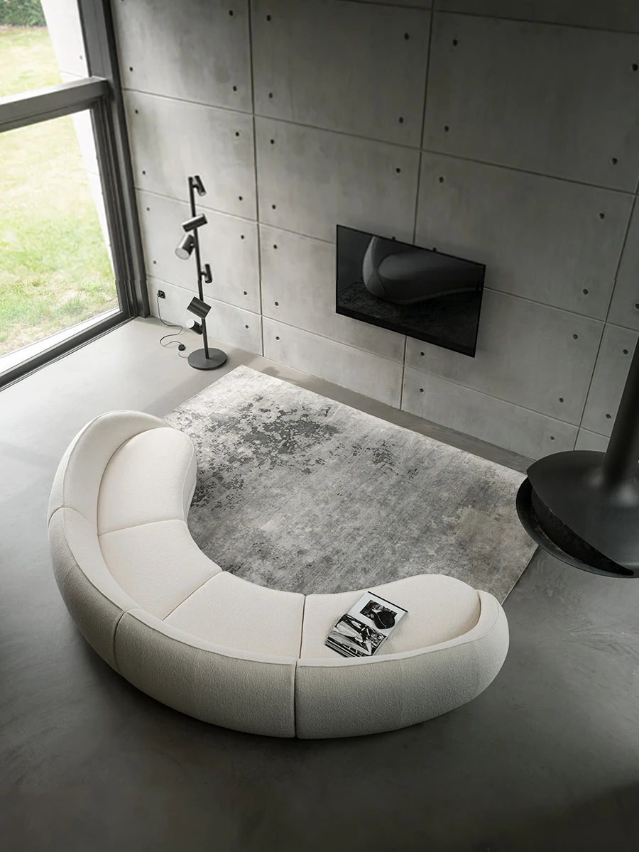 Wabi-Sabi Modern Luxury Designer Italian Minimalist Asymmetrical Curved Lambswool Moon Fabric Sofa for Living Room - Elevate Your Space with Timeless Elegance and Comfort