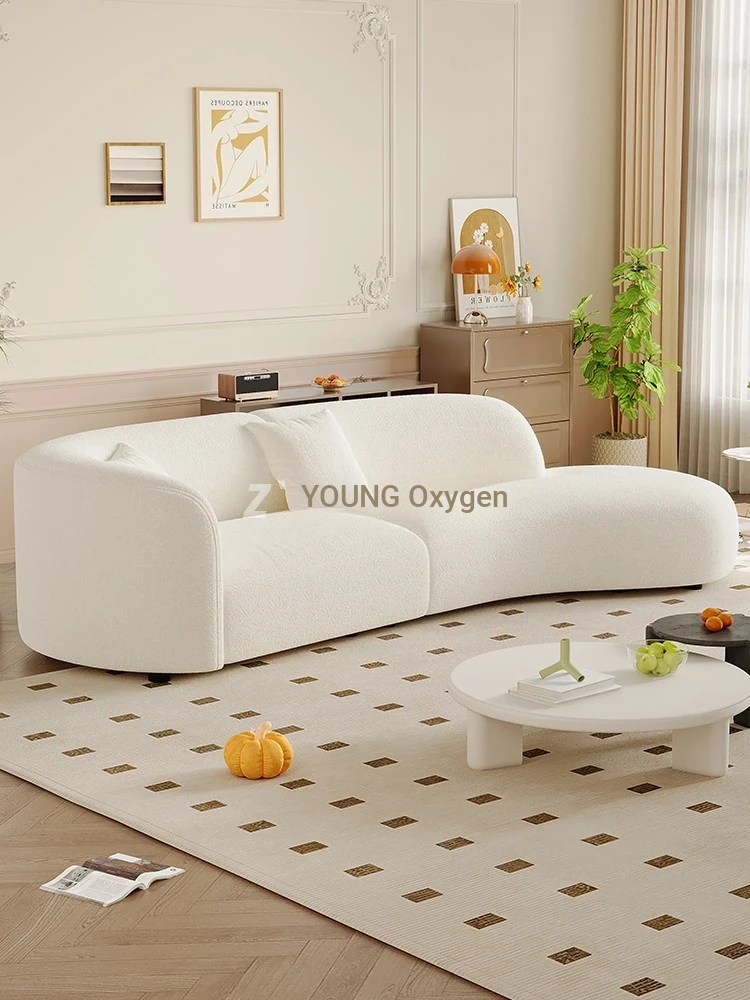 French Cream Curved Cashew Fabric Sofa - Perfect for Small Apartments! Luxurious Lamb Fleece Moon-Shaped Design for a Cozy Living Room Experience.