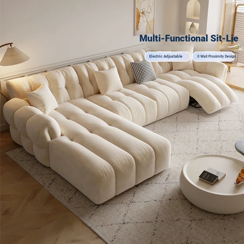 2024 New Cream-Colored Electric Leather Sofa - Premium Top-Grain Cowhide Space Capsule Design for Modern Living Room Comfort