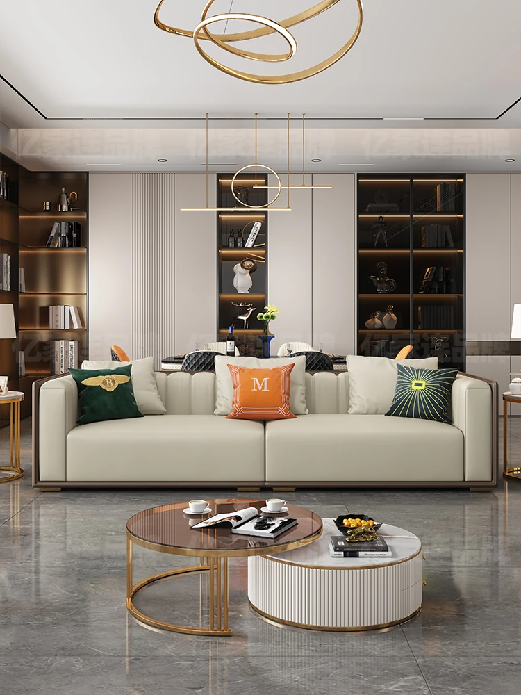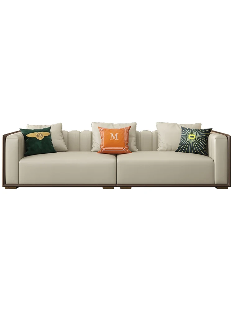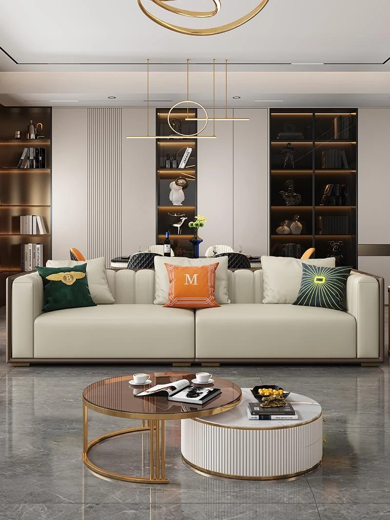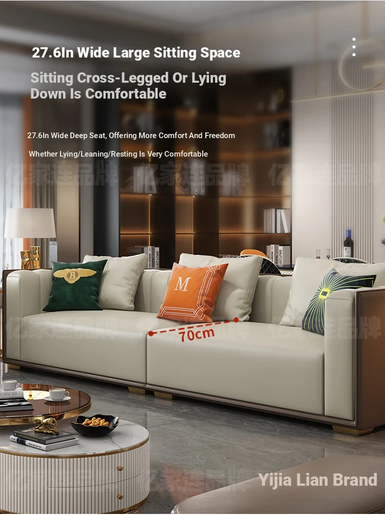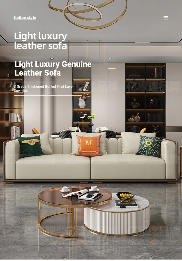 2024 New Italian Luxury Genuine Leather Sofa - Modern Minimalist Design for Villas, Featuring Top-Grade Cowhide and Straight-Line Style for a Chic Living Room Upgrade