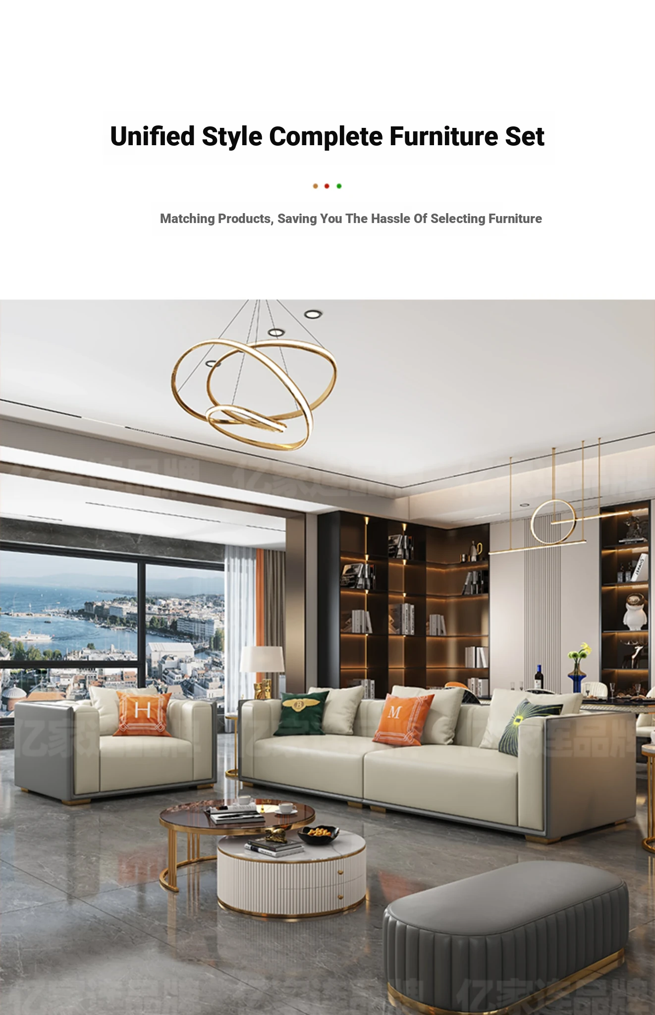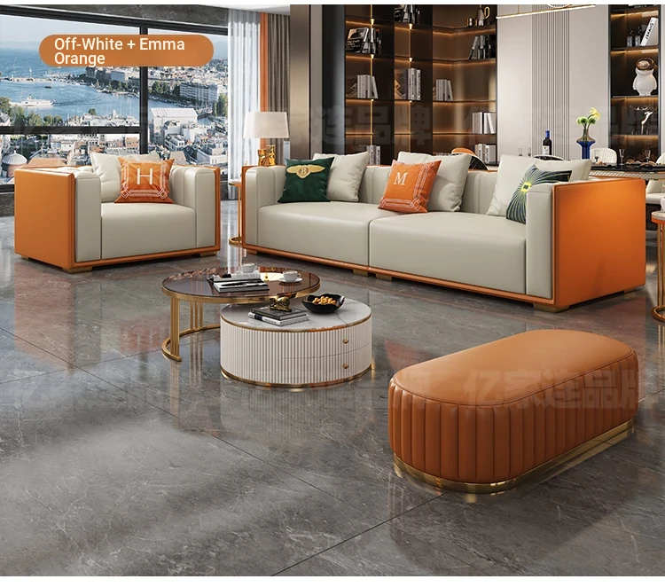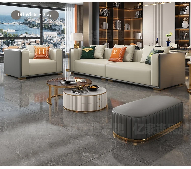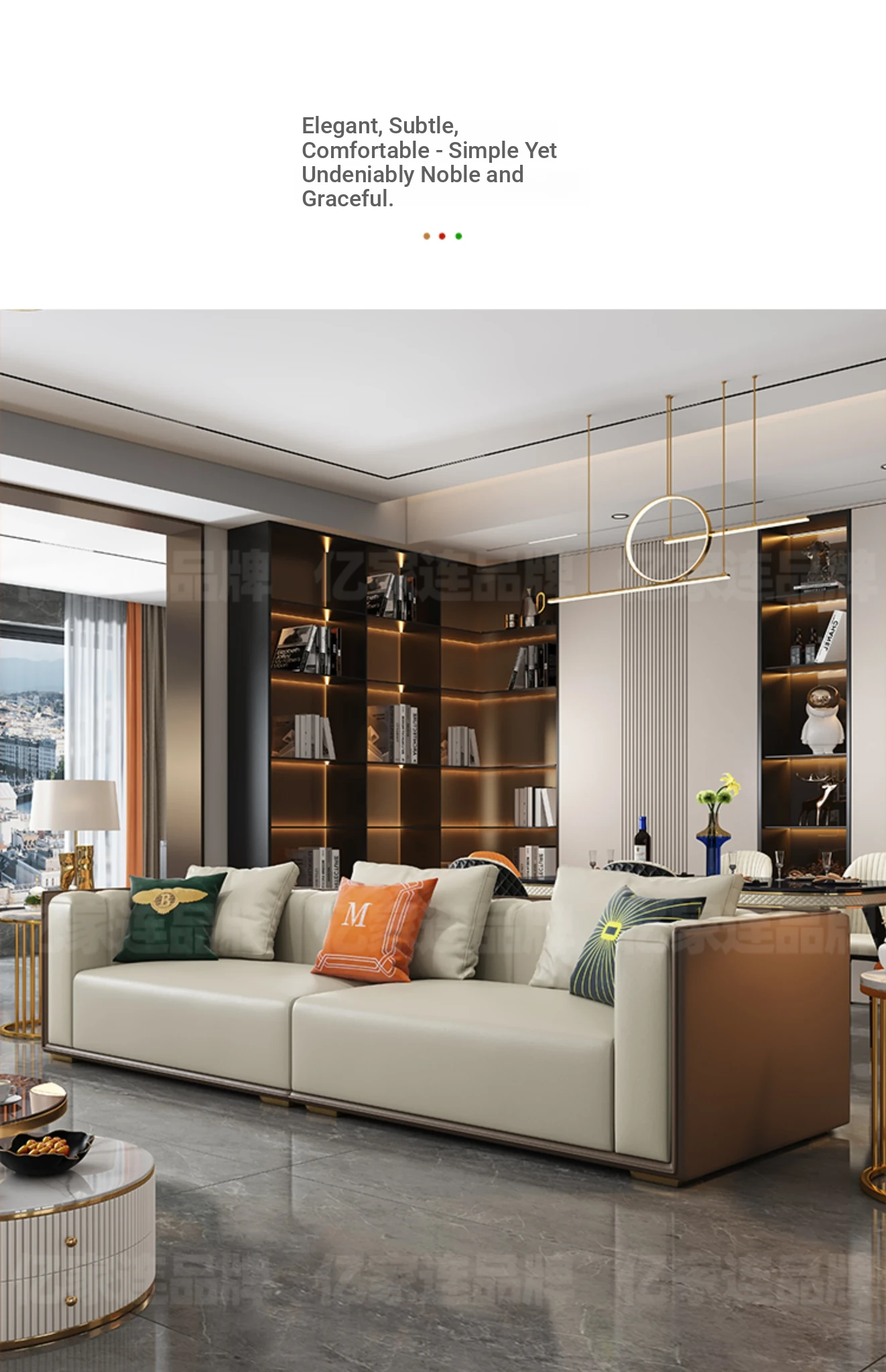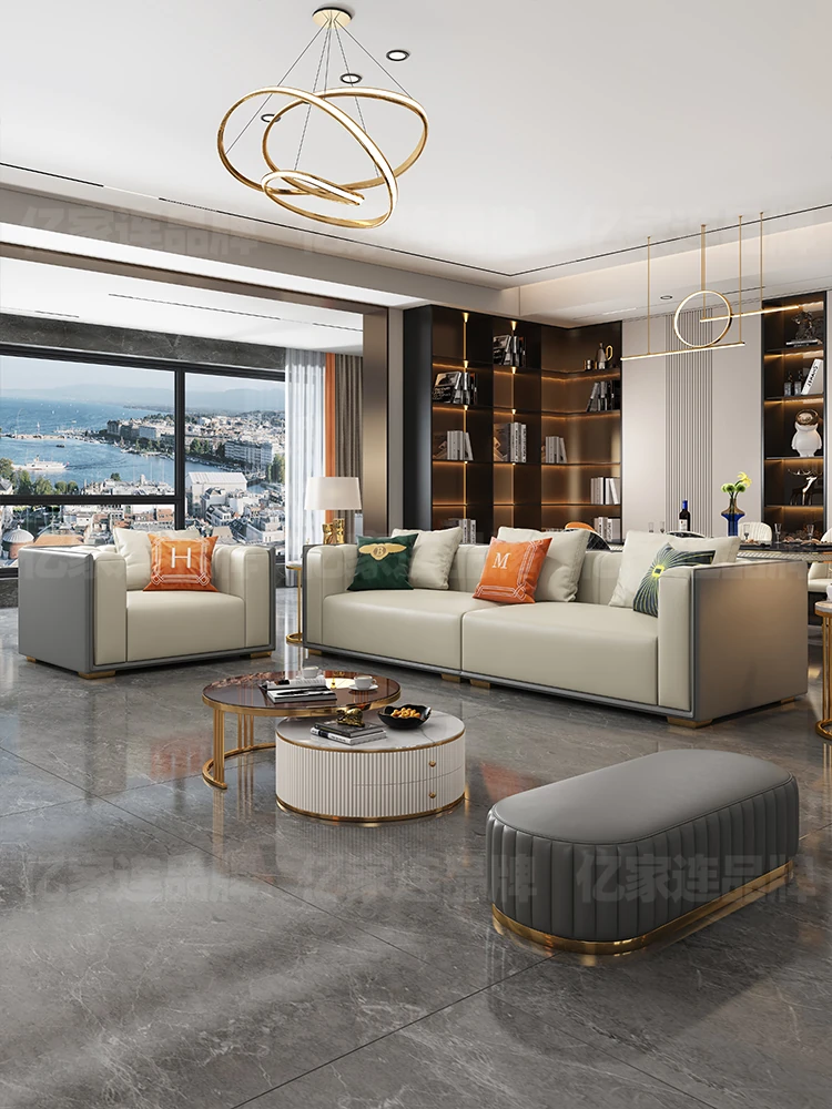 2024 New Italian Luxury Genuine Leather Sofa - Modern Minimalist Design for Villas, Featuring Top-Grade Cowhide and Straight-Line Style for a Chic Living Room Upgrade