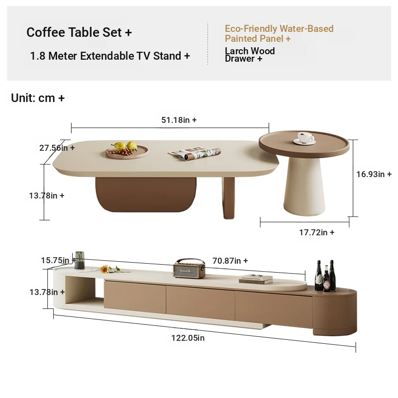 Combination of Large and Small Coffee Tables + 70.87in Telescopic Tv Cabinet
