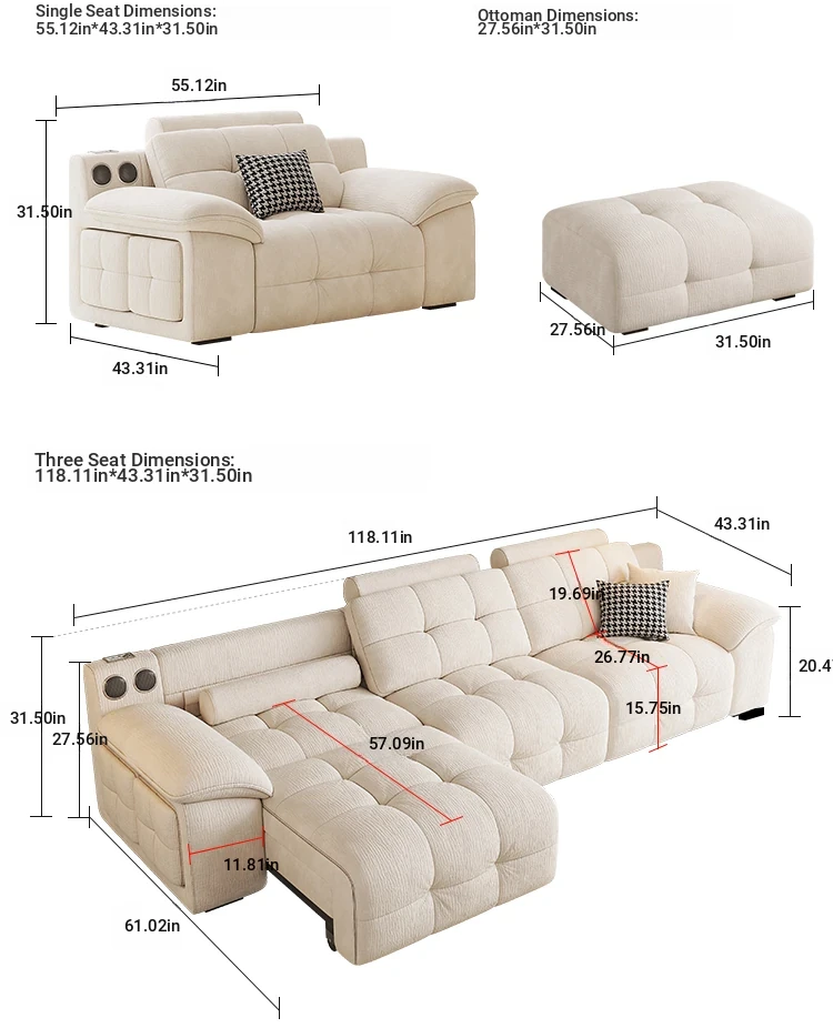 102.36in Double Seat (Double Electric) 550g Heavy Chenille(Iinersive Bluetooth Speaker + Charging)