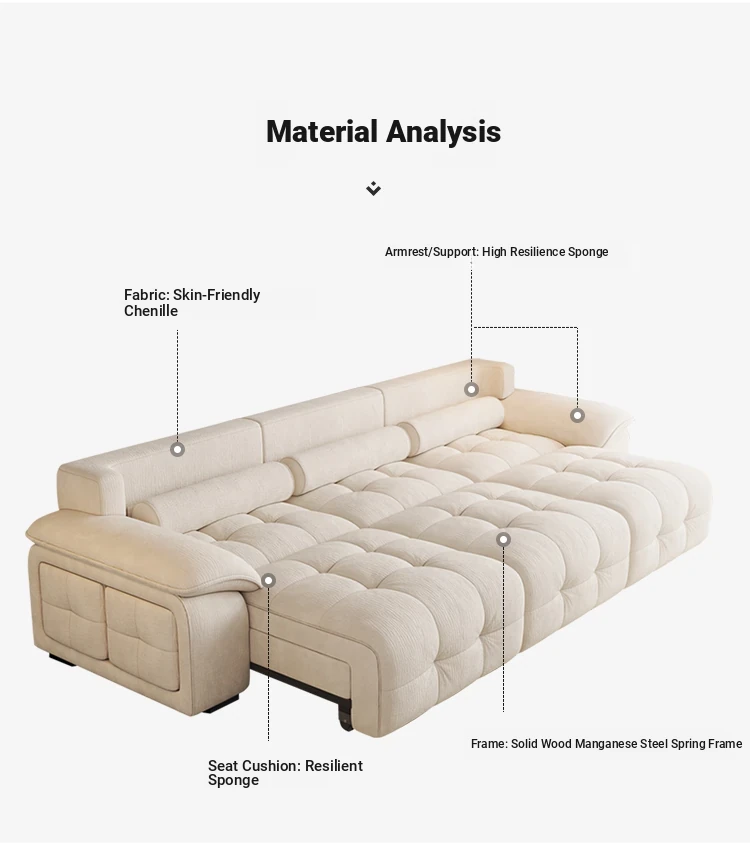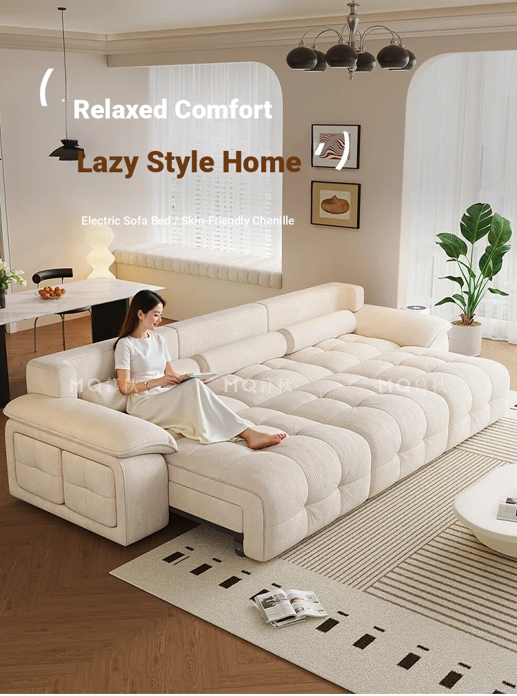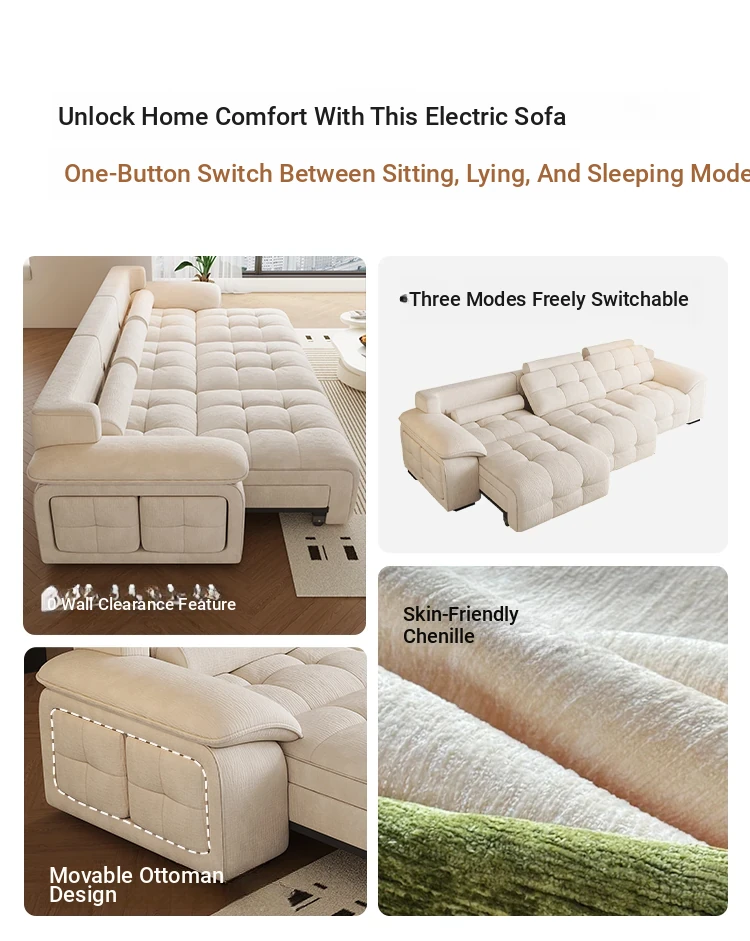 Adjustable Electric Sofa Bed - Multi-functional Chaise Lounge for Living Room, Wall Recliner with Stretch Capability, Soft Chenille Upholstery, Perfect for Home Comfort