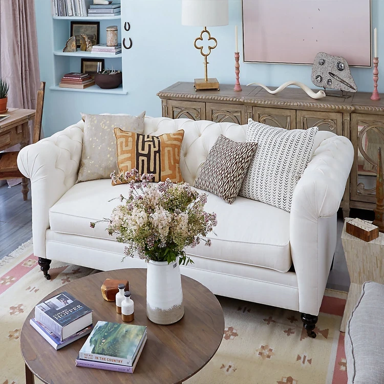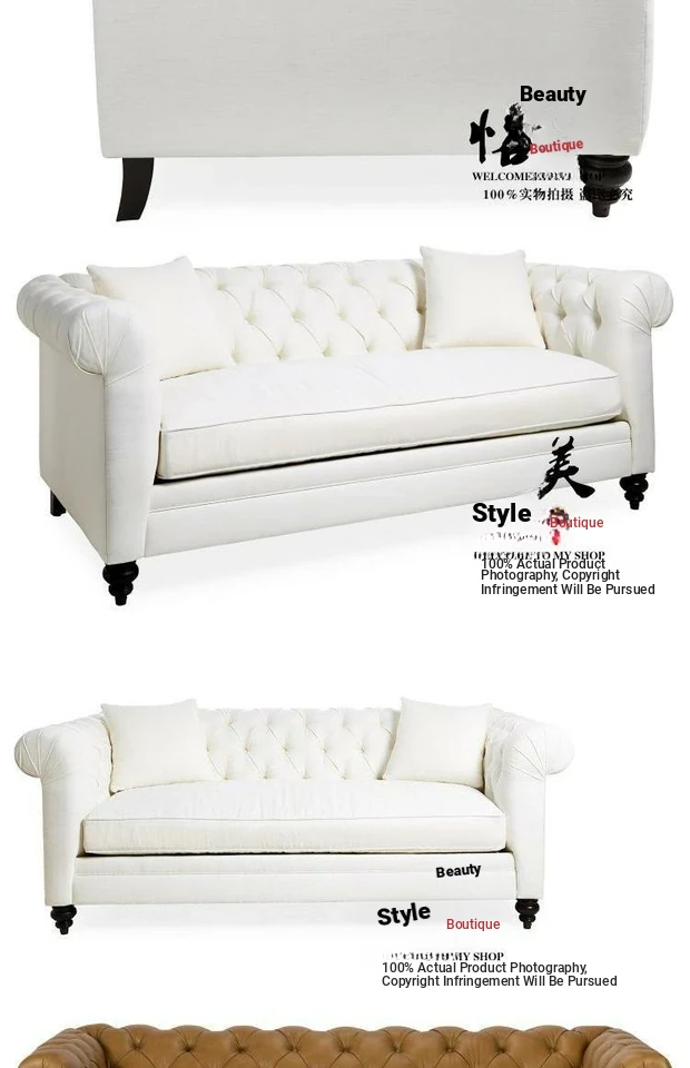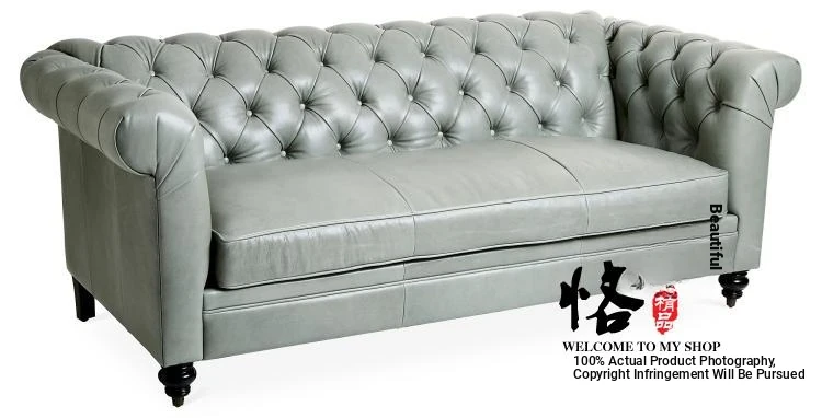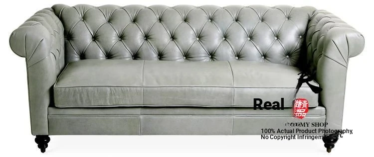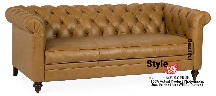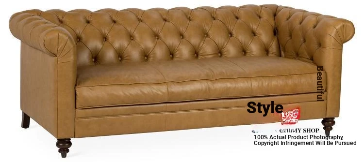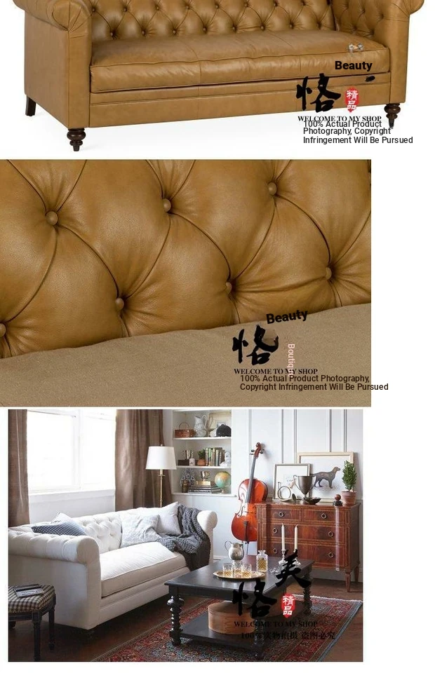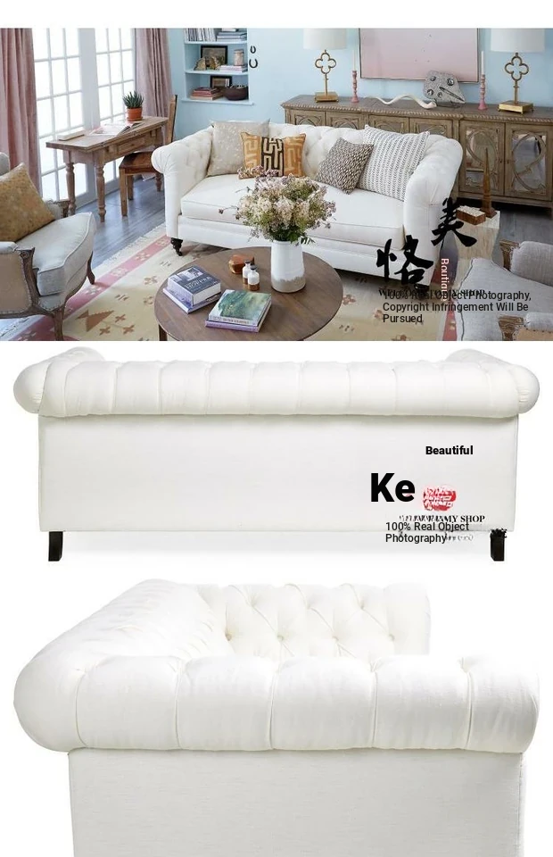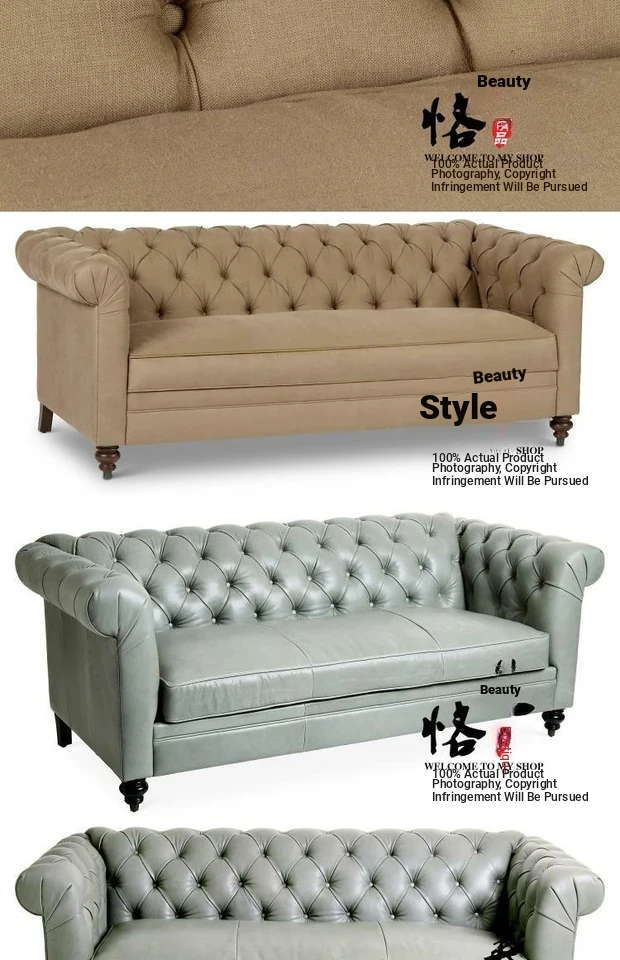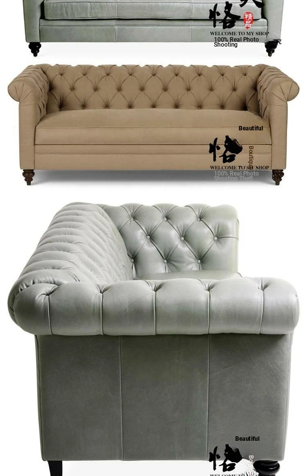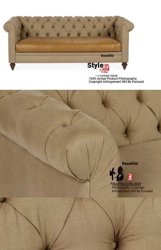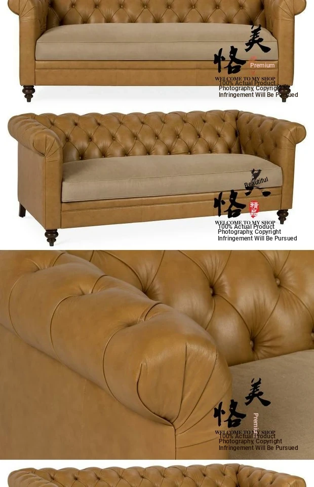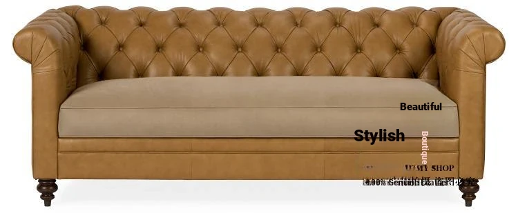 American Country Style Genuine Leather and Fabric Sofa - Compact 1/2/3-Seater Combination for Small Spaces, Perfect for Nordic and Rustic Living Rooms