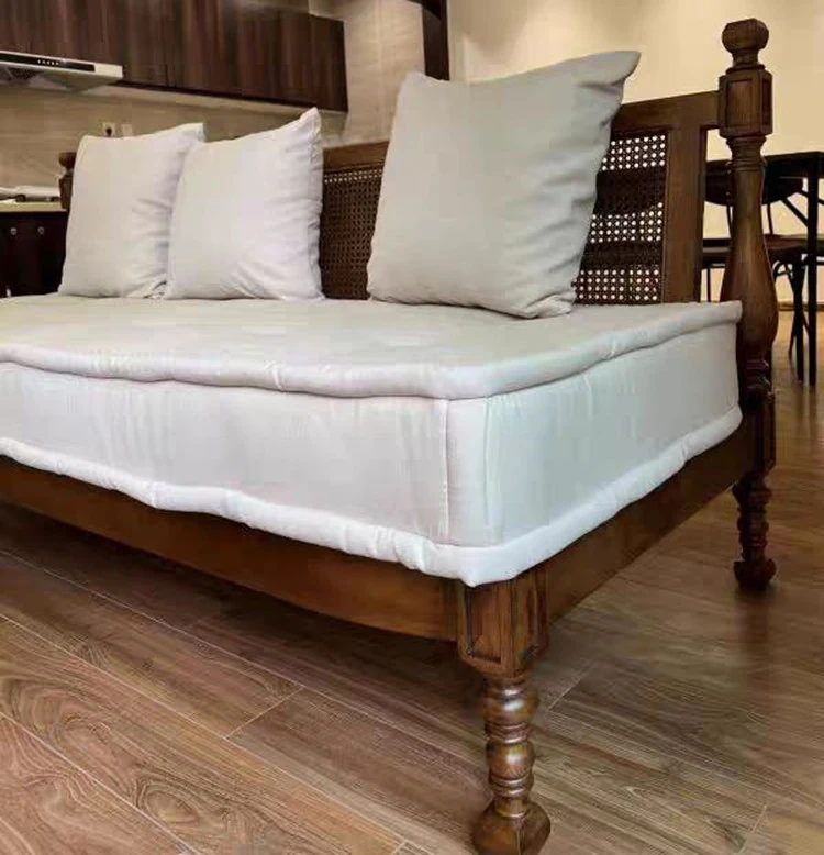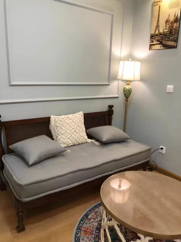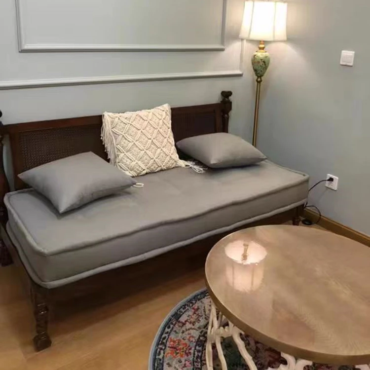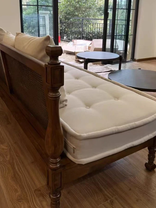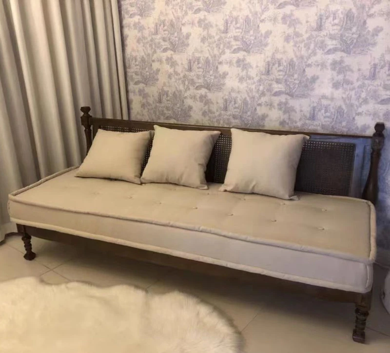 American Minimalist Solid Wood Frame Sofa - Creative Rattan Design for 2-3 People, Perfect for Small Living Rooms