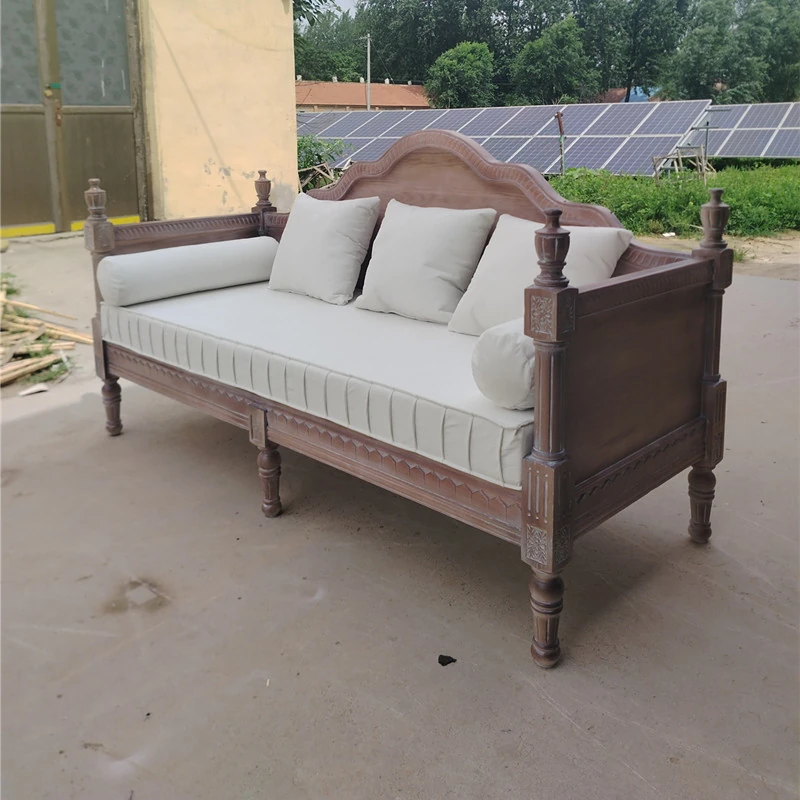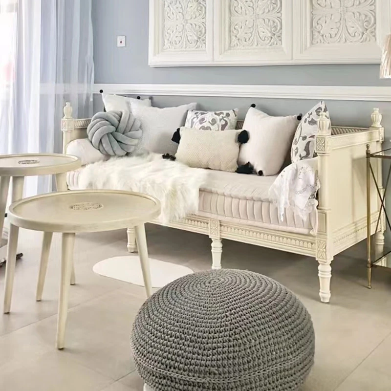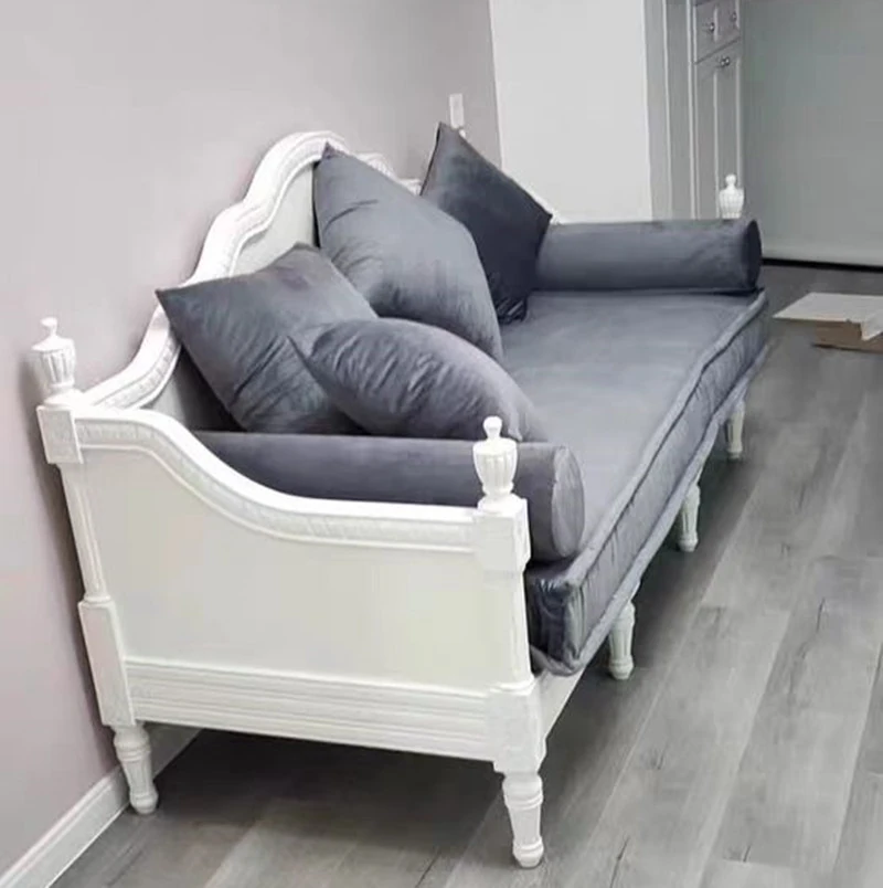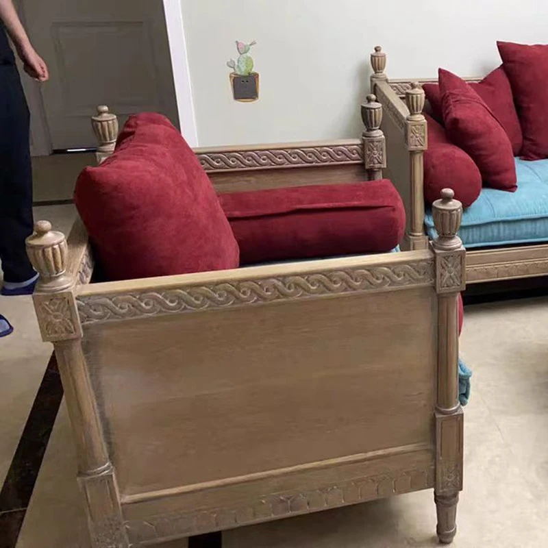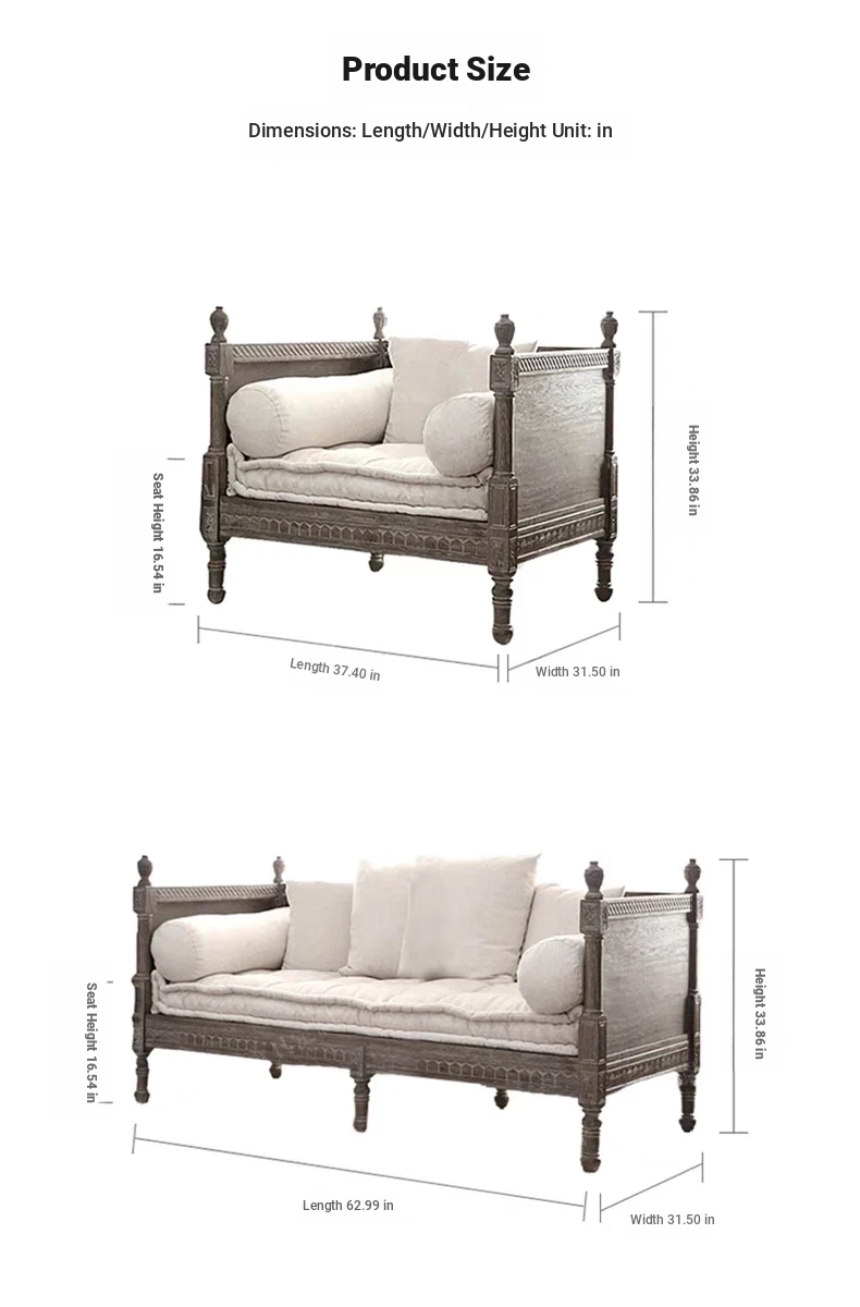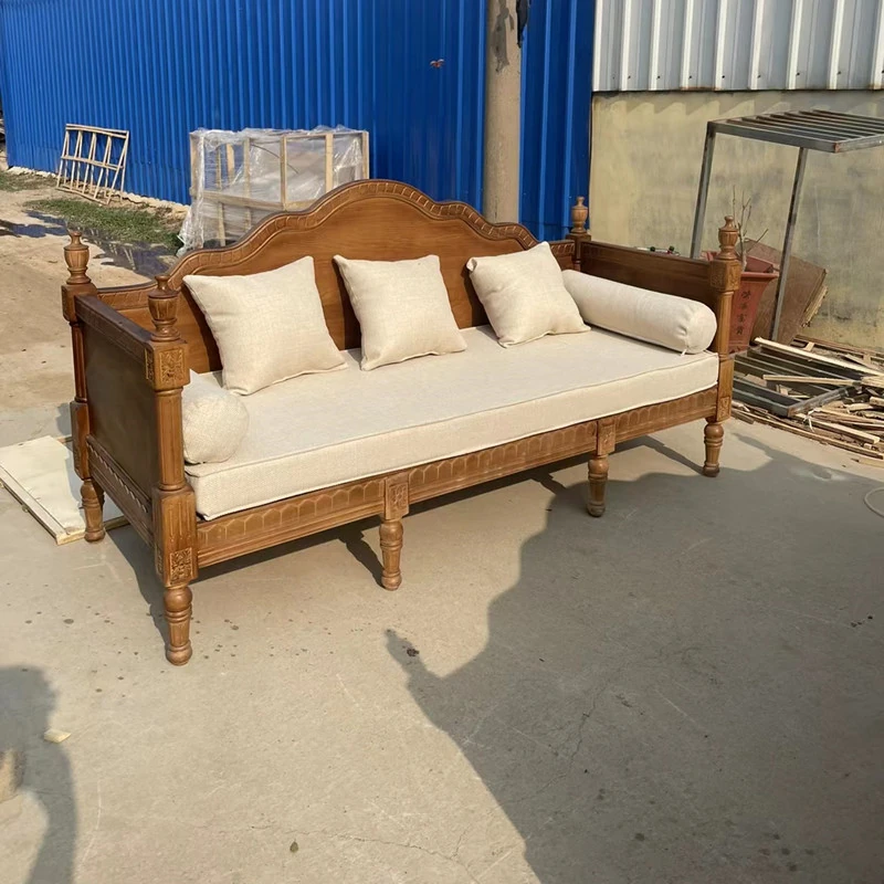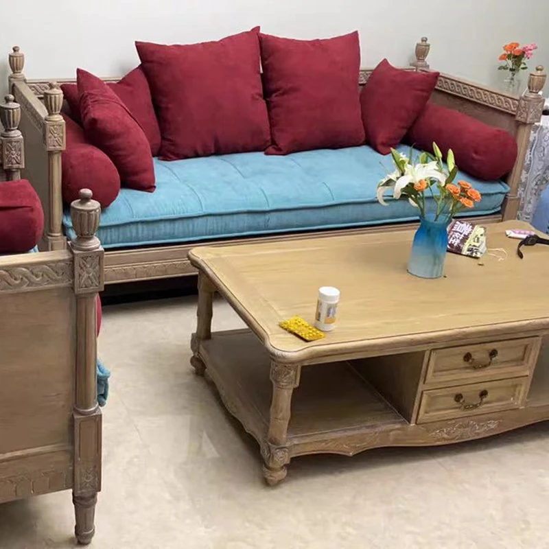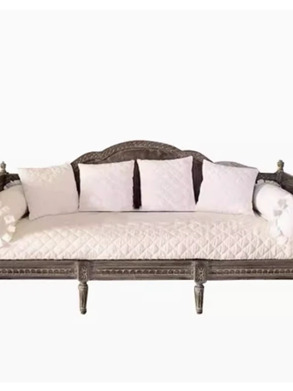 Elegant French Solid Wood Carved Sofa Set for Small Living Rooms - Vintage American Style Three-Seat Sofa Bed with Timeless Charm