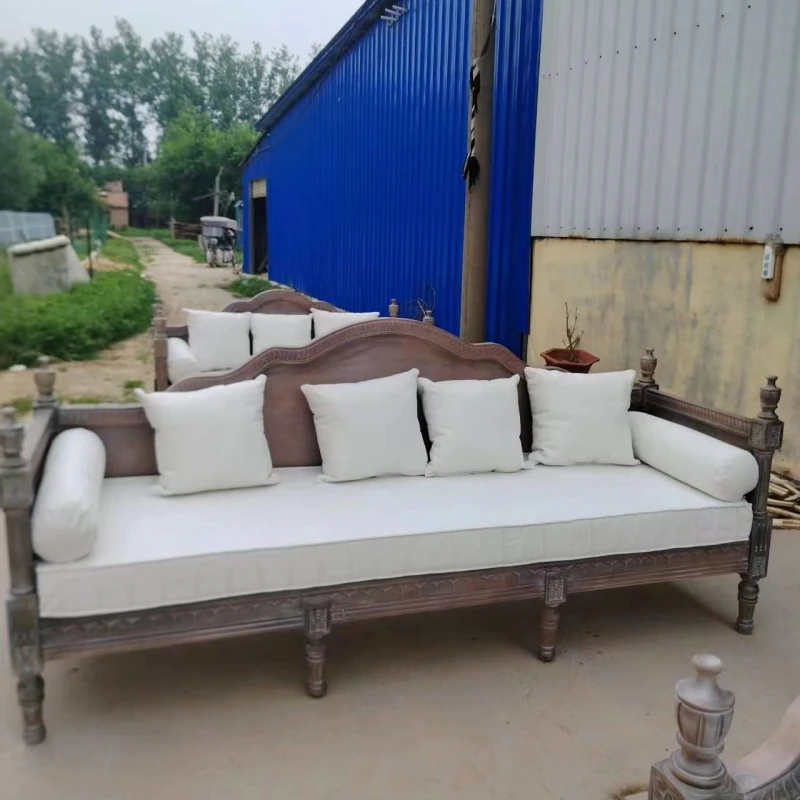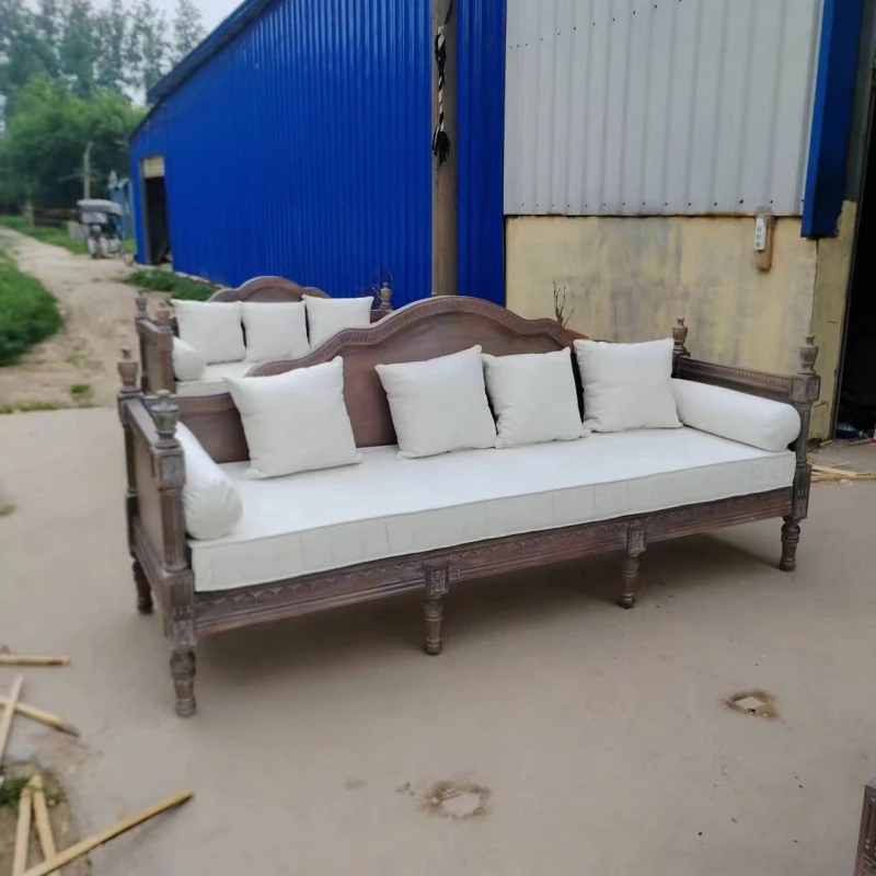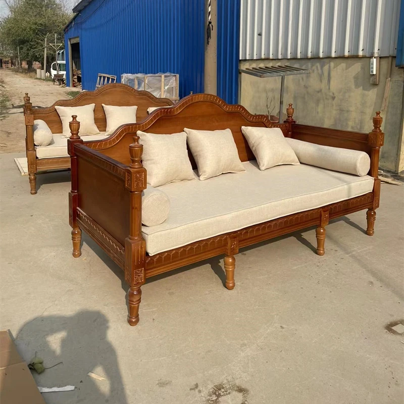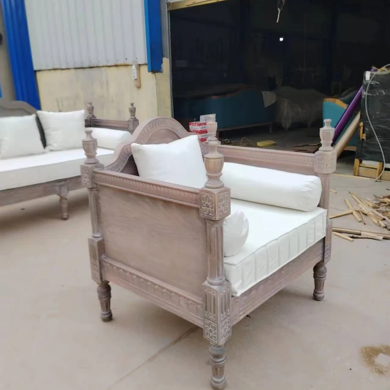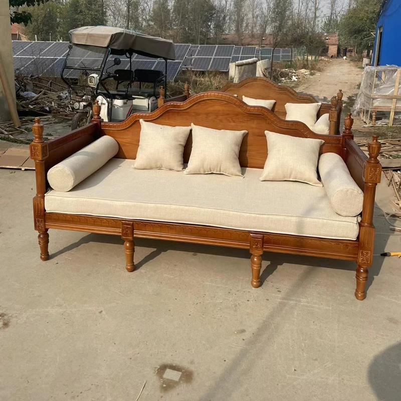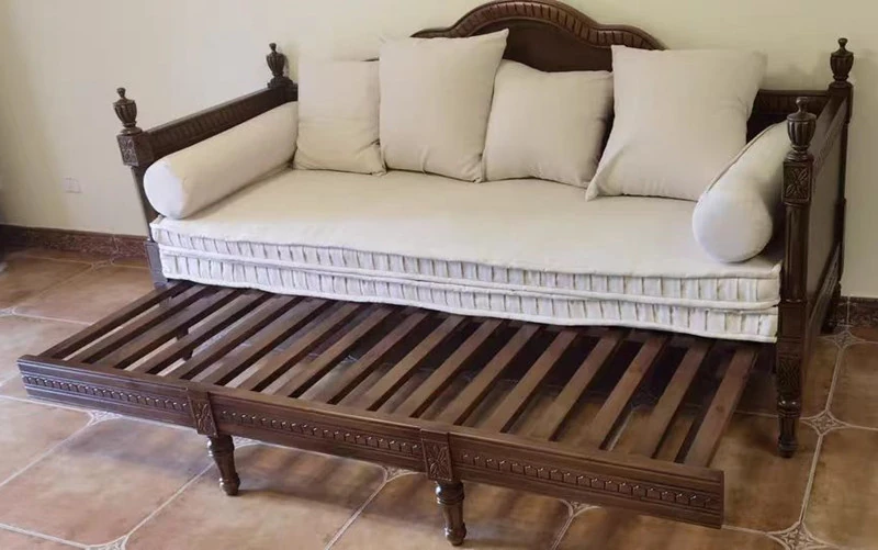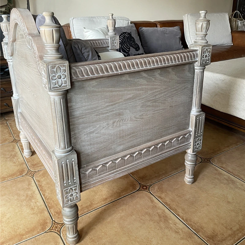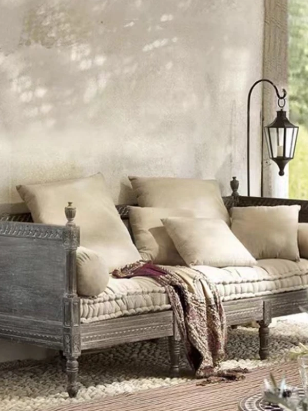Elegant French Solid Wood Carved Sofa Set for Small Living Rooms - Vintage American Style Three-Seat Sofa Bed with Timeless Charm