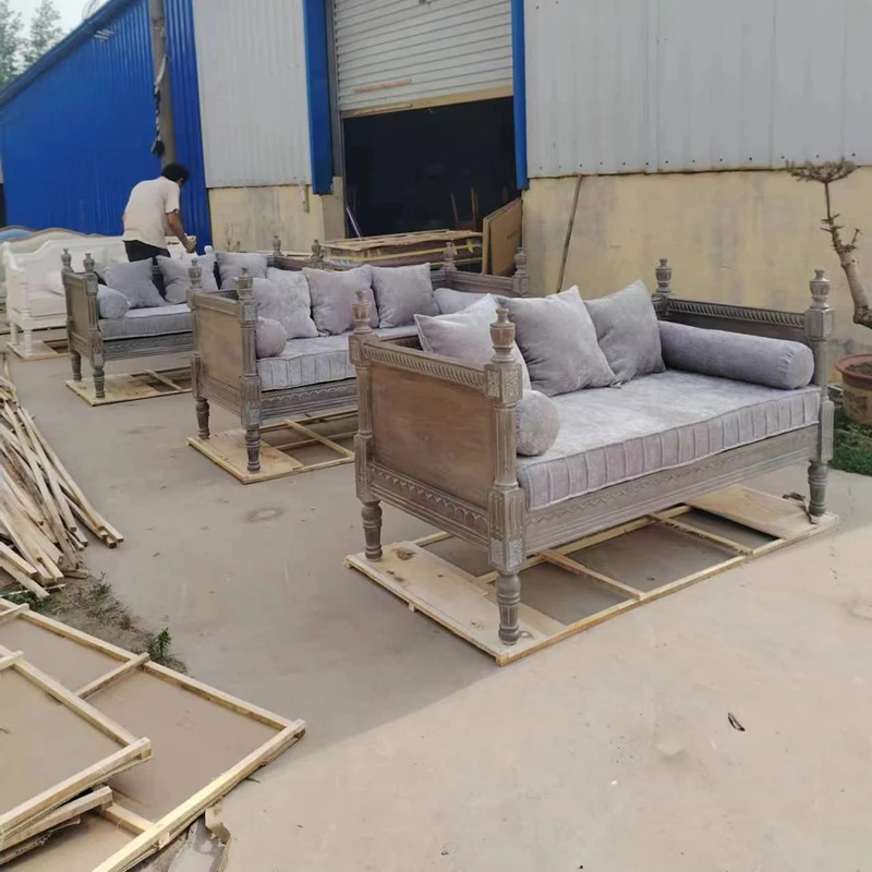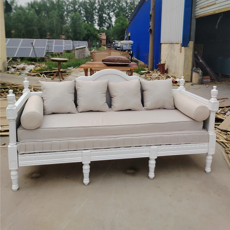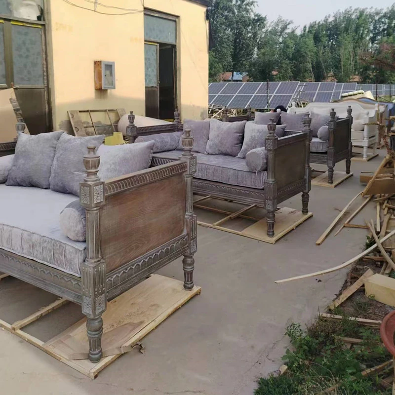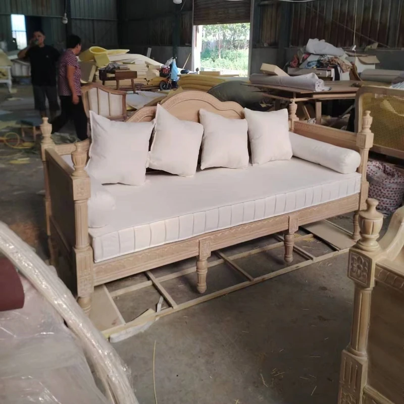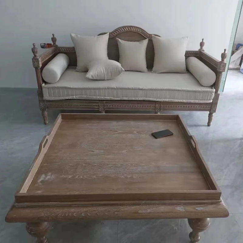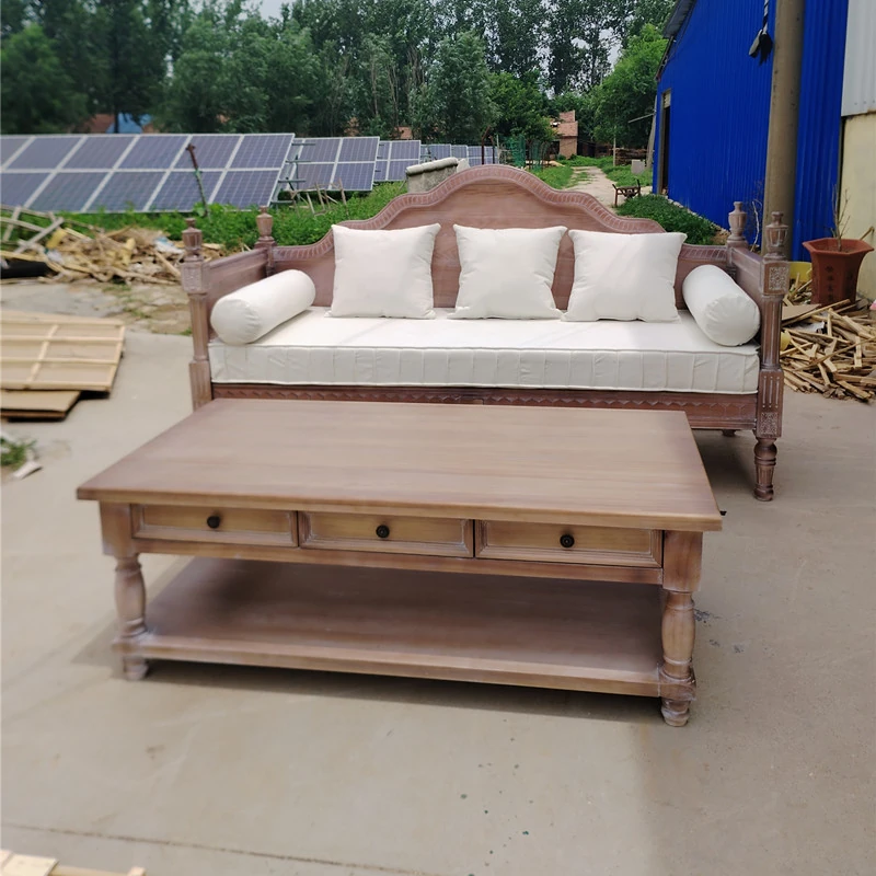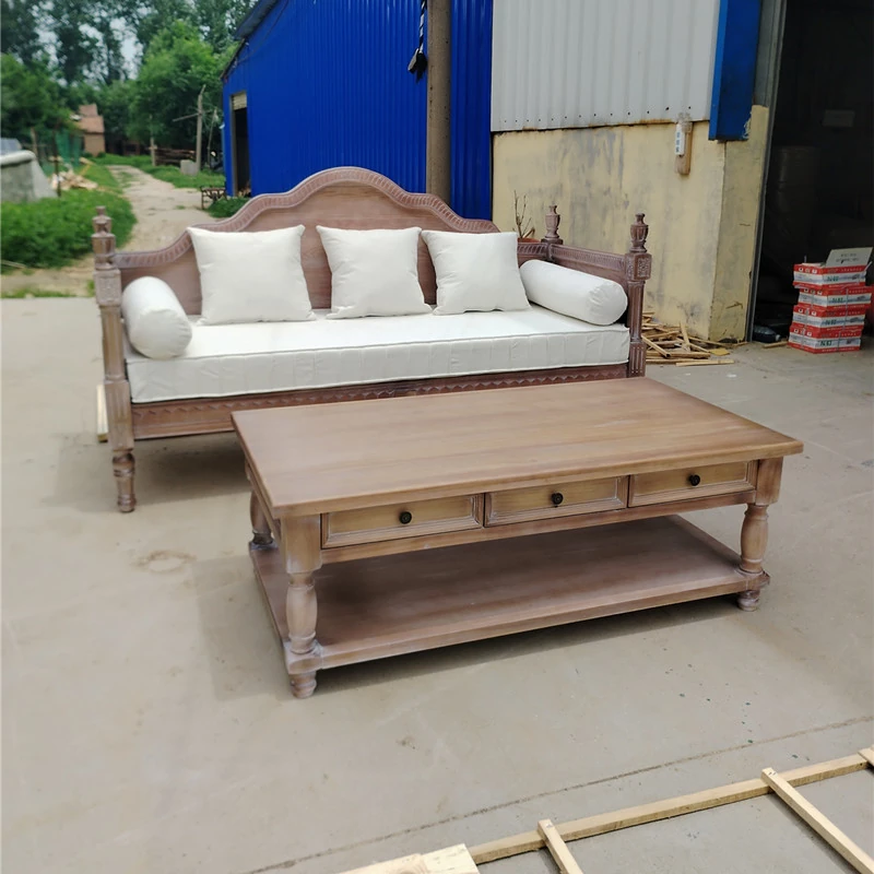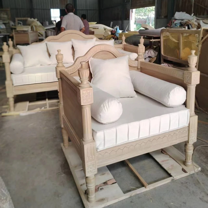 Elegant French Solid Wood Carved Sofa Set for Small Living Rooms - Vintage American Style Three-Seat Sofa Bed with Timeless Charm