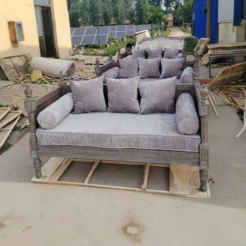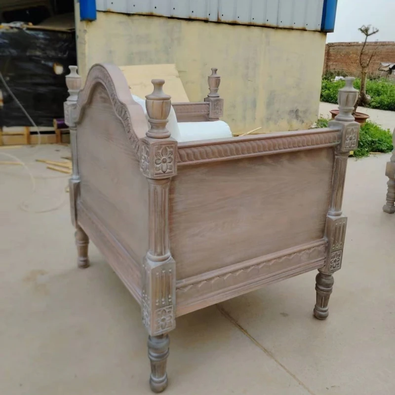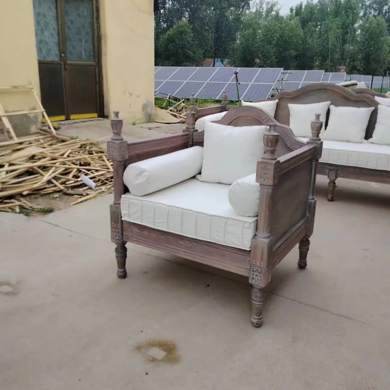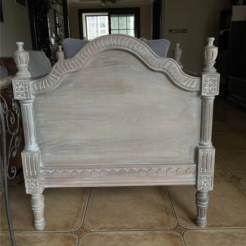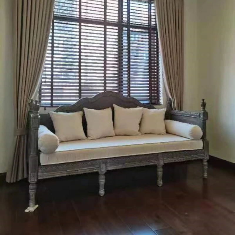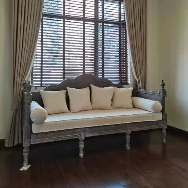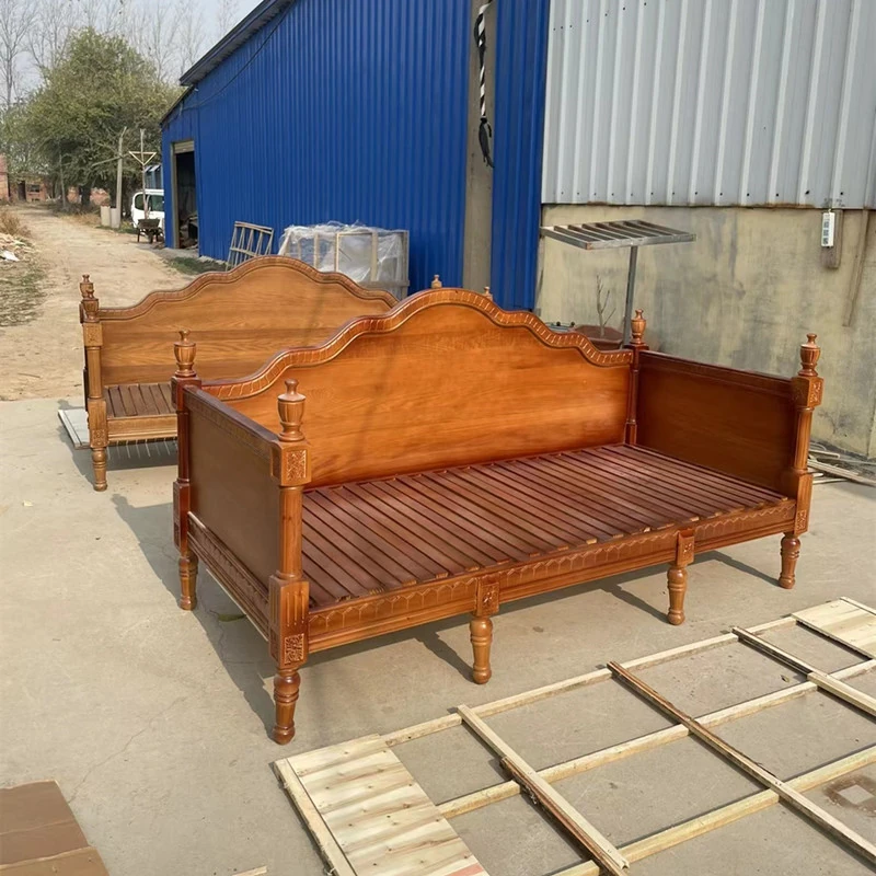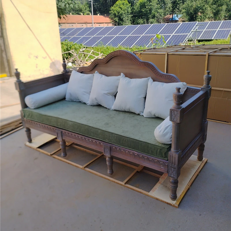 Elegant French Solid Wood Carved Sofa Set for Small Living Rooms - Vintage American Style Three-Seat Sofa Bed with Timeless Charm