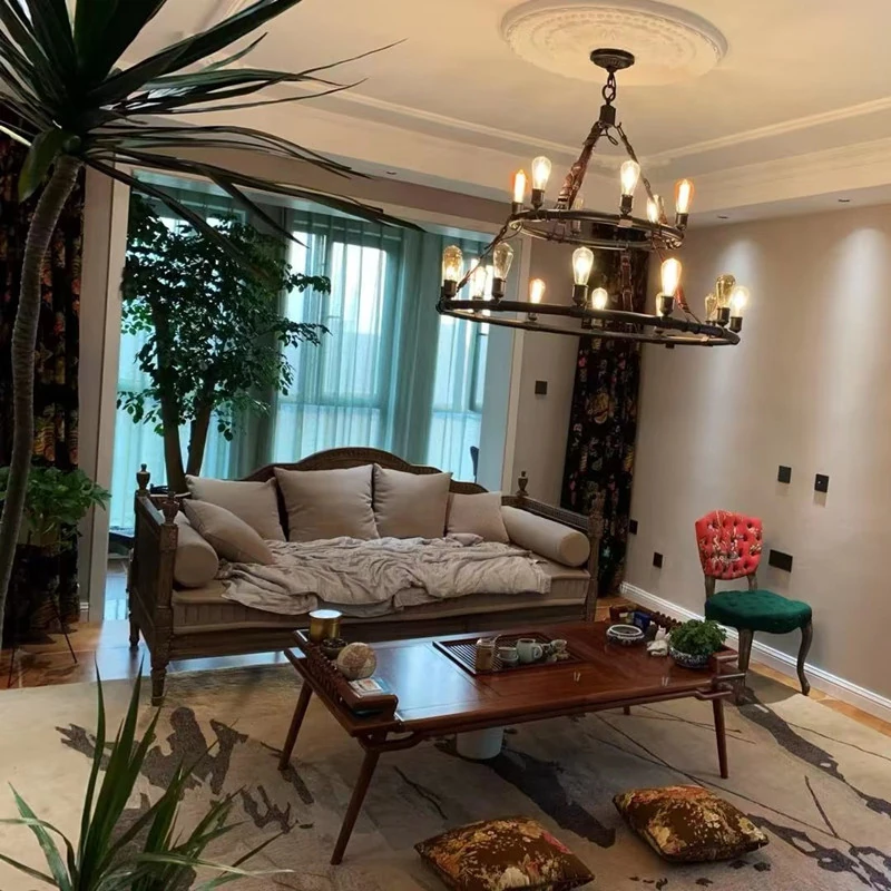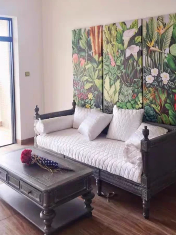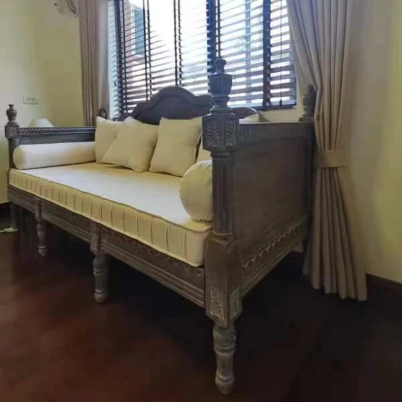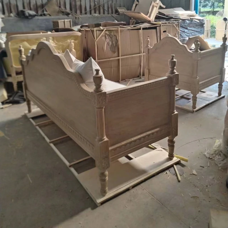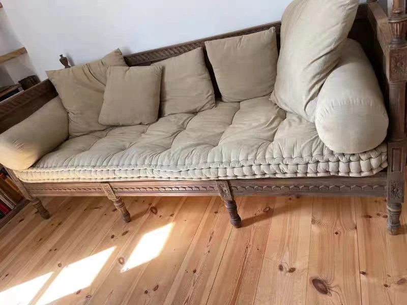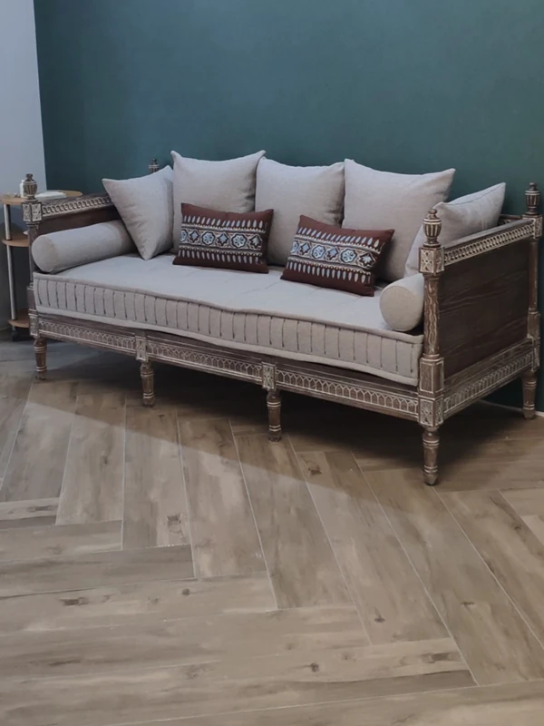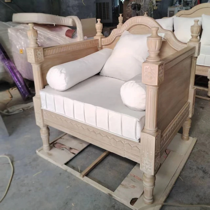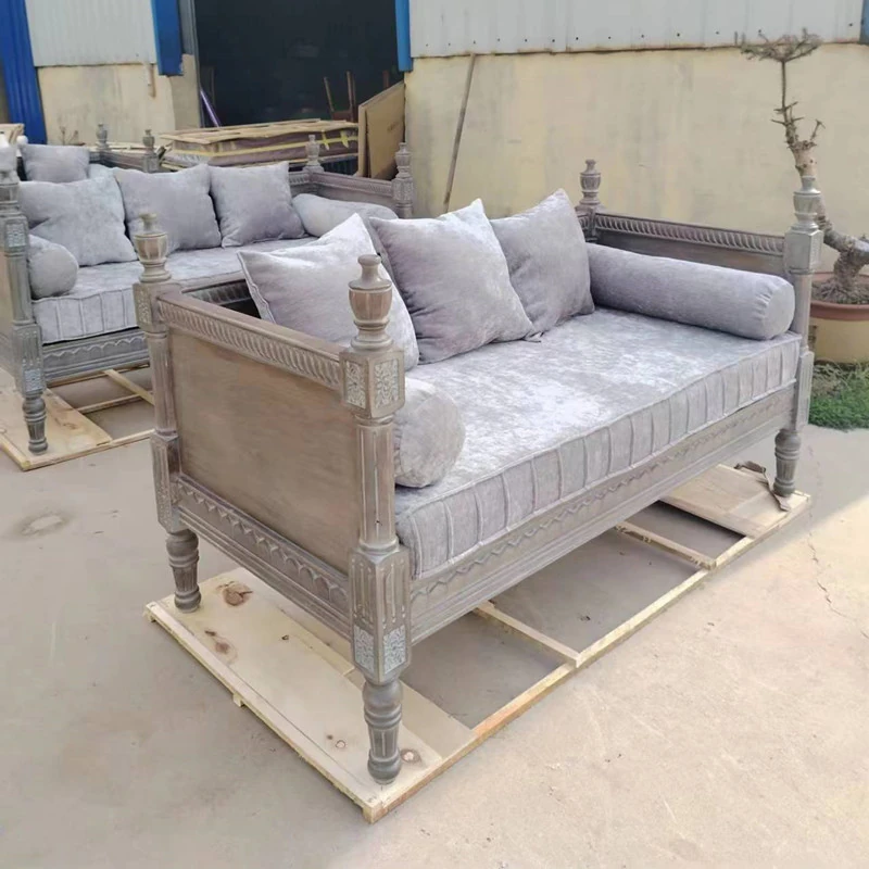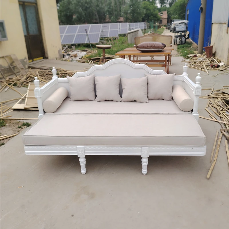 Elegant French Solid Wood Carved Sofa Set for Small Living Rooms - Vintage American Style Three-Seat Sofa Bed with Timeless Charm