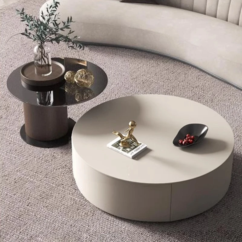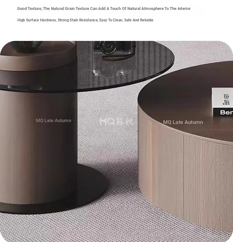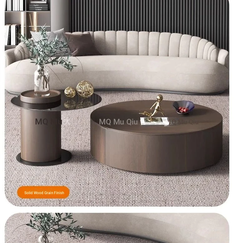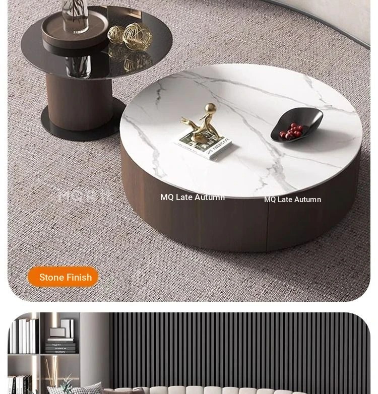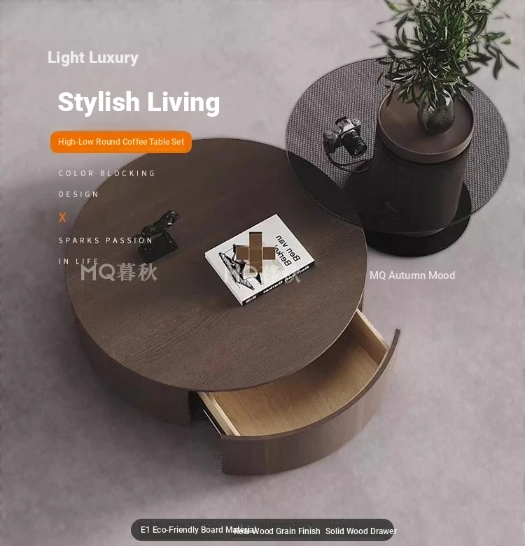 Elegant Italian Round Solid Wood Coffee Table Set for Small Living Rooms - Modern Minimalist Design with Stylish Rock Panel, Perfect for Chic Home Décor
