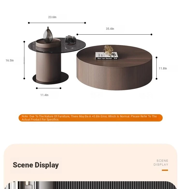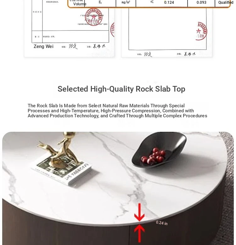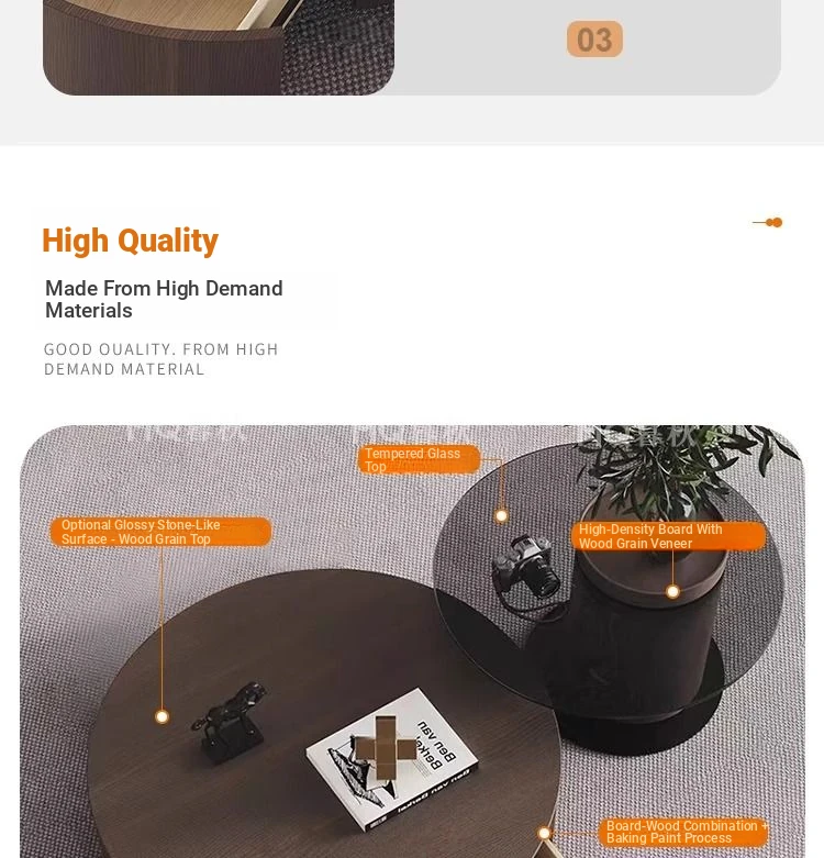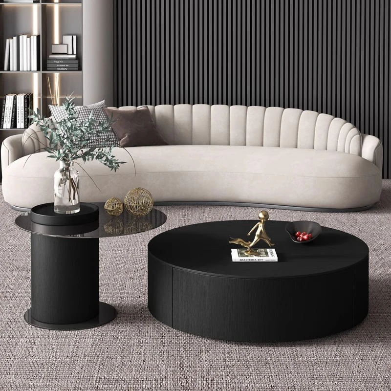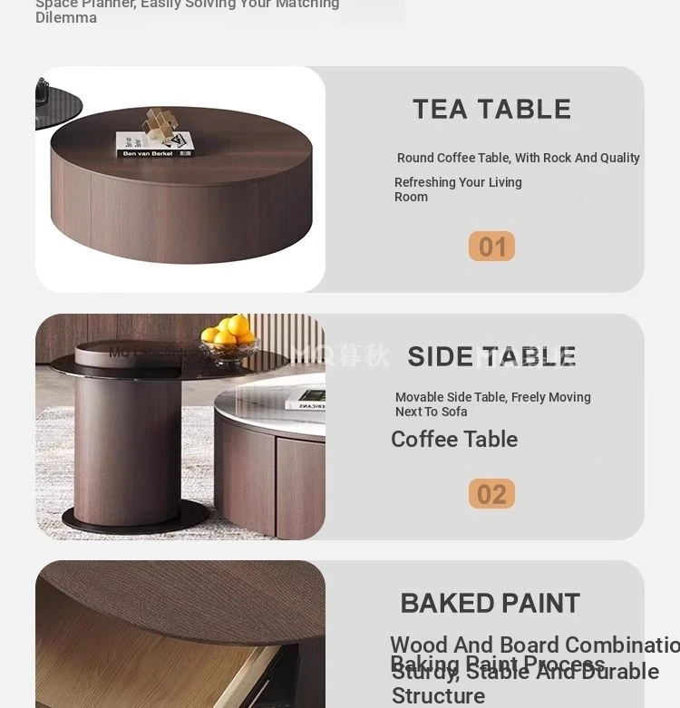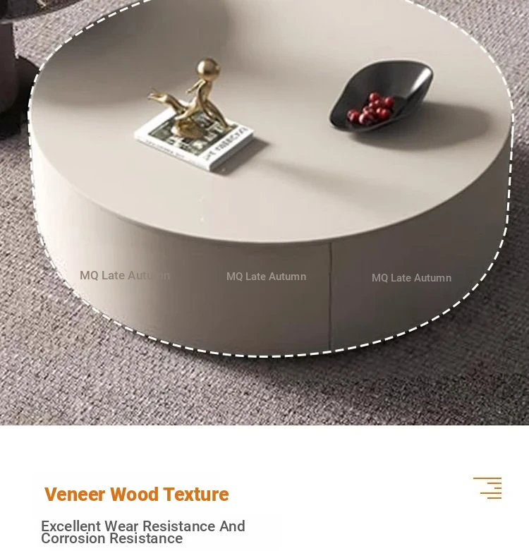 Elegant Italian Round Solid Wood Coffee Table Set for Small Living Rooms - Modern Minimalist Design with Stylish Rock Panel, Perfect for Chic Home Décor