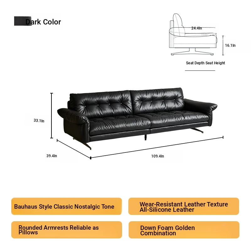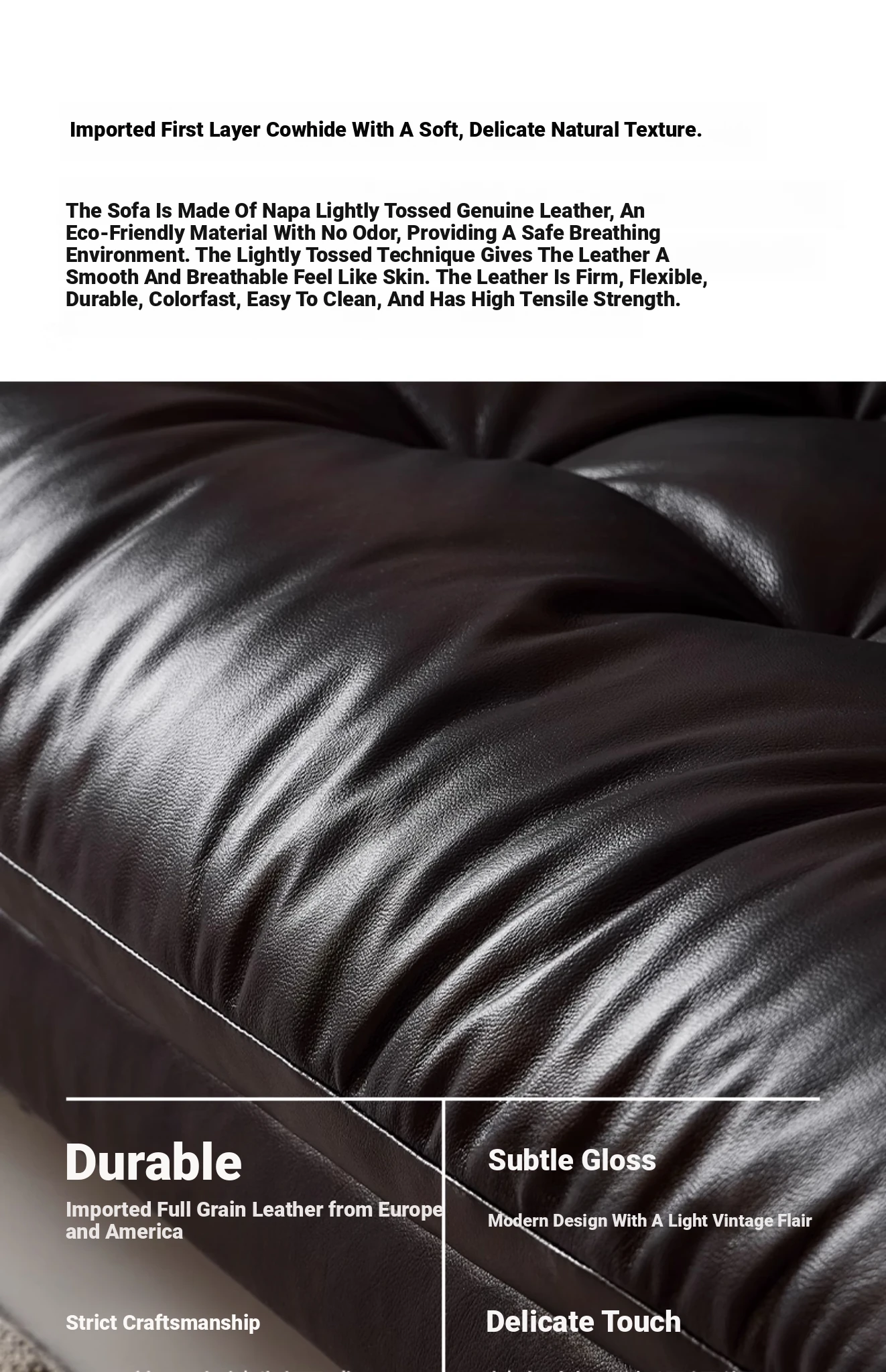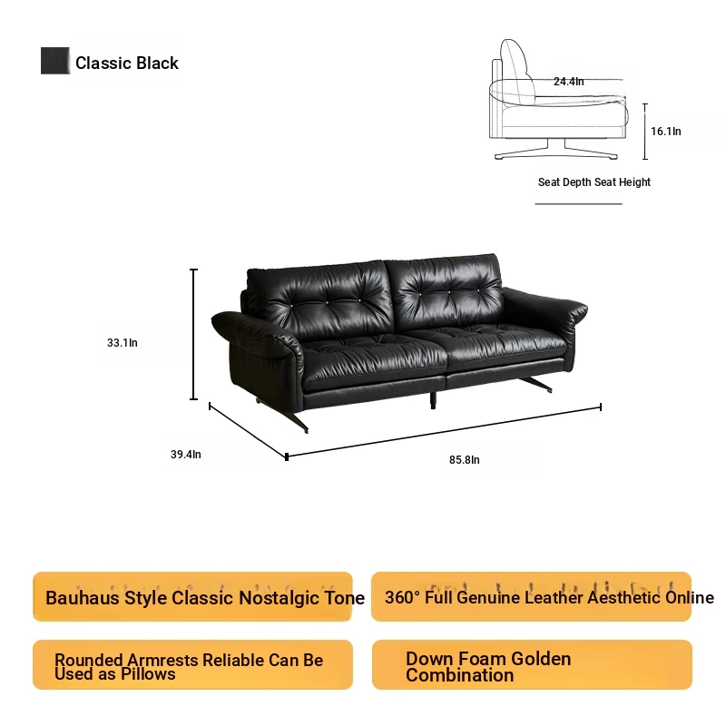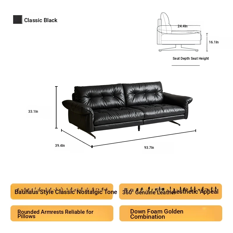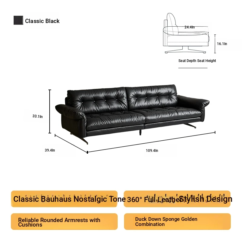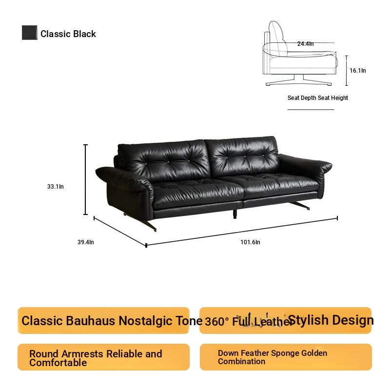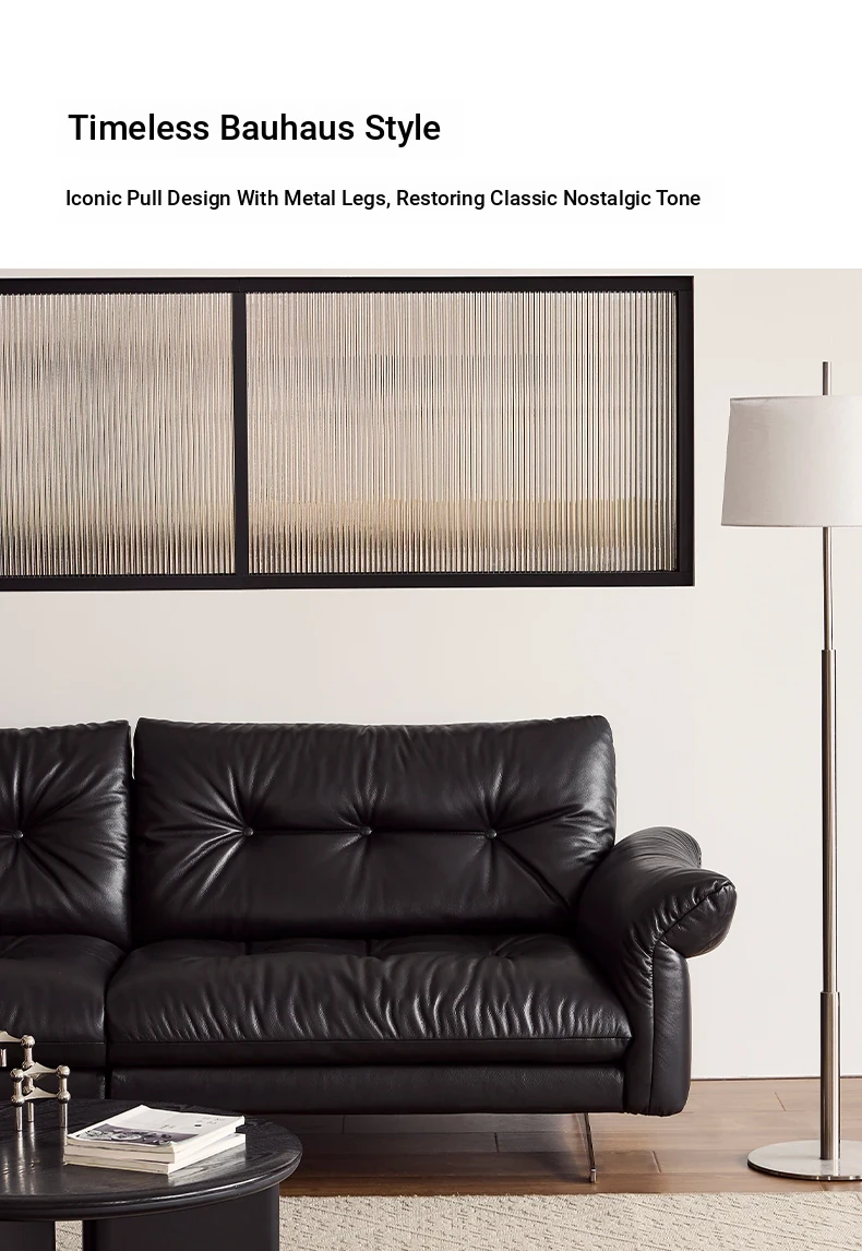 Grado | Elegant Bauhaus Leather Sofa - Premium Top-Grade Cowhide Upholstery for Living Room, Vintage Style Mid-Century Straight Sofa