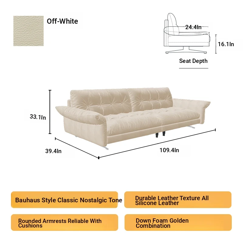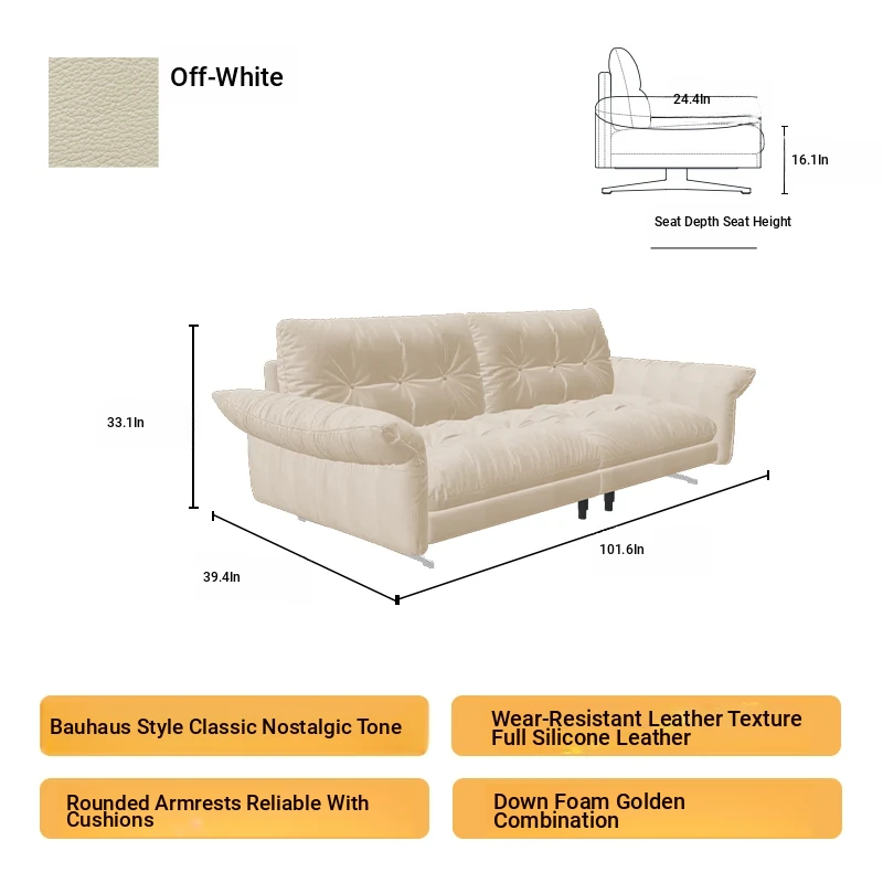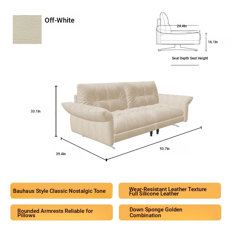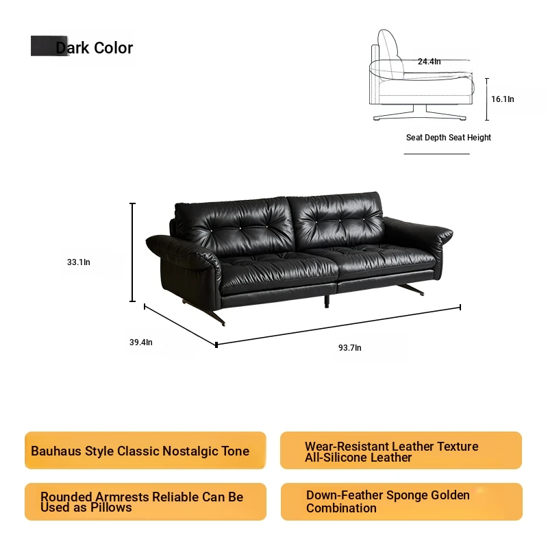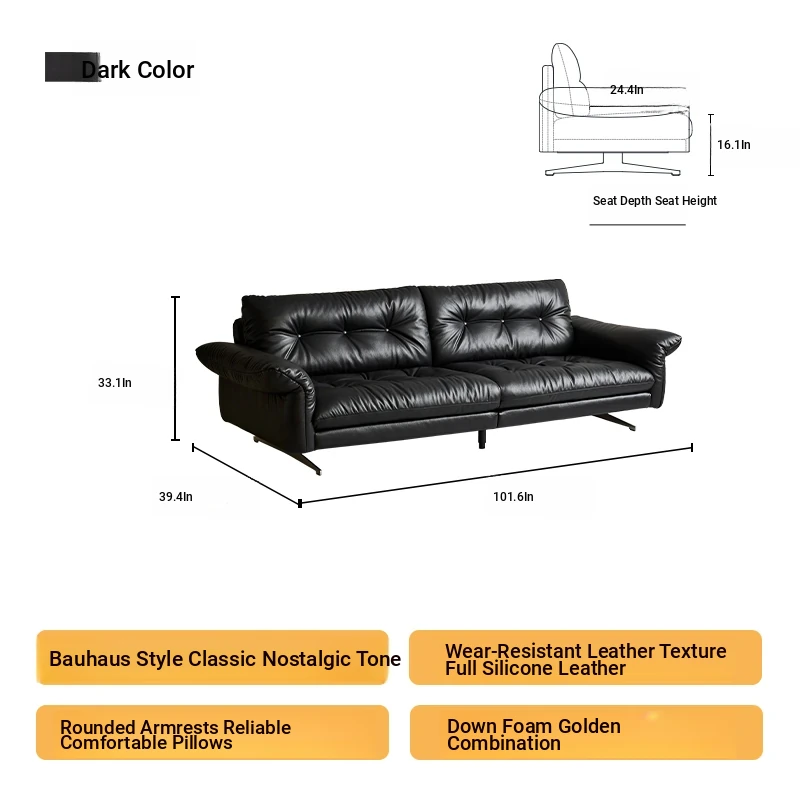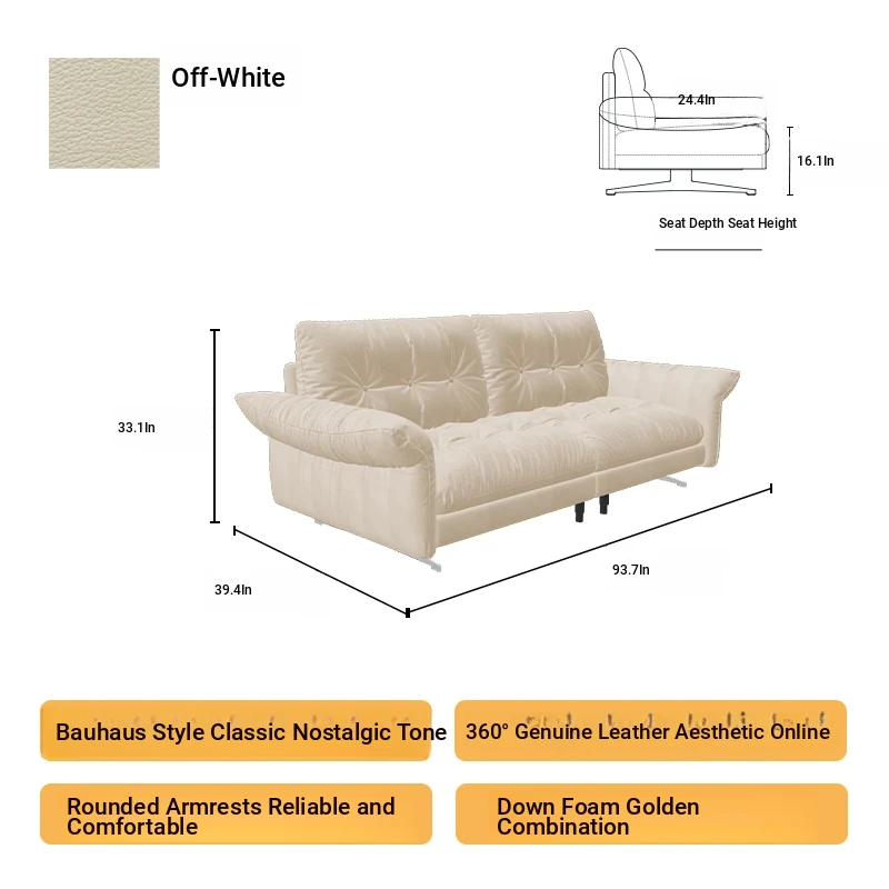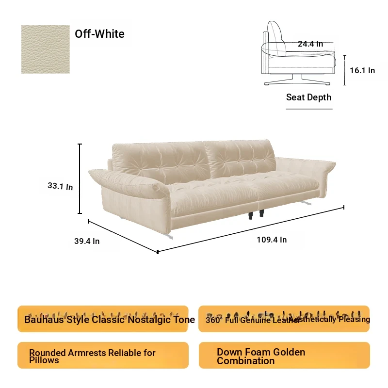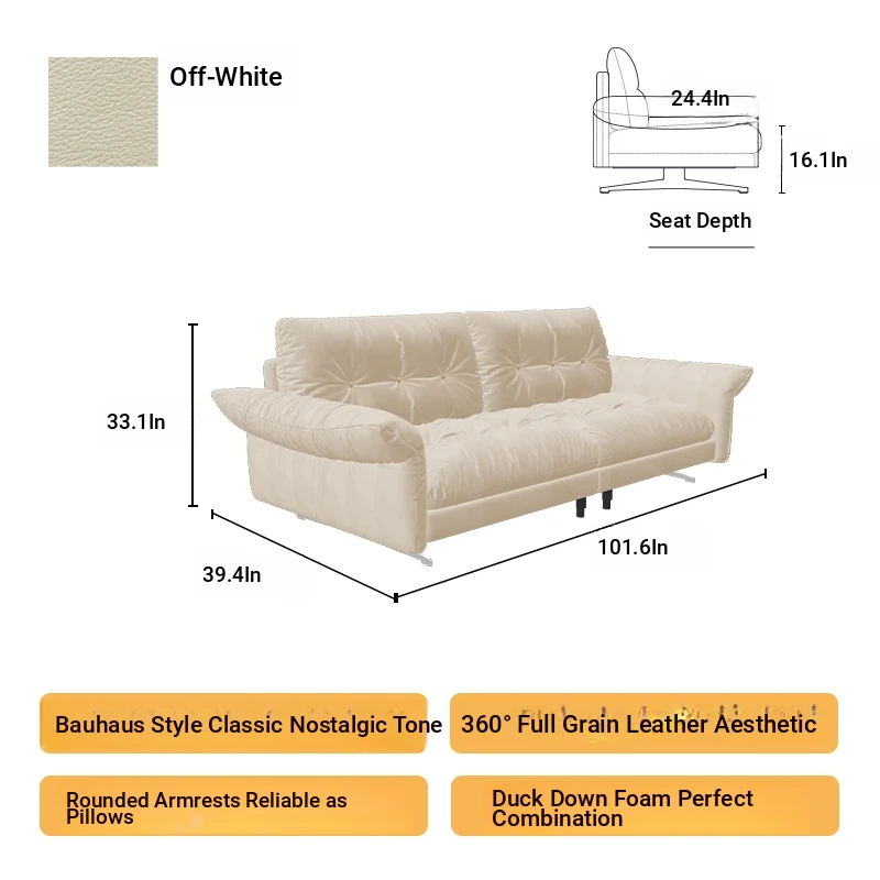 Grado | Elegant Bauhaus Leather Sofa - Premium Top-Grade Cowhide Upholstery for Living Room, Vintage Style Mid-Century Straight Sofa
