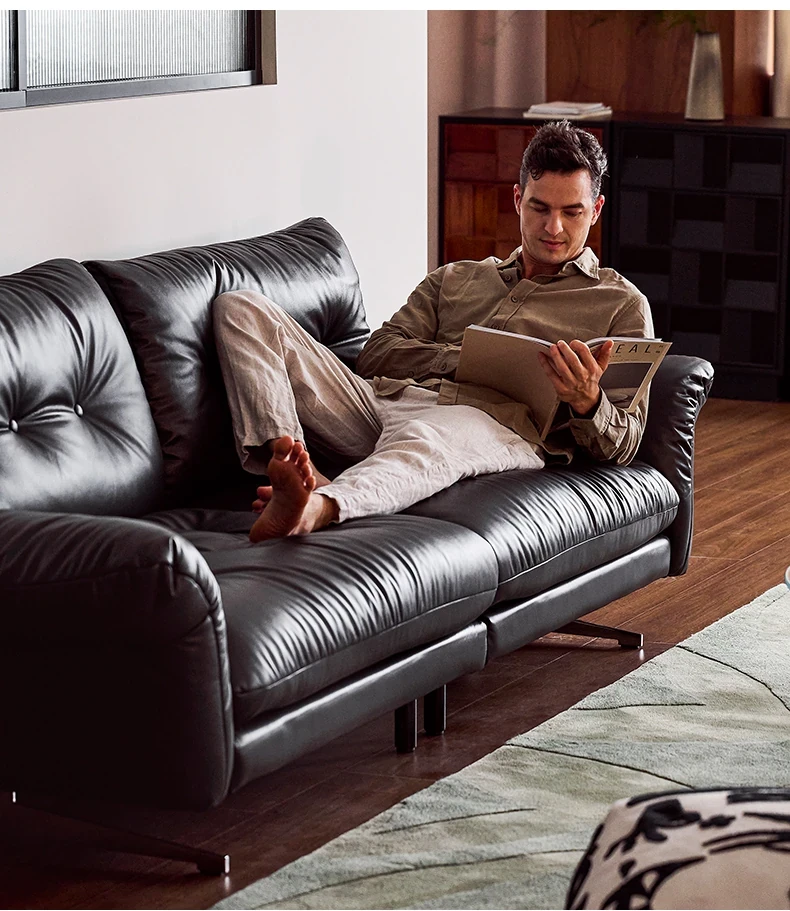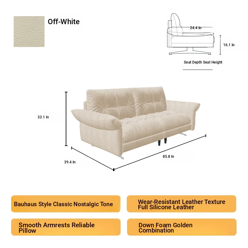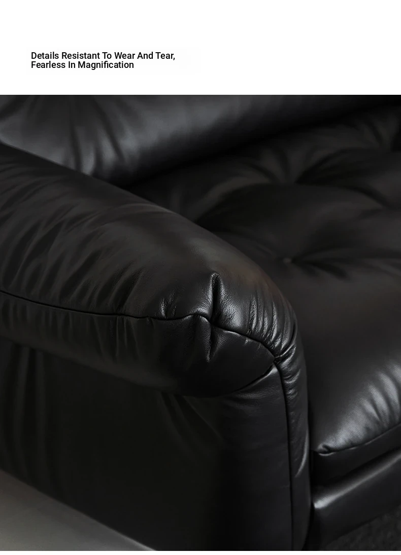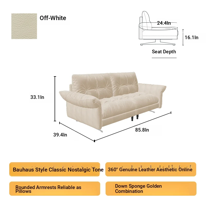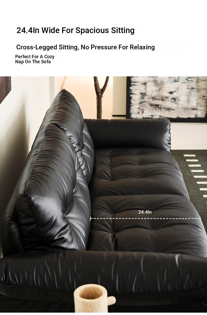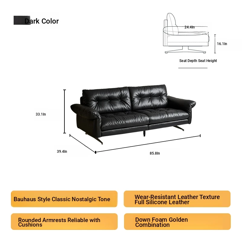 Grado | Elegant Bauhaus Leather Sofa - Premium Top-Grade Cowhide Upholstery for Living Room, Vintage Style Mid-Century Straight Sofa