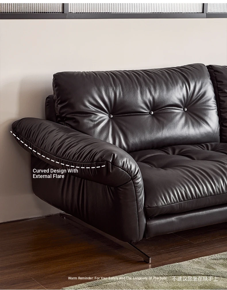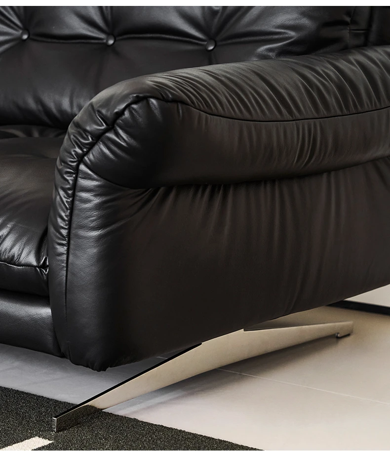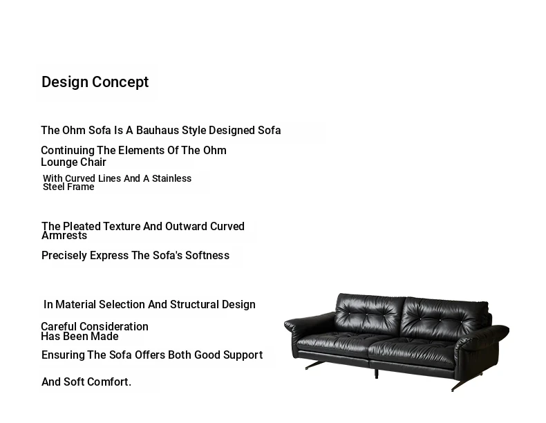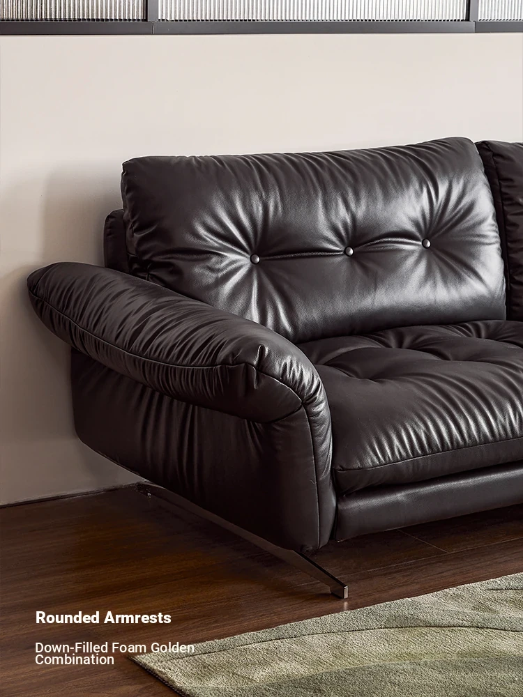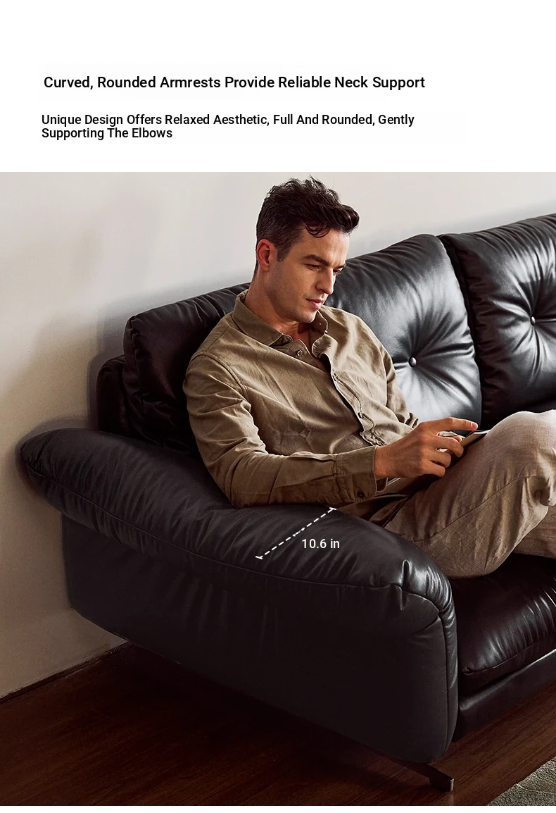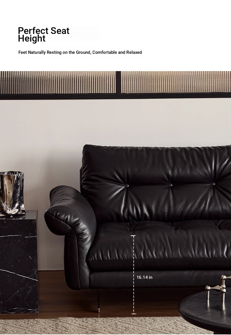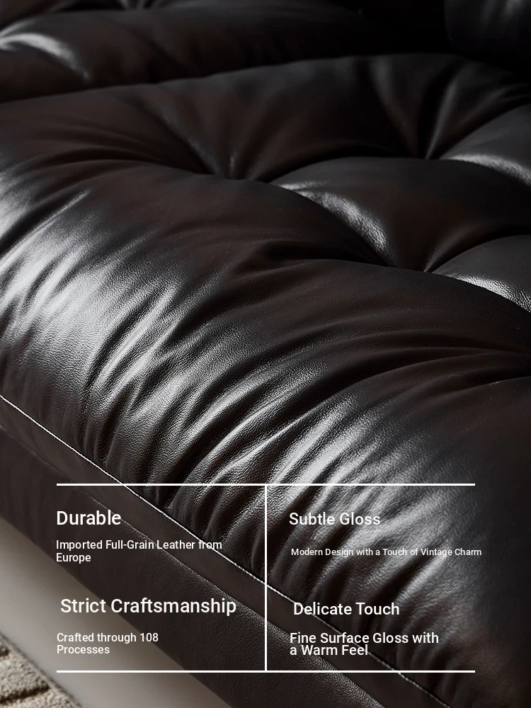 Grado | Elegant Bauhaus Leather Sofa - Premium Top-Grade Cowhide Upholstery for Living Room, Vintage Style Mid-Century Straight Sofa