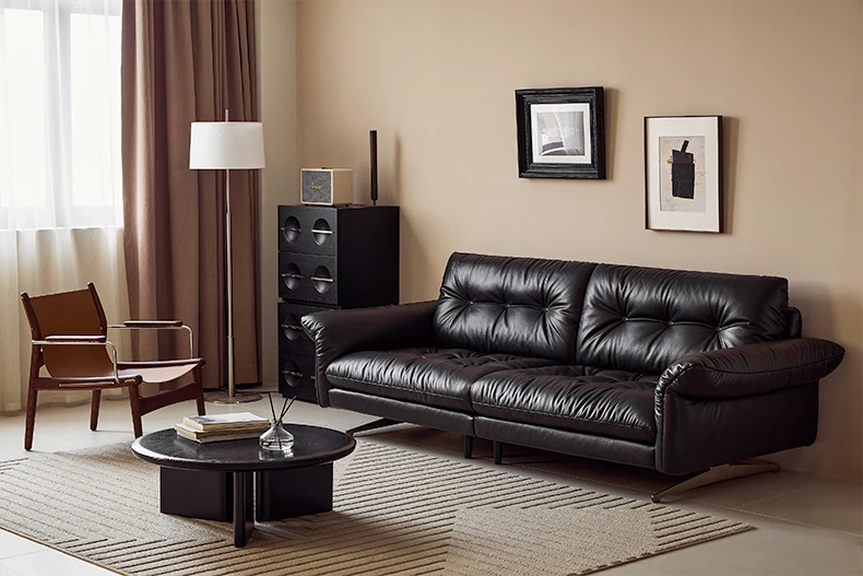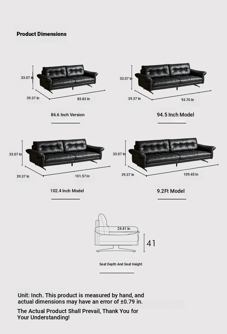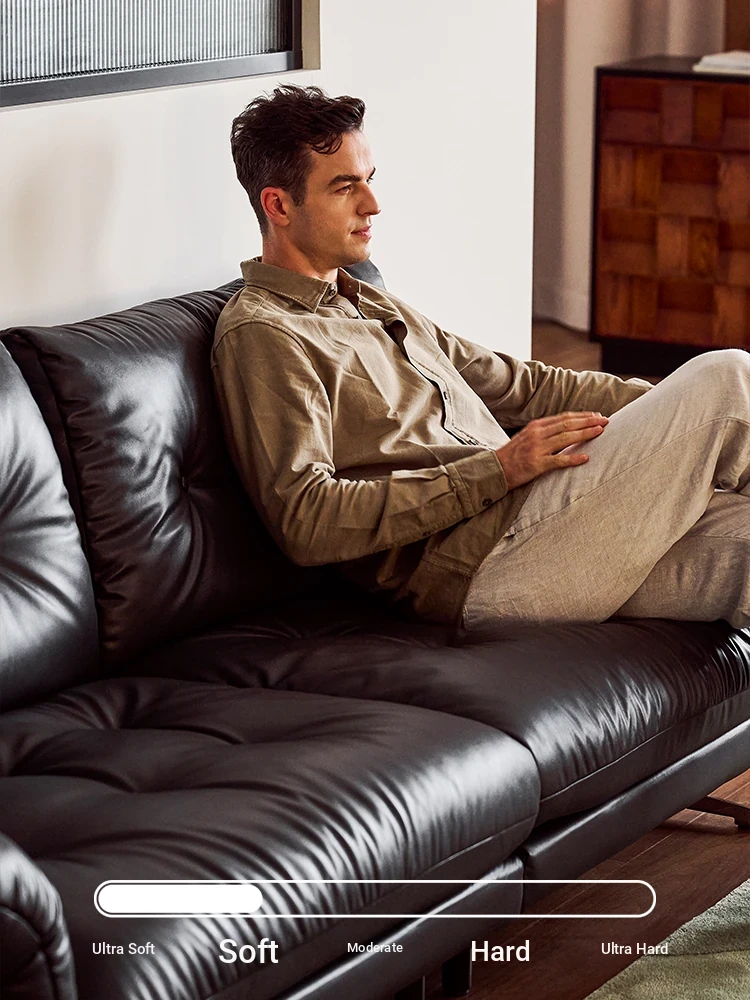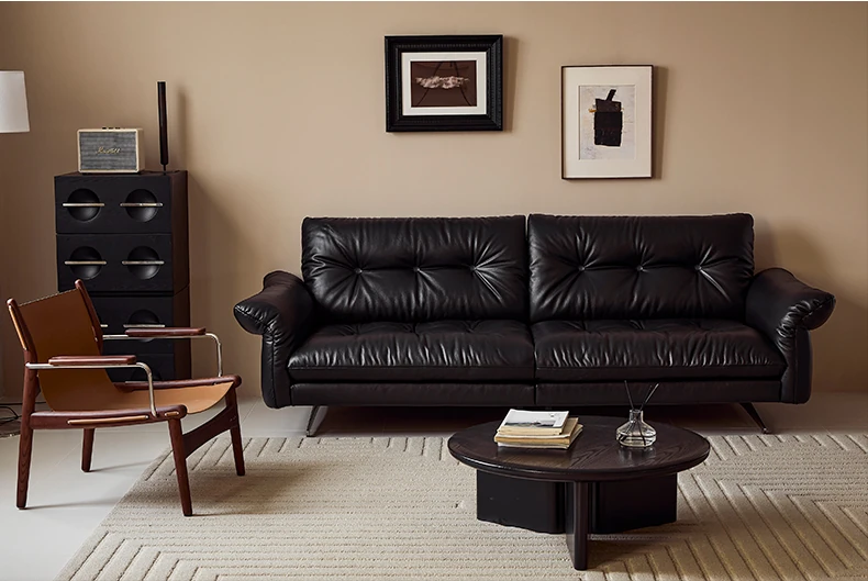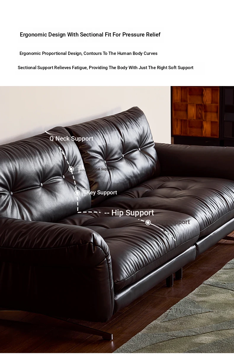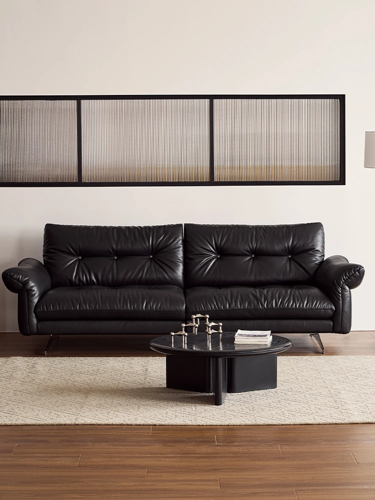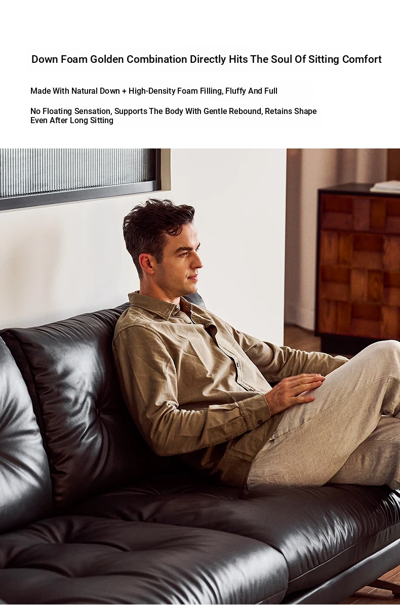 Grado | Elegant Bauhaus Leather Sofa - Premium Top-Grade Cowhide Upholstery for Living Room, Vintage Style Mid-Century Straight Sofa