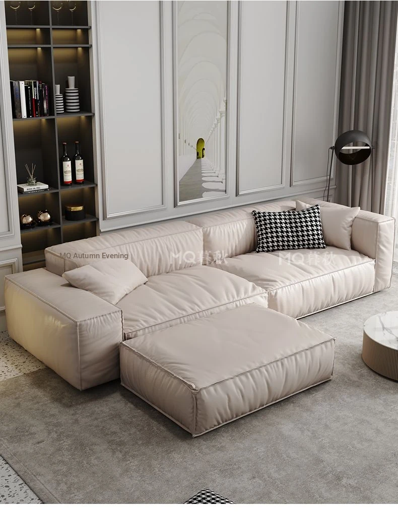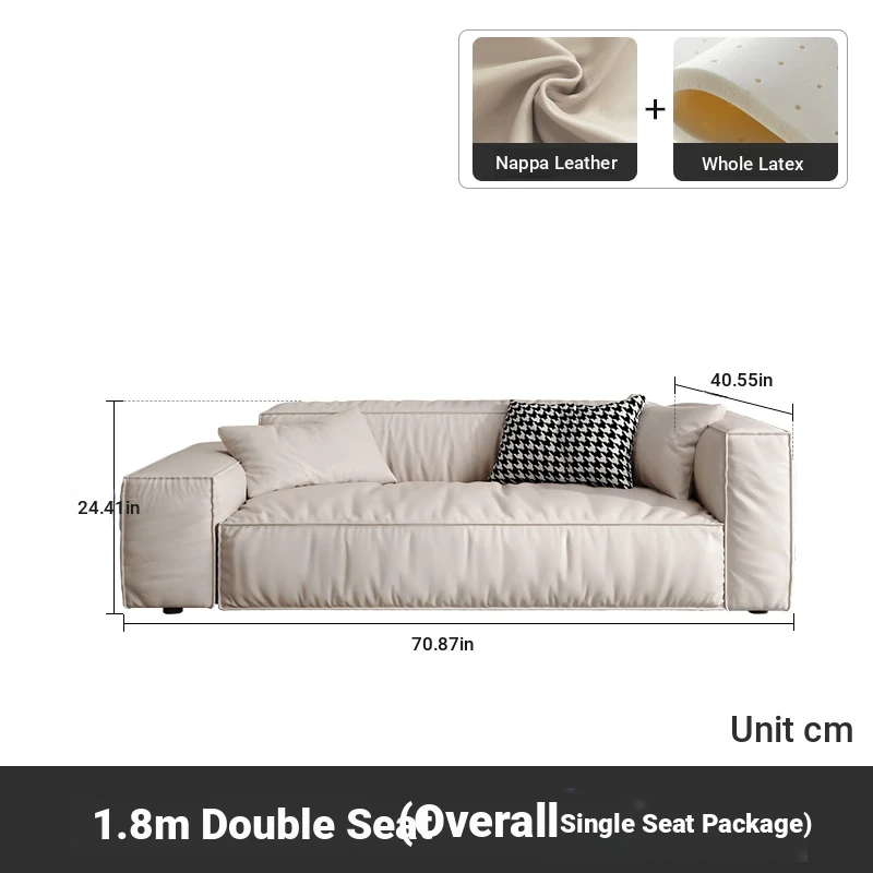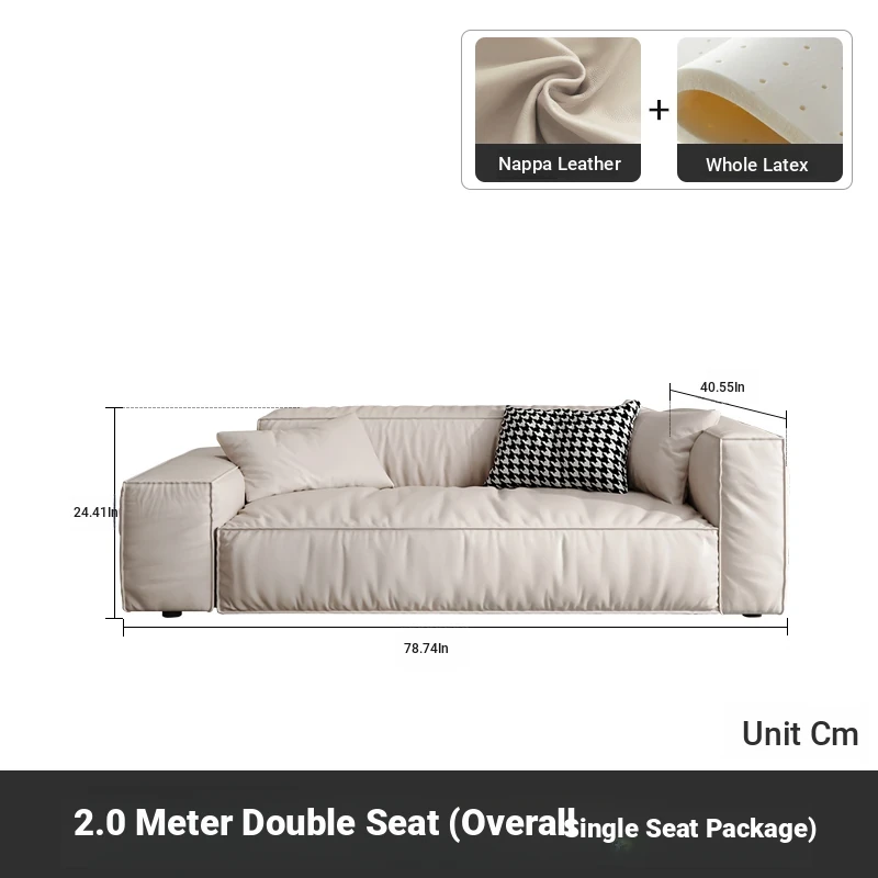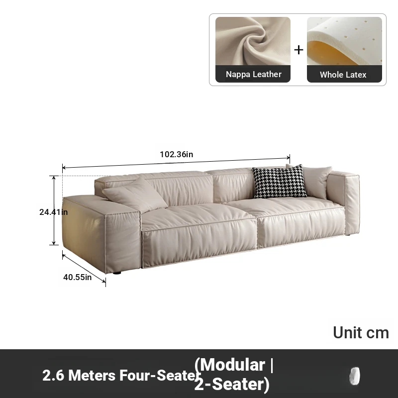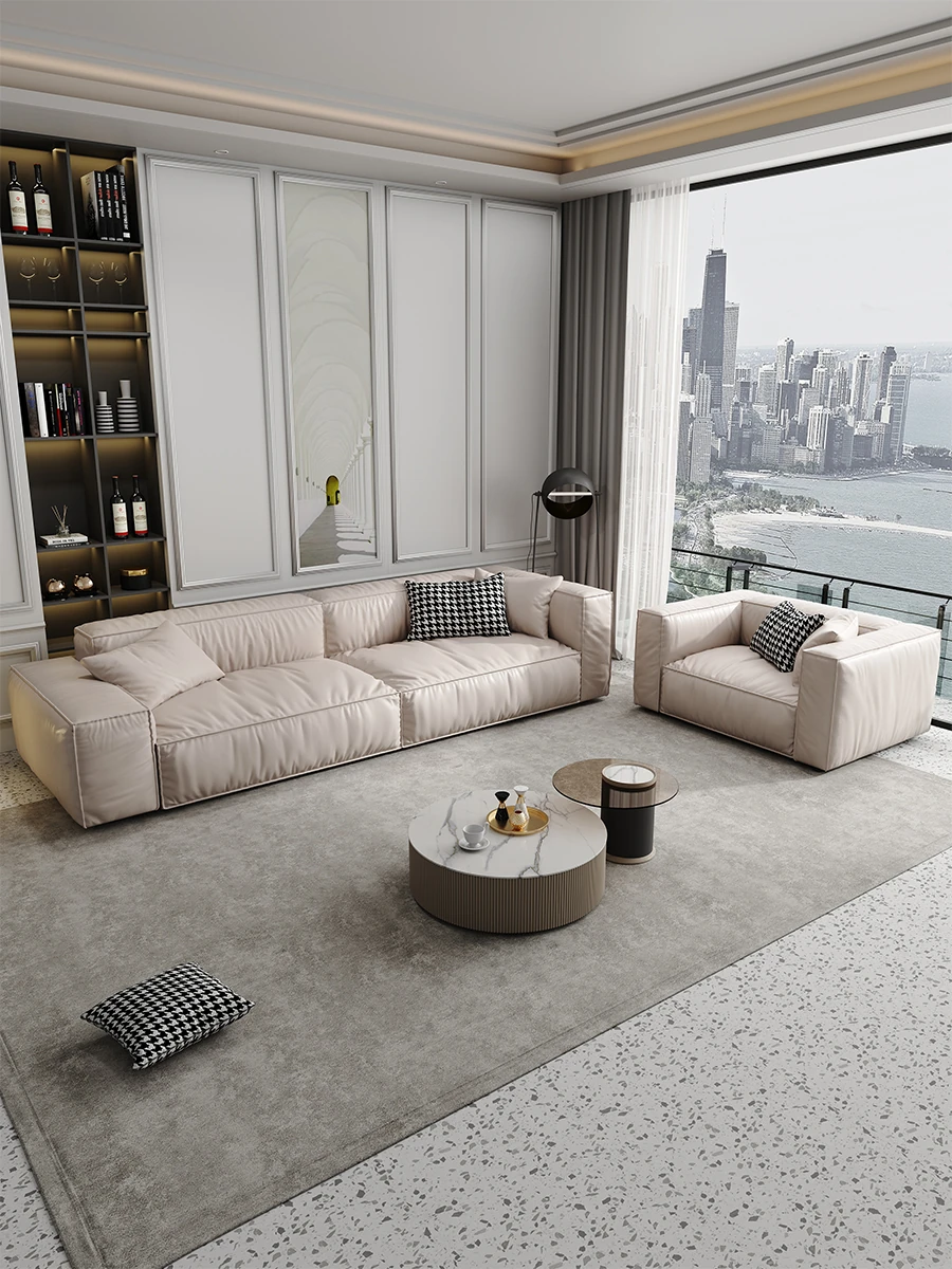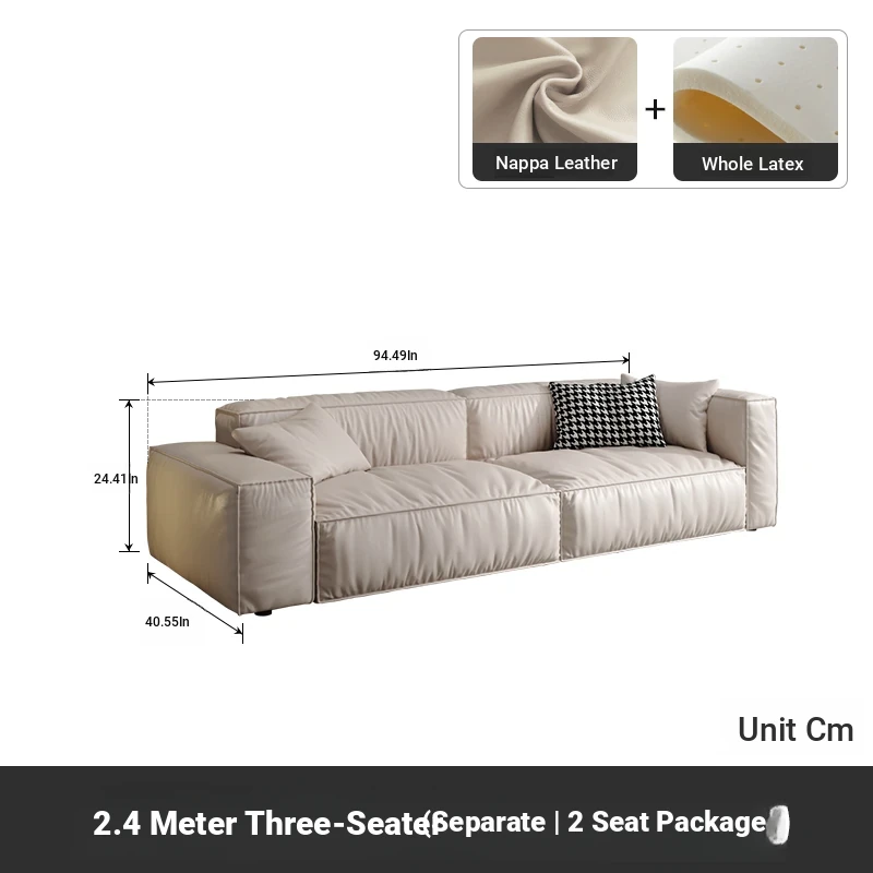 Italian Minimalist Genuine Leather Sofa for Small Spaces - Creamy Nordic Style 3-Seater with Tofu Block Design and Latex Cushions, Perfect for Modern Living Rooms
