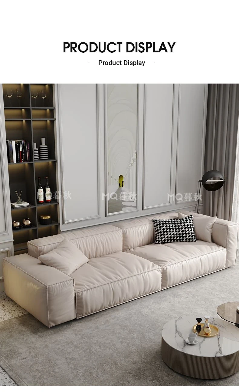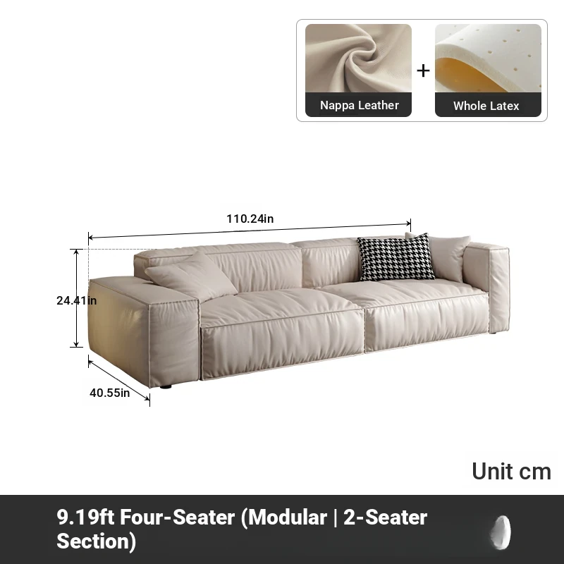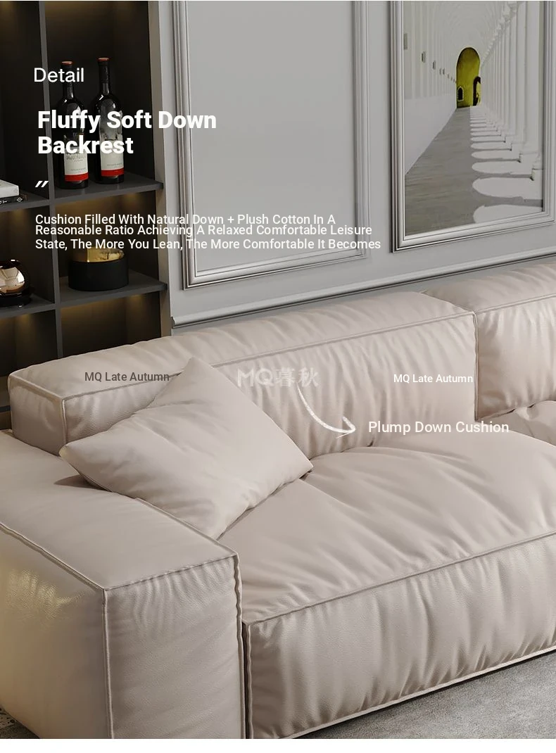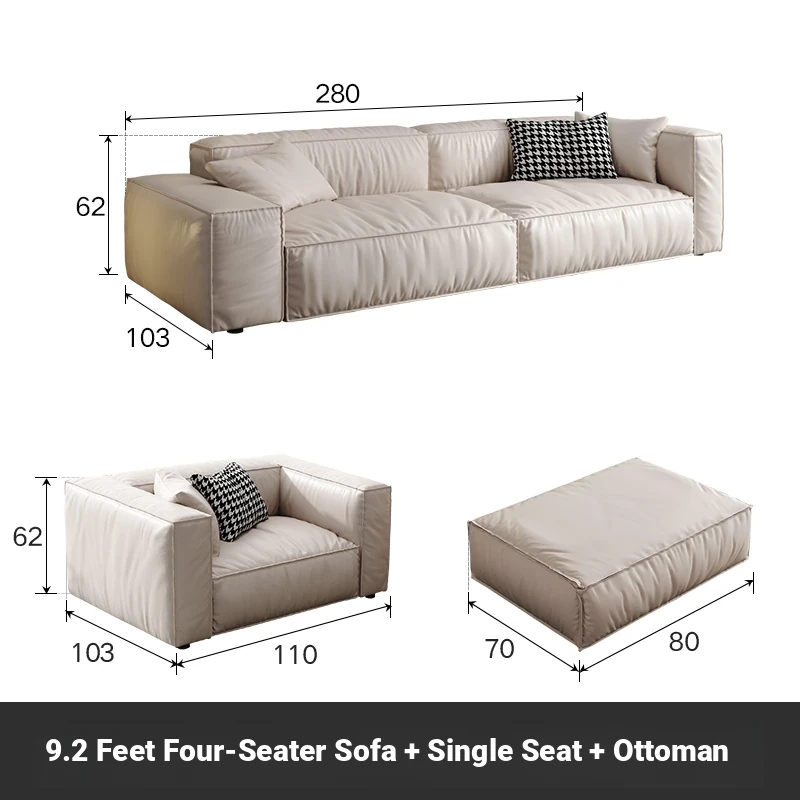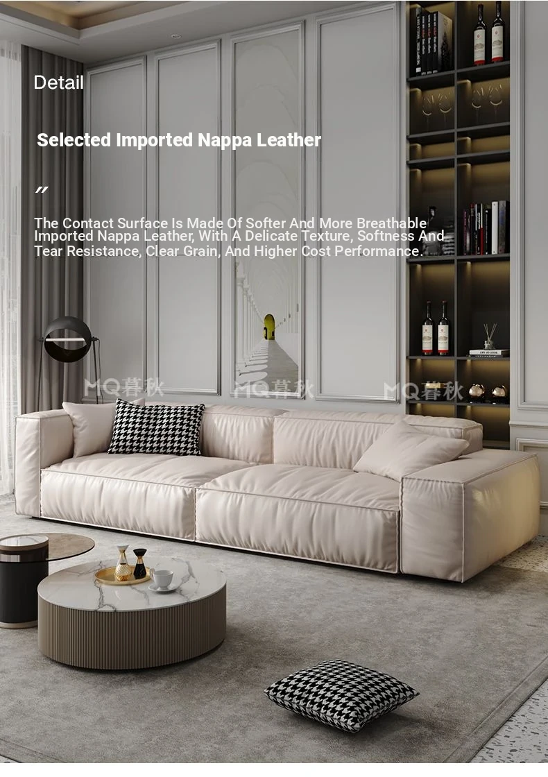 Italian Minimalist Genuine Leather Sofa for Small Spaces - Creamy Nordic Style 3-Seater with Tofu Block Design and Latex Cushions, Perfect for Modern Living Rooms