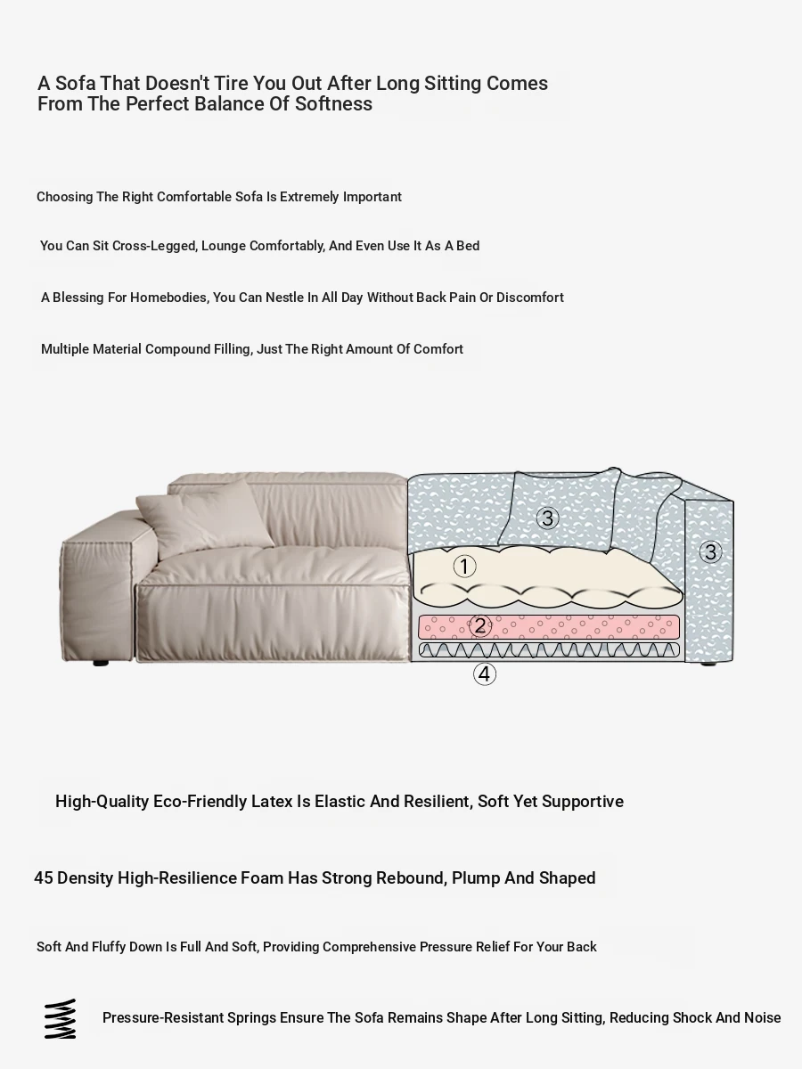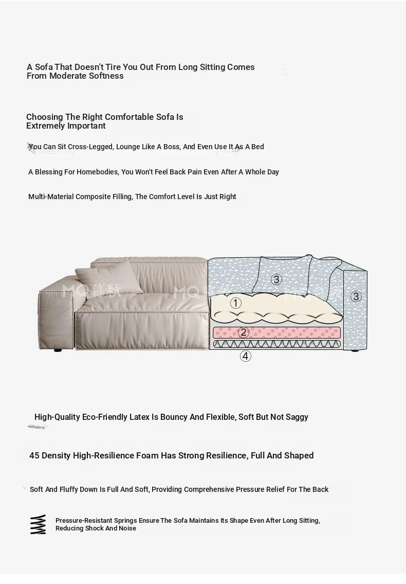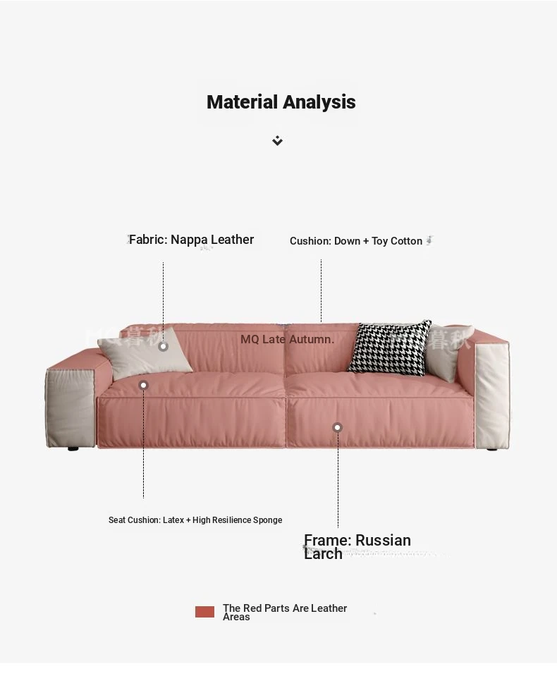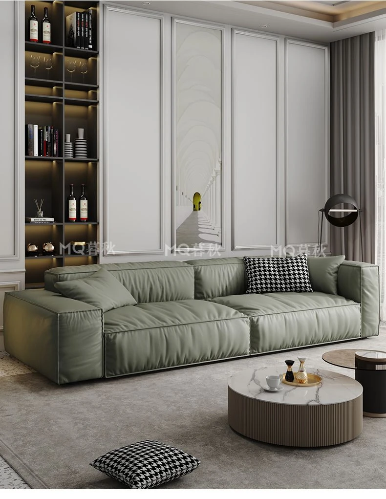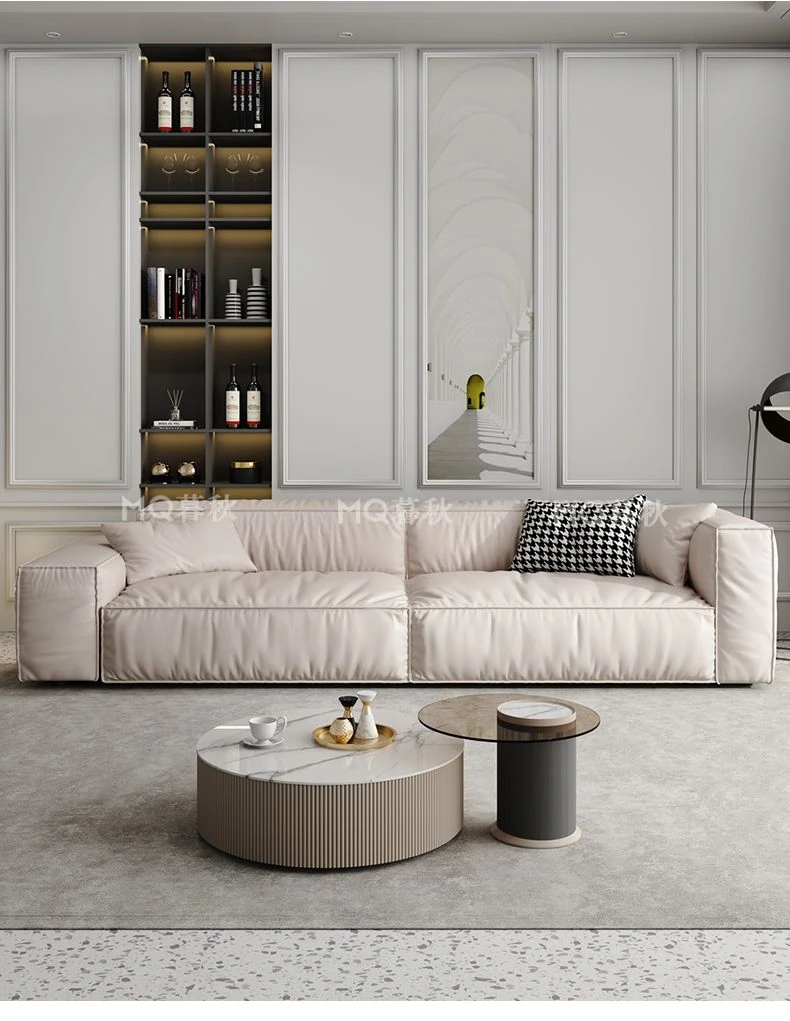 Italian Minimalist Genuine Leather Sofa for Small Spaces - Creamy Nordic Style 3-Seater with Tofu Block Design and Latex Cushions, Perfect for Modern Living Rooms