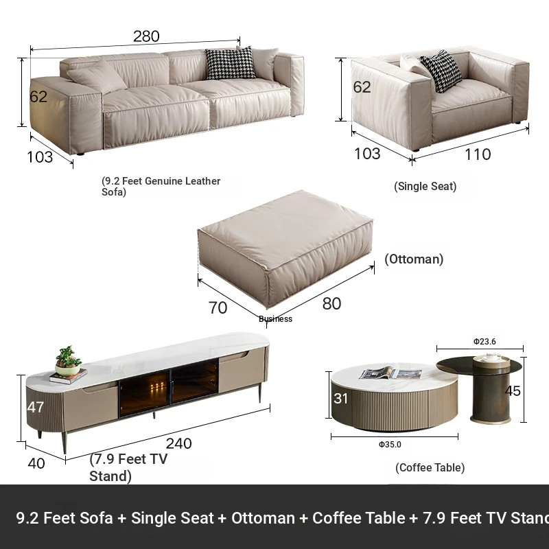 110.24 in sofa 4+1 + Step + tea table +78.74 in TV cabinet