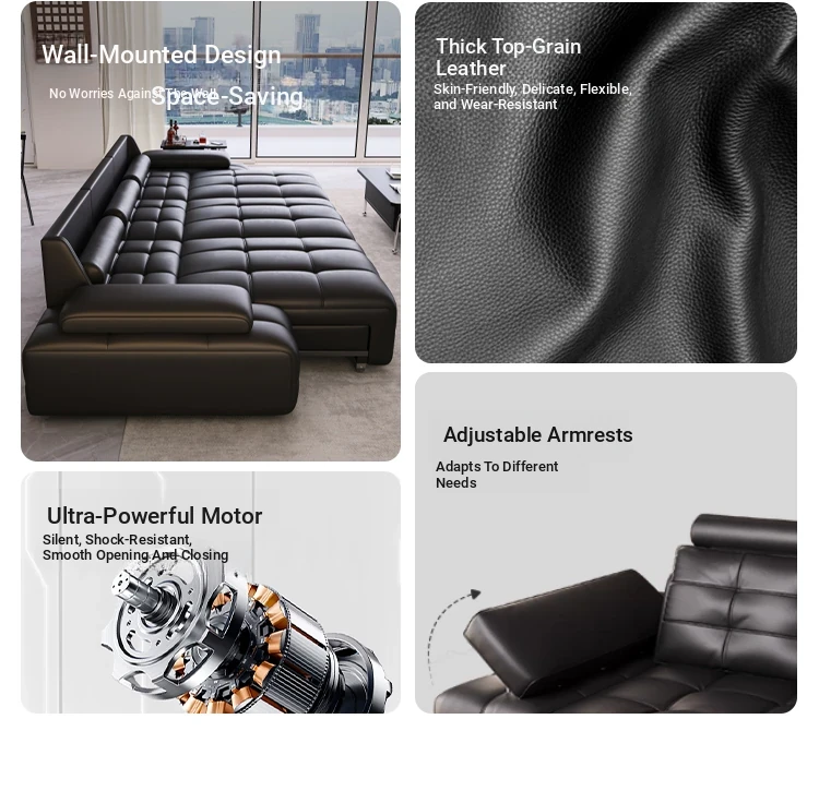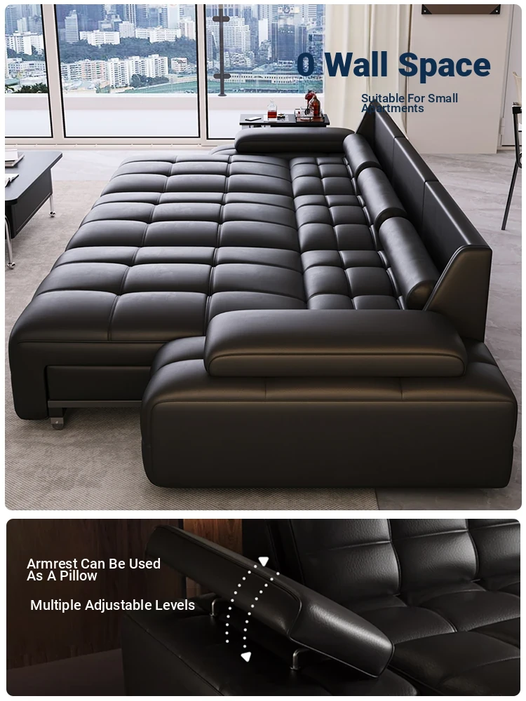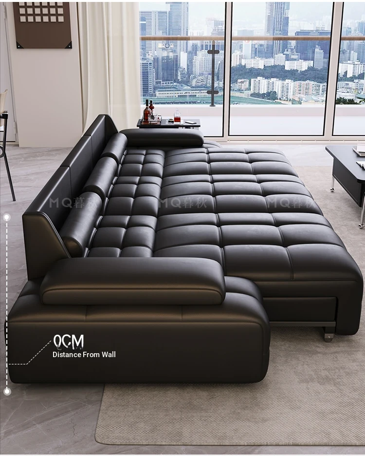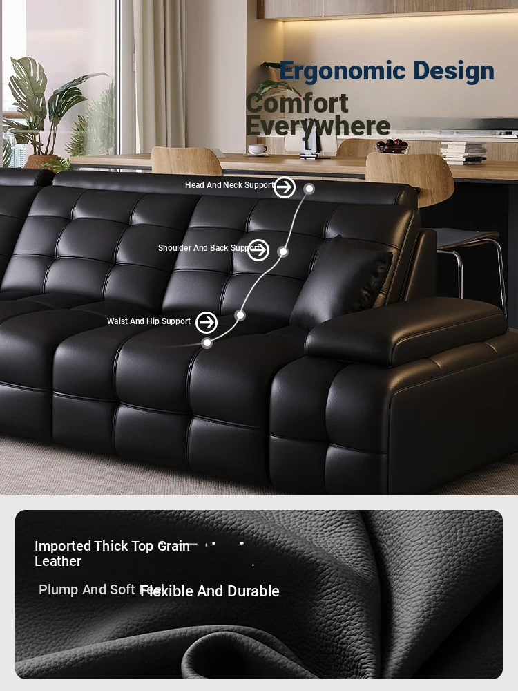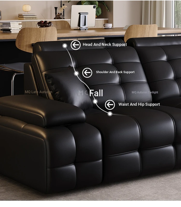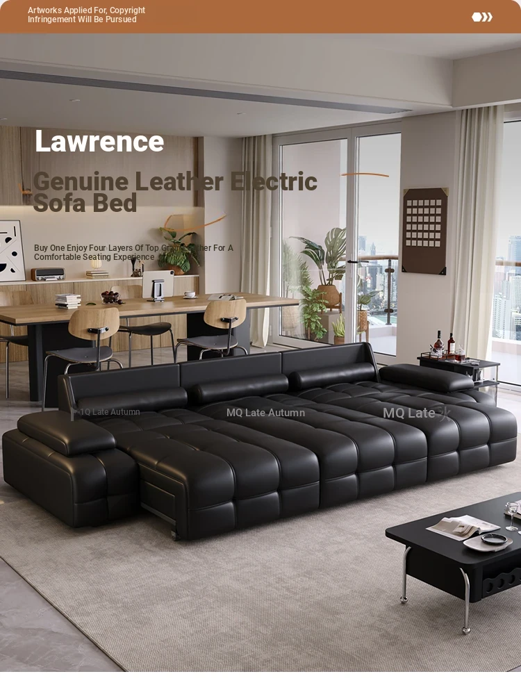 Lawrence Adjustable Leather Electric Sofa - Multi-Functional Chaise Lounge for Living Room, Reclines and Converts to Flat, Perfect for Wall Space