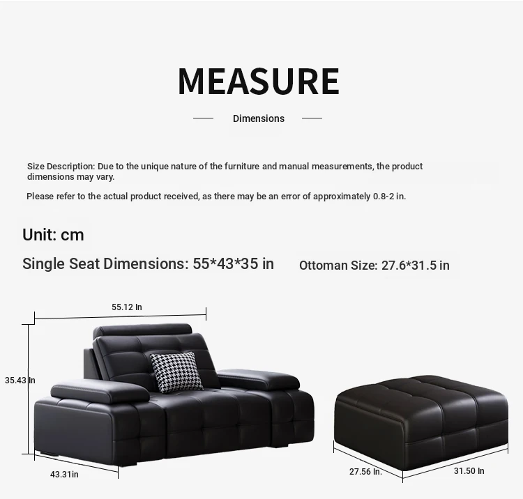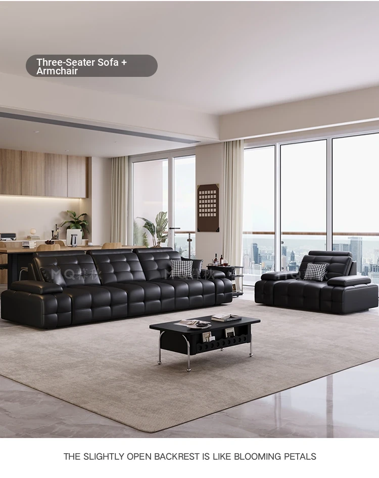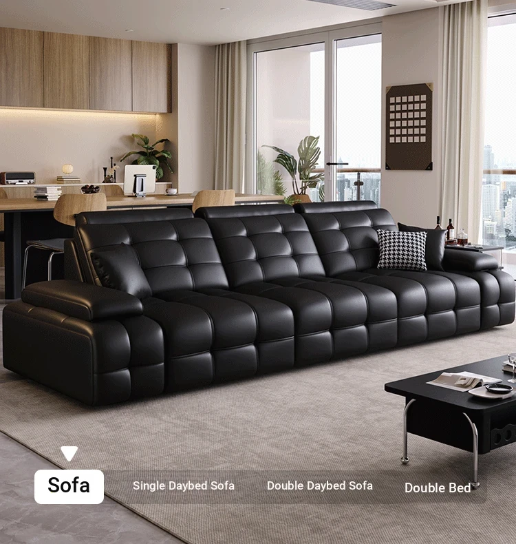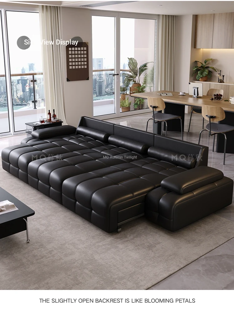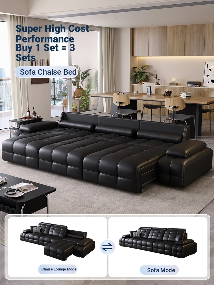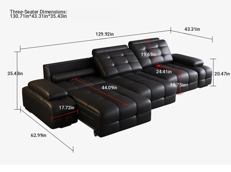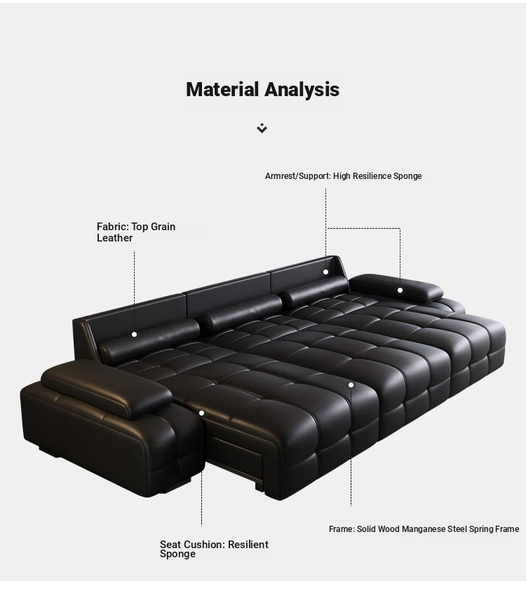 Lawrence Adjustable Leather Electric Sofa - Multi-Functional Chaise Lounge for Living Room, Reclines and Converts to Flat, Perfect for Wall Space