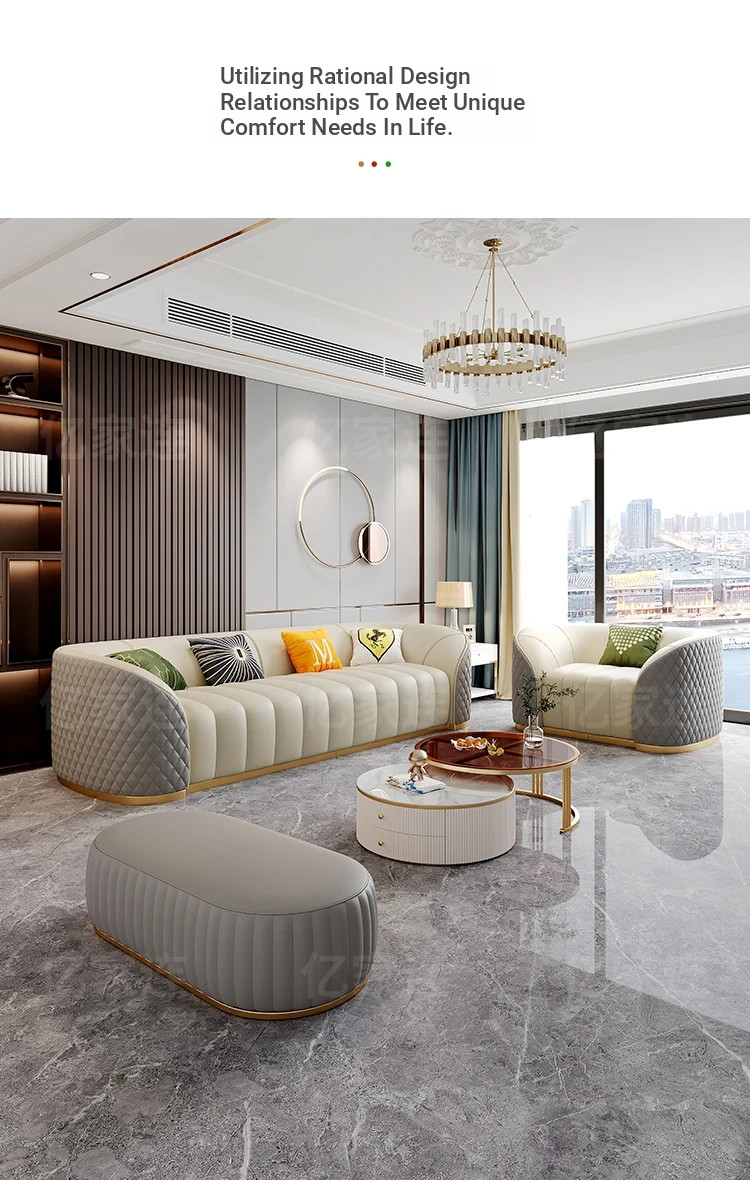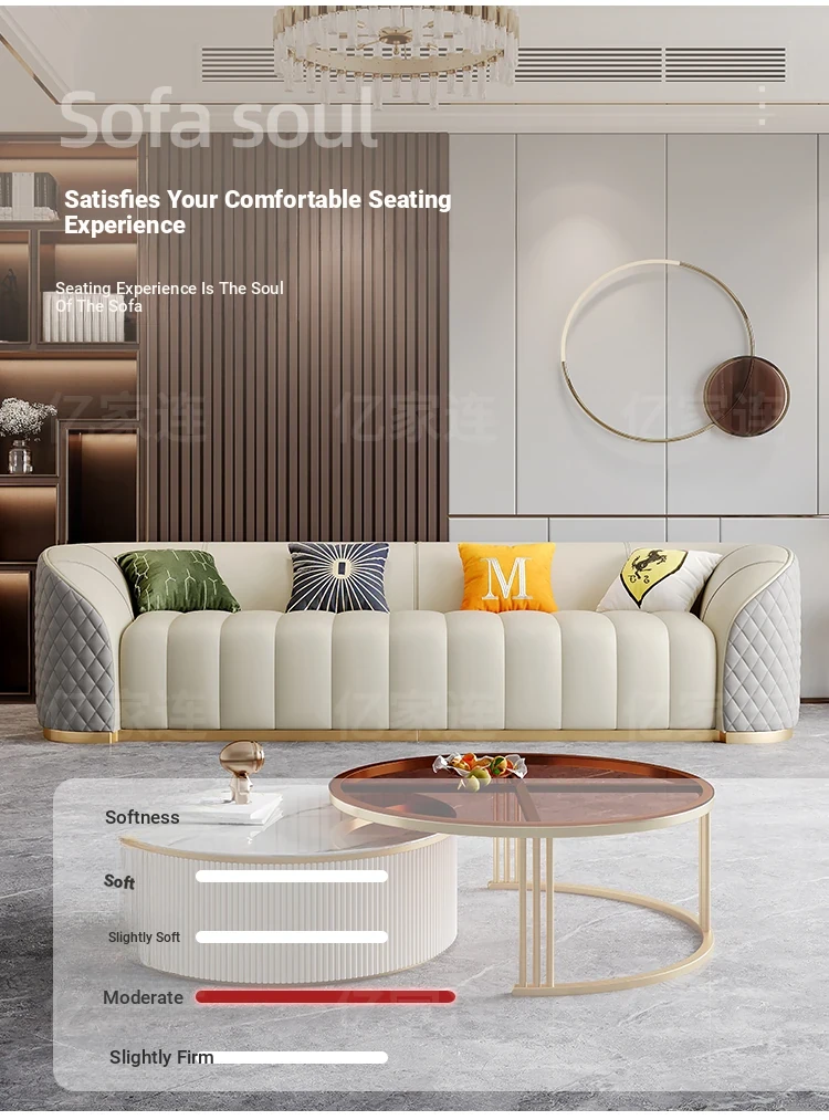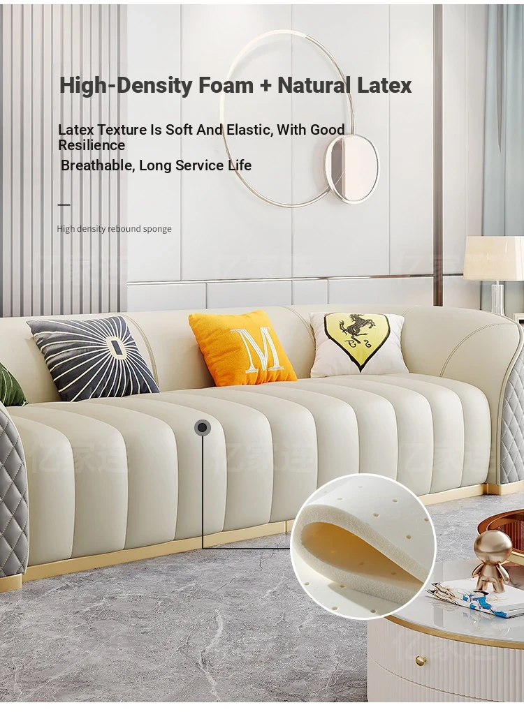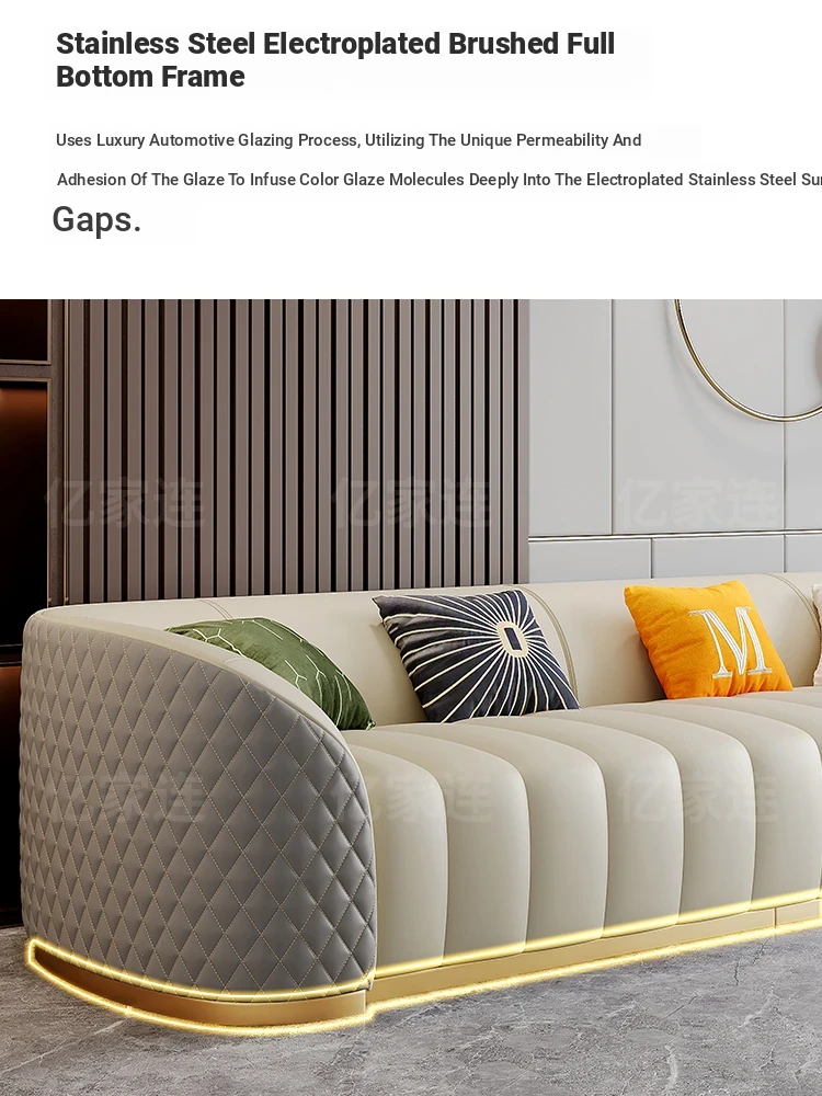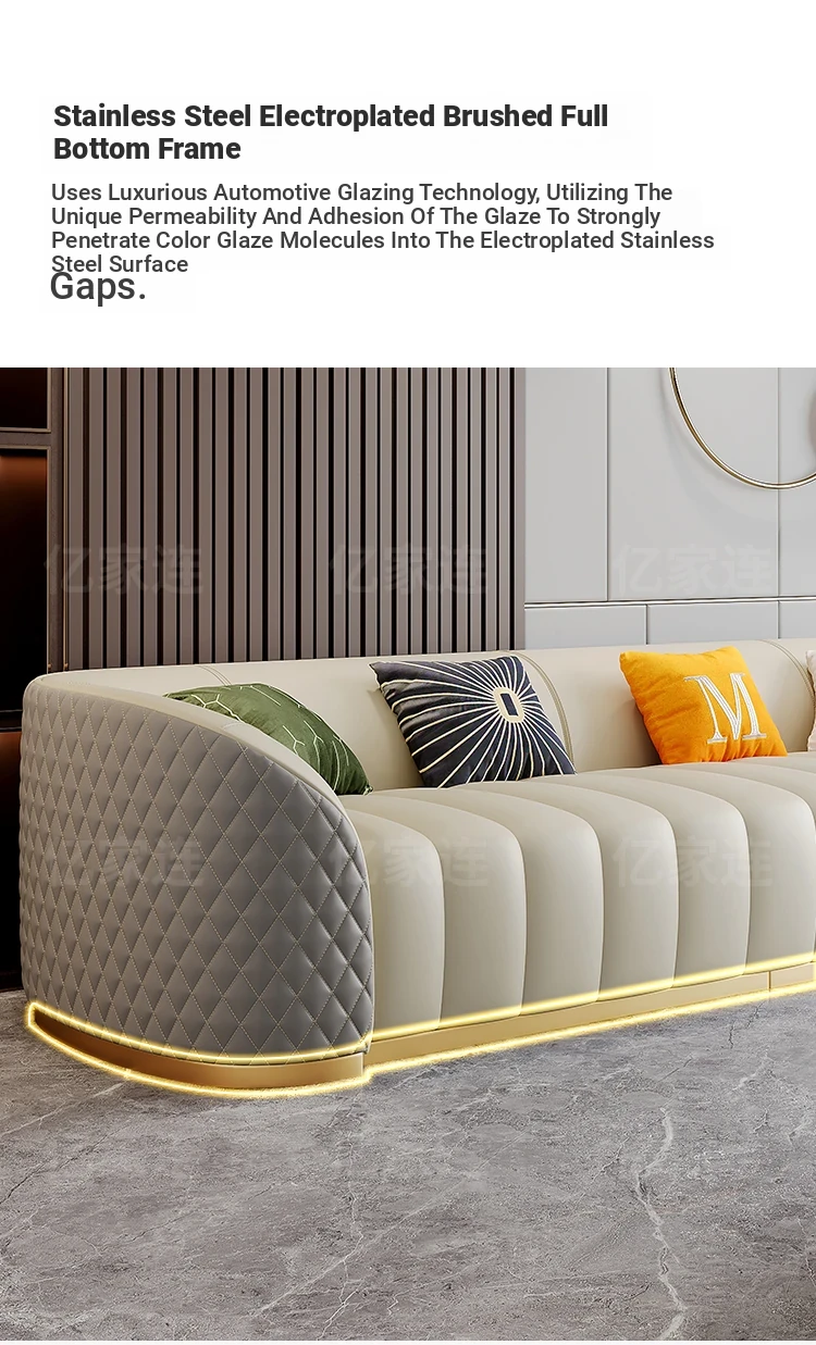 (86.61in for three persons) Import top layer cowhide + stainless steel electroplated brushed full bottom frame