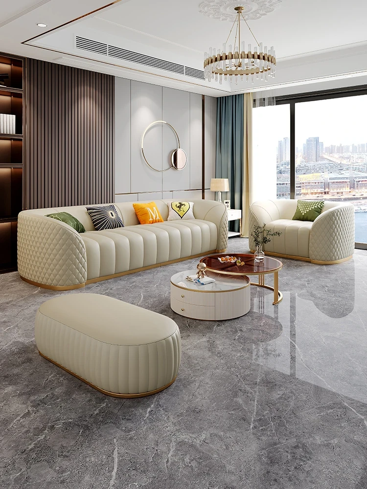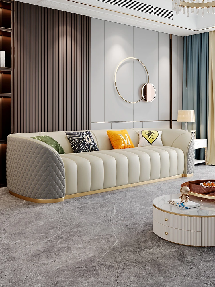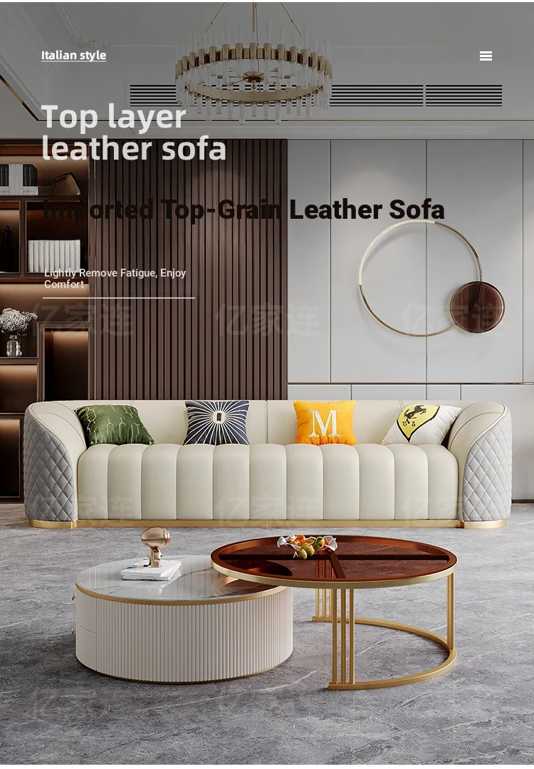 Luxury Genuine Leather Sofa for Living Room - Modern Italian Minimalist Design, Perfect for Small Spaces - 2025 New Arrival High-End Straight Leather Sofa Set