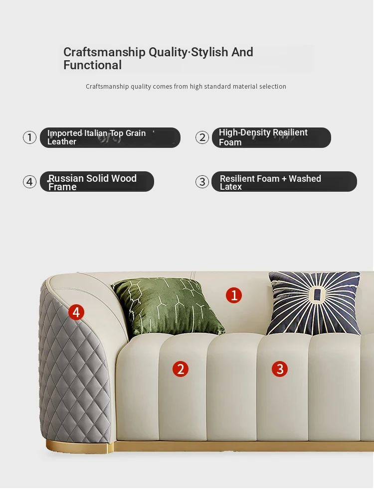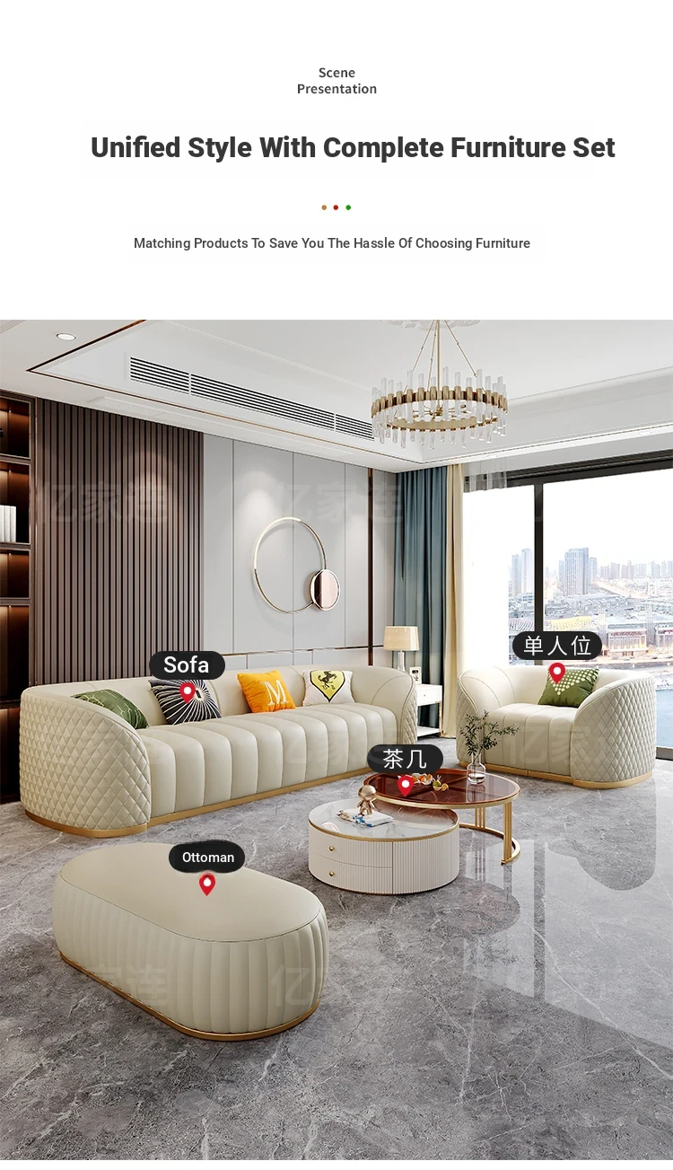 (Four-person + single-person + single-person) Import top layer cowhide + stainless steel electroplated brushed full bottom frame