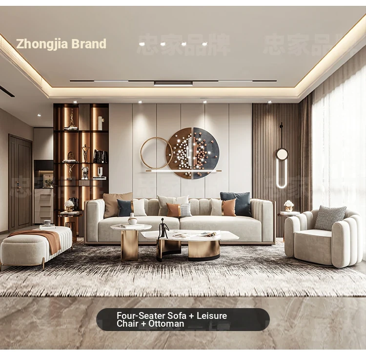 Modern Minimalist 2025 Chenille High-End Upholstered Sofa for Small Living Rooms - Italian Style Luxurious Combination Sofa Set