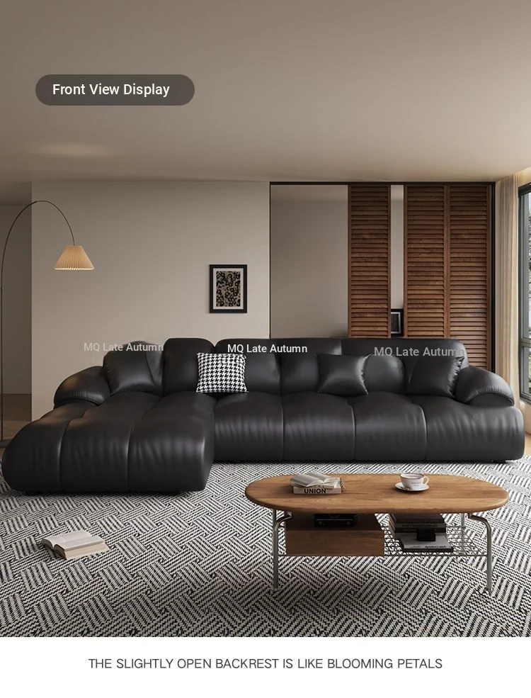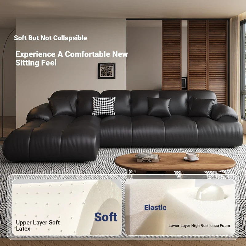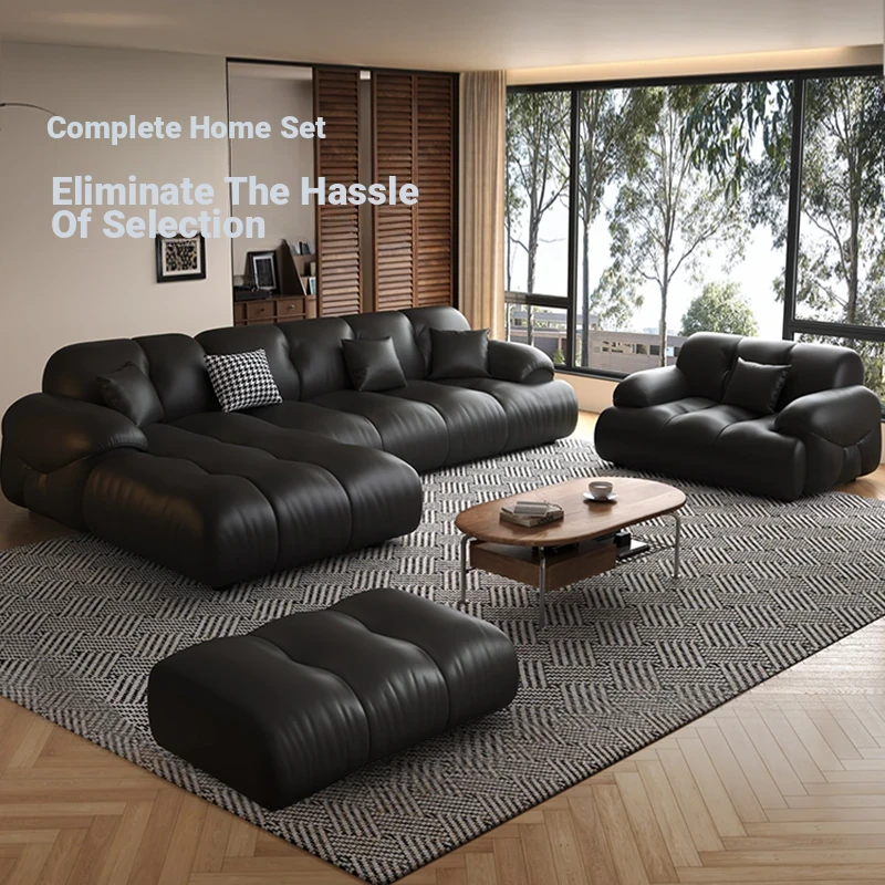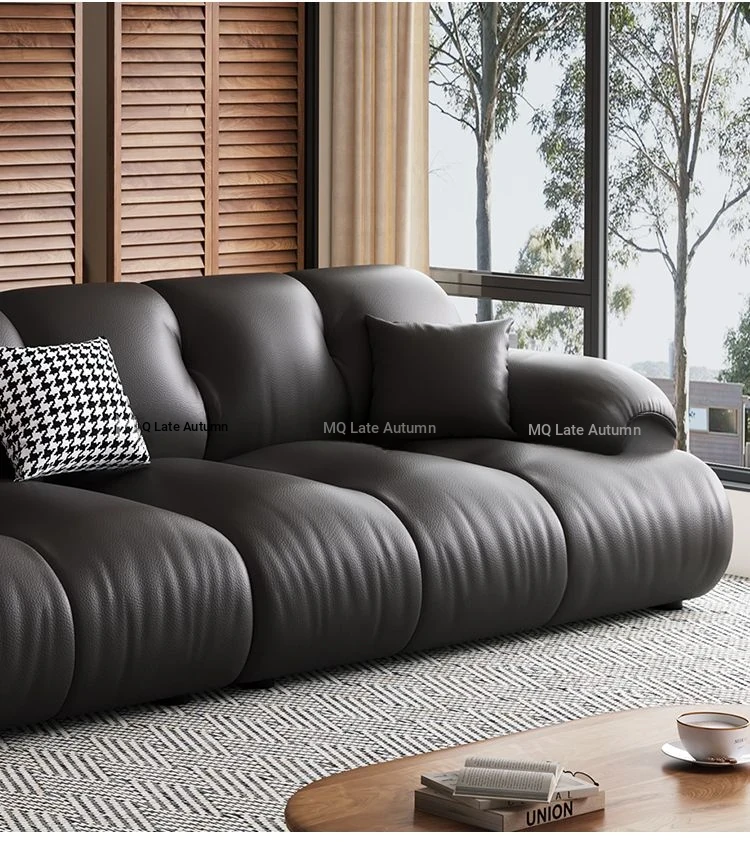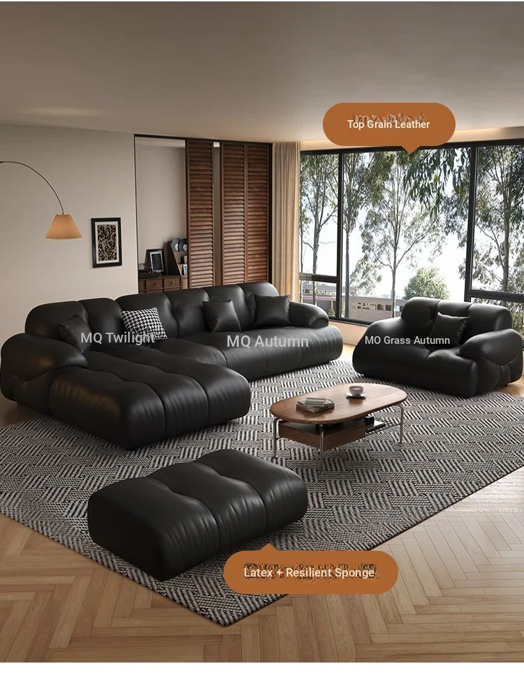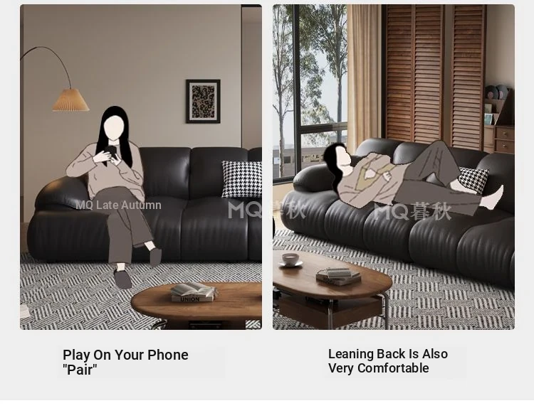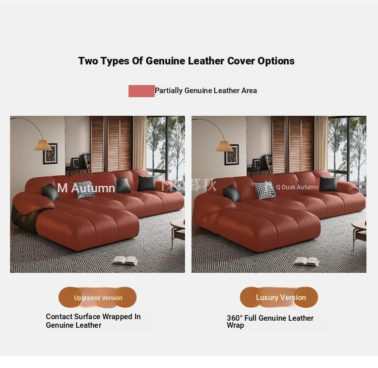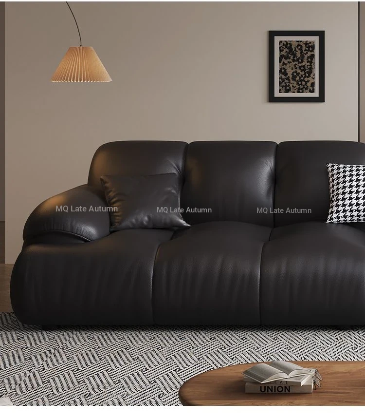 Modern Minimalist Genuine Leather Sofa for Living Room - Retro Small Apartment Chaise Lounge, Premium Top-Grain Cowhide, New 2025 Collection