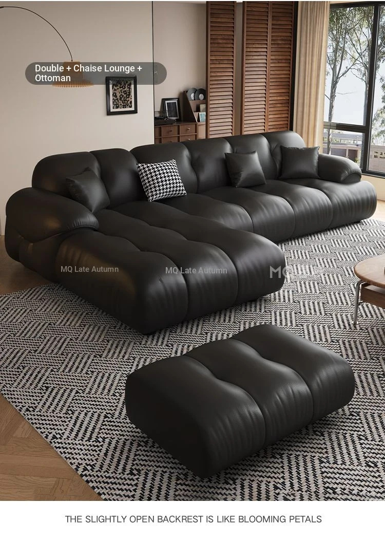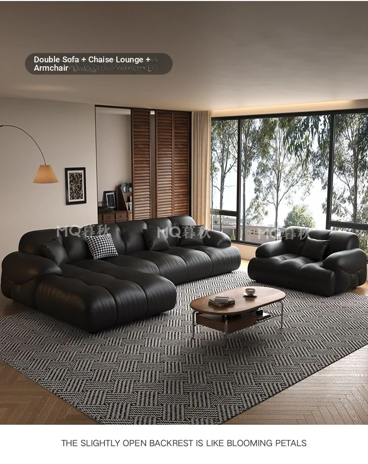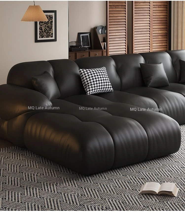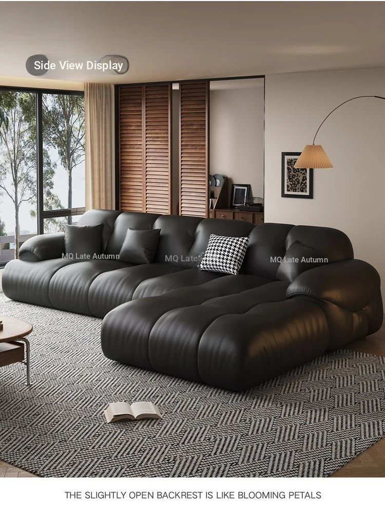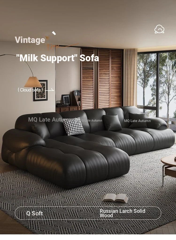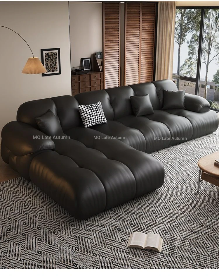 Modern Minimalist Genuine Leather Sofa for Living Room - Retro Small Apartment Chaise Lounge, Premium Top-Grain Cowhide, New 2025 Collection