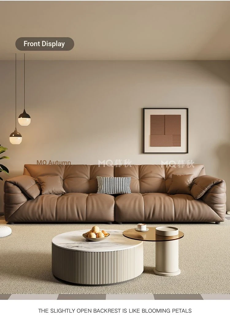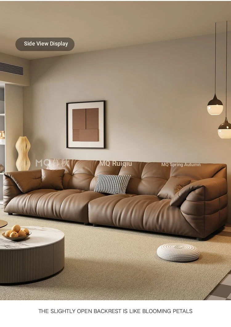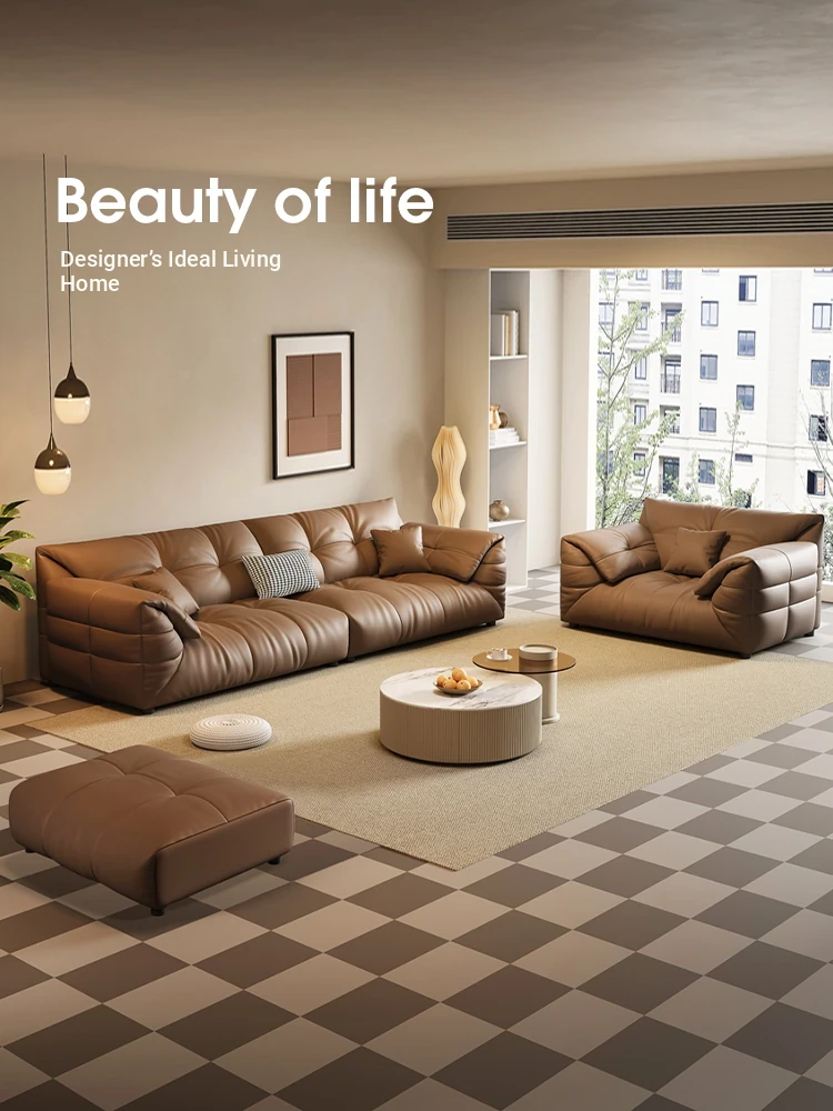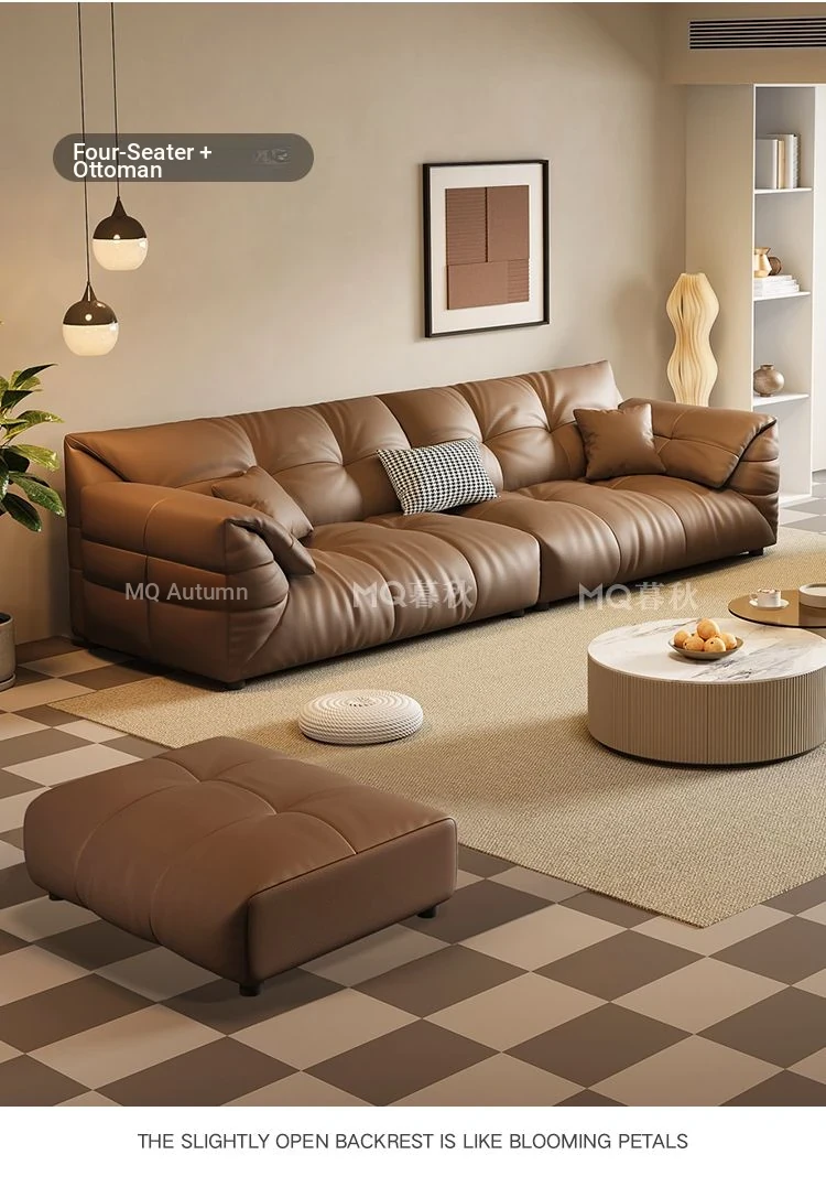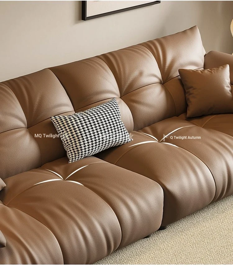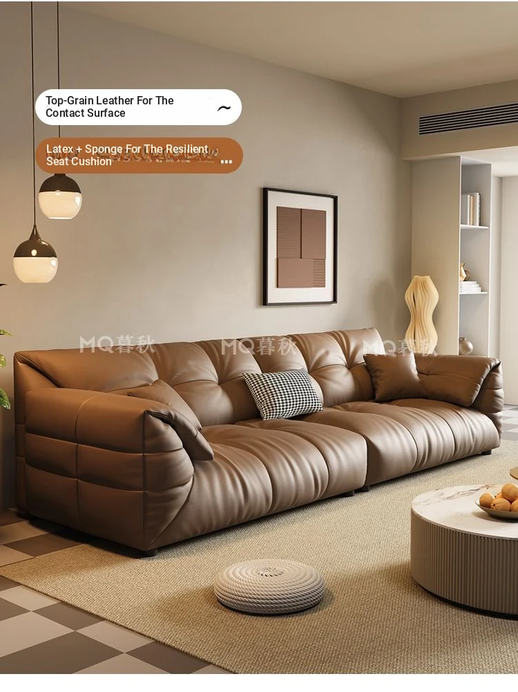 Modern Minimalist Genuine Leather Sofa - Top-Grain Cowhide, Luxurious Yet Simple Design, Perfect for Any Sized Living Space, Featuring Unique Elephant Ear Style in Italian Aesthetic.