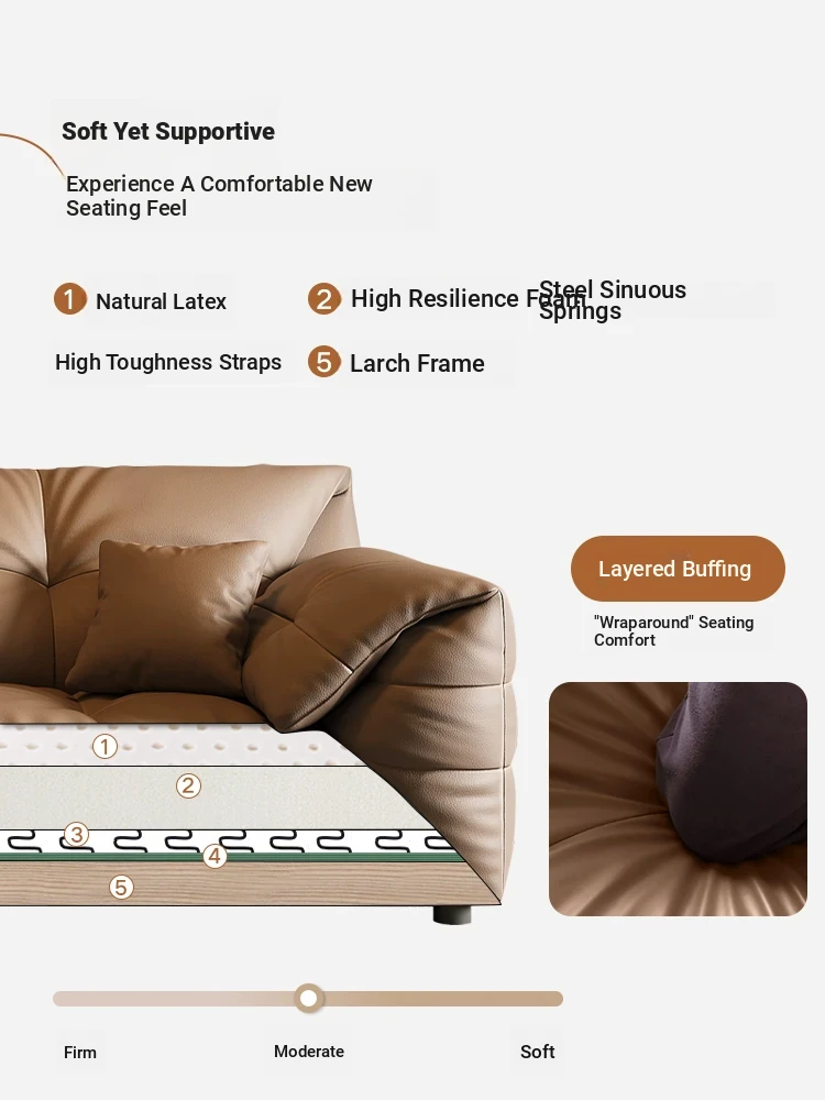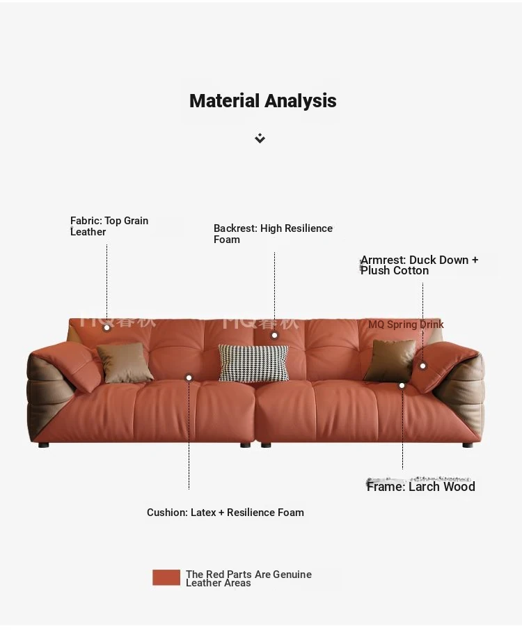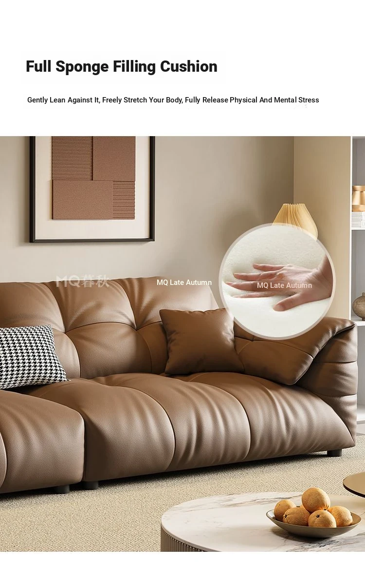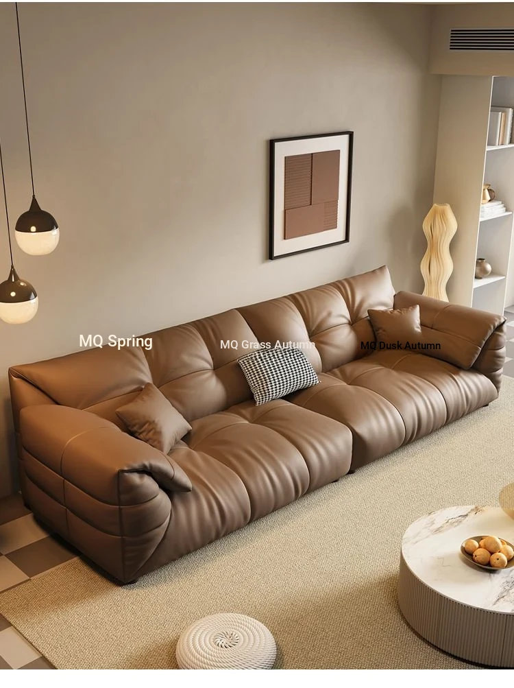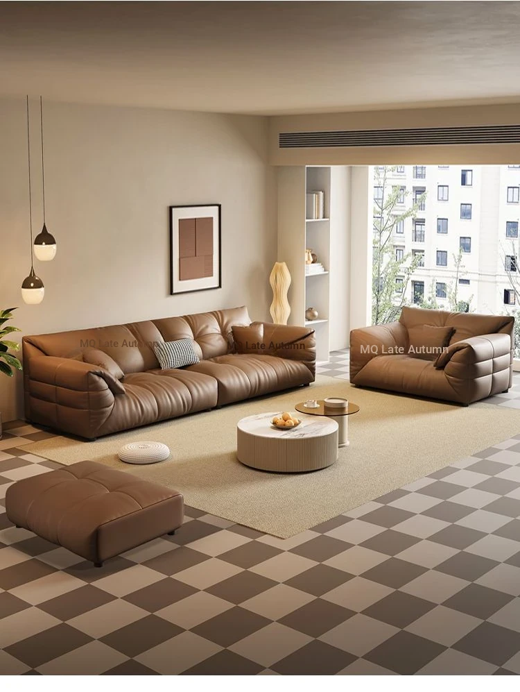 Modern Minimalist Genuine Leather Sofa - Top-Grain Cowhide, Luxurious Yet Simple Design, Perfect for Any Sized Living Space, Featuring Unique Elephant Ear Style in Italian Aesthetic.