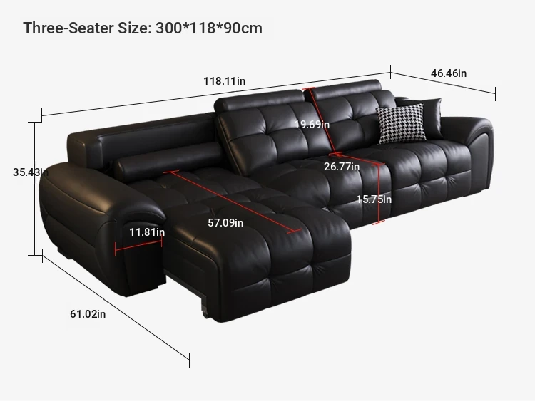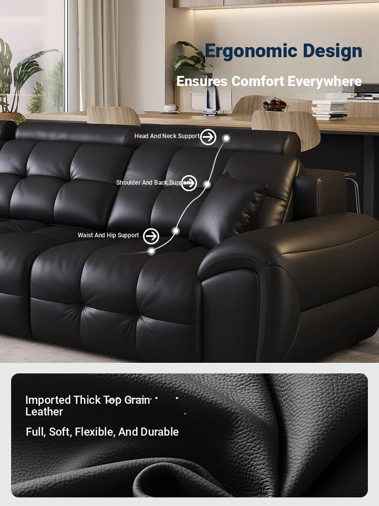 Premium Leather Electric Sofa - Adjustable Multi-Function Chaise Lounge with Remote Control, Reclines Flat and Perfect for Wall Placement - Ideal for Your Living Room Comfort